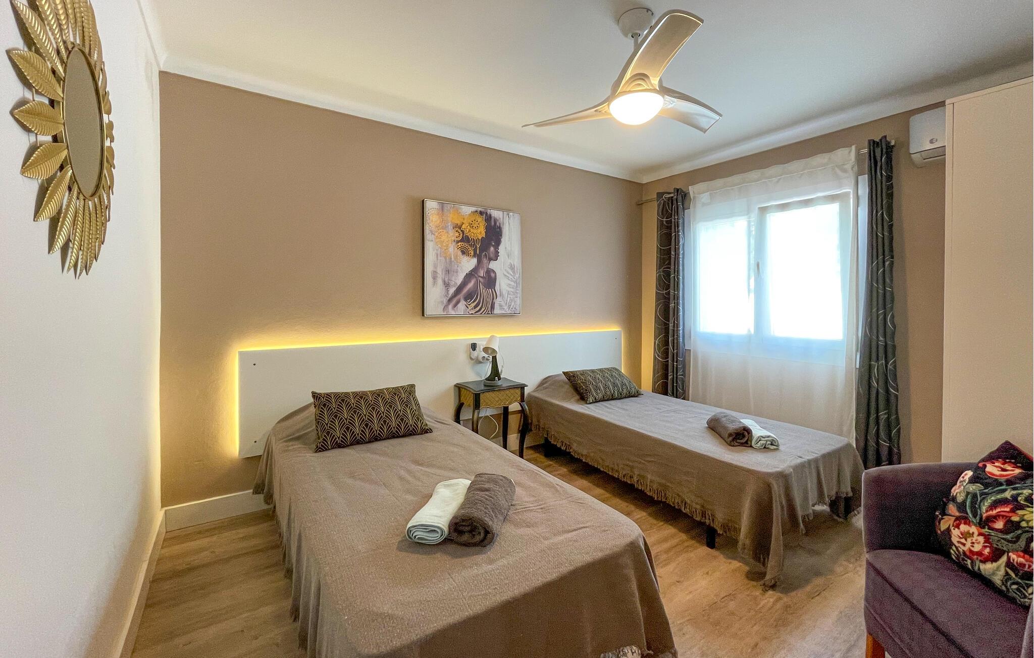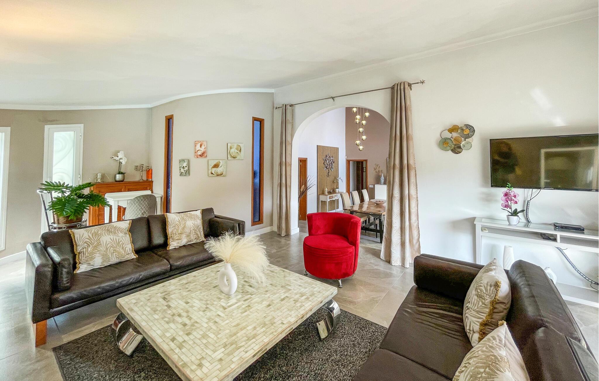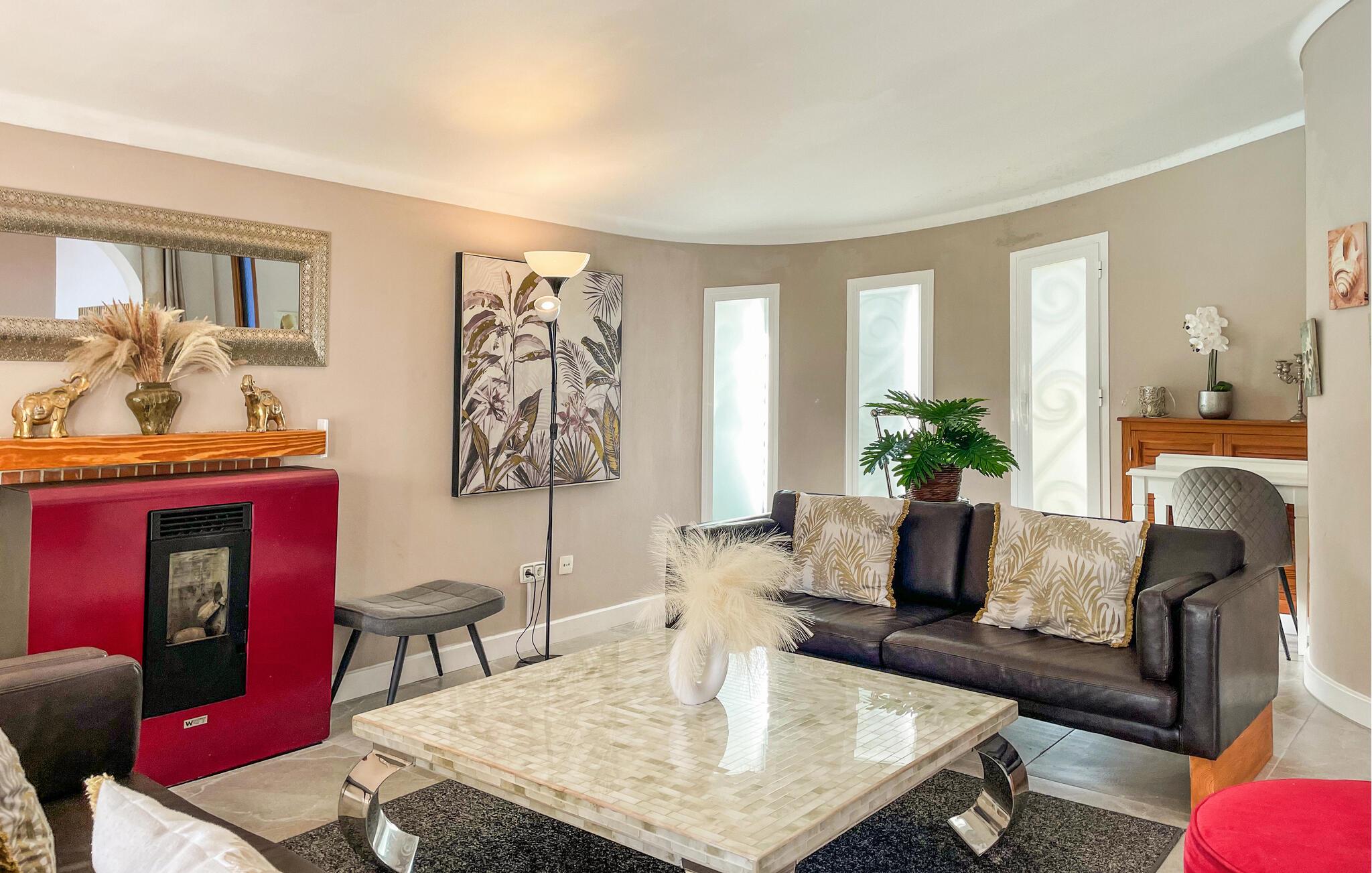 Nyt en solrik ferie i dette romslige feriehuset med basseng nær stranden.