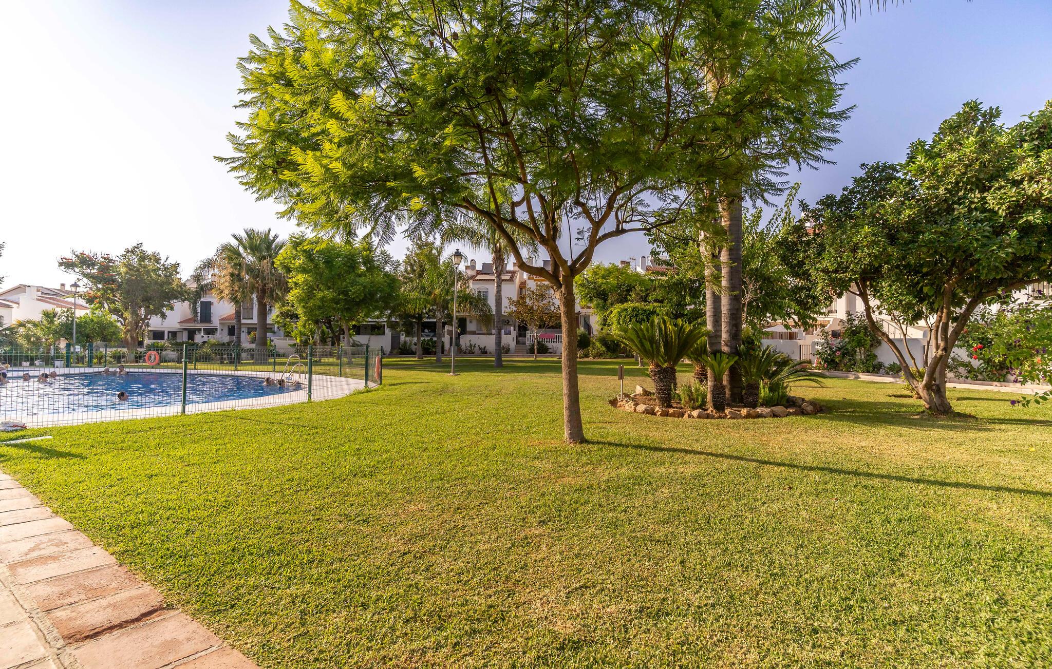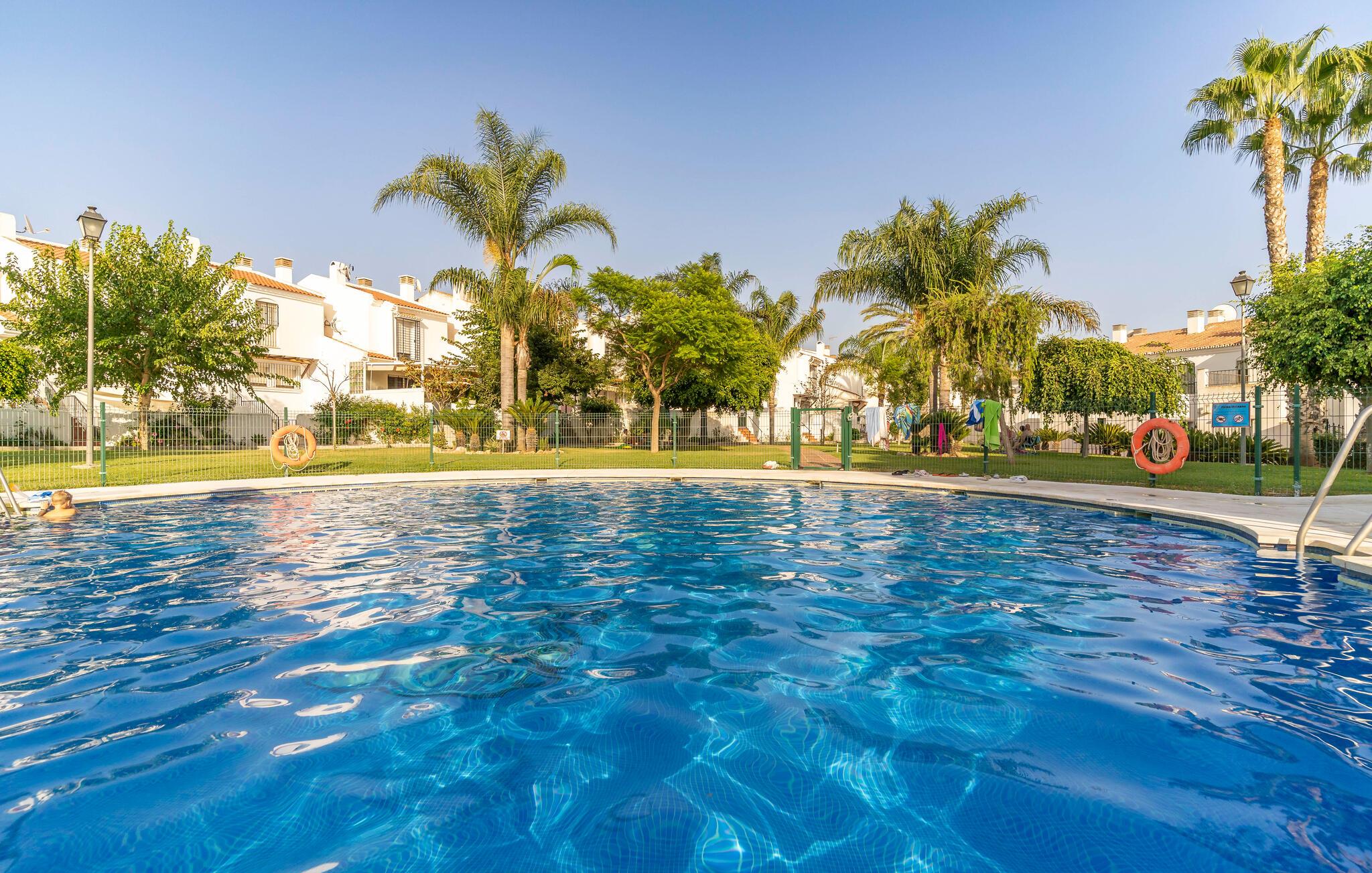 Nyt en avslappende ferie i dette komfortable feriehuset med et stort felles svømmebasseng.