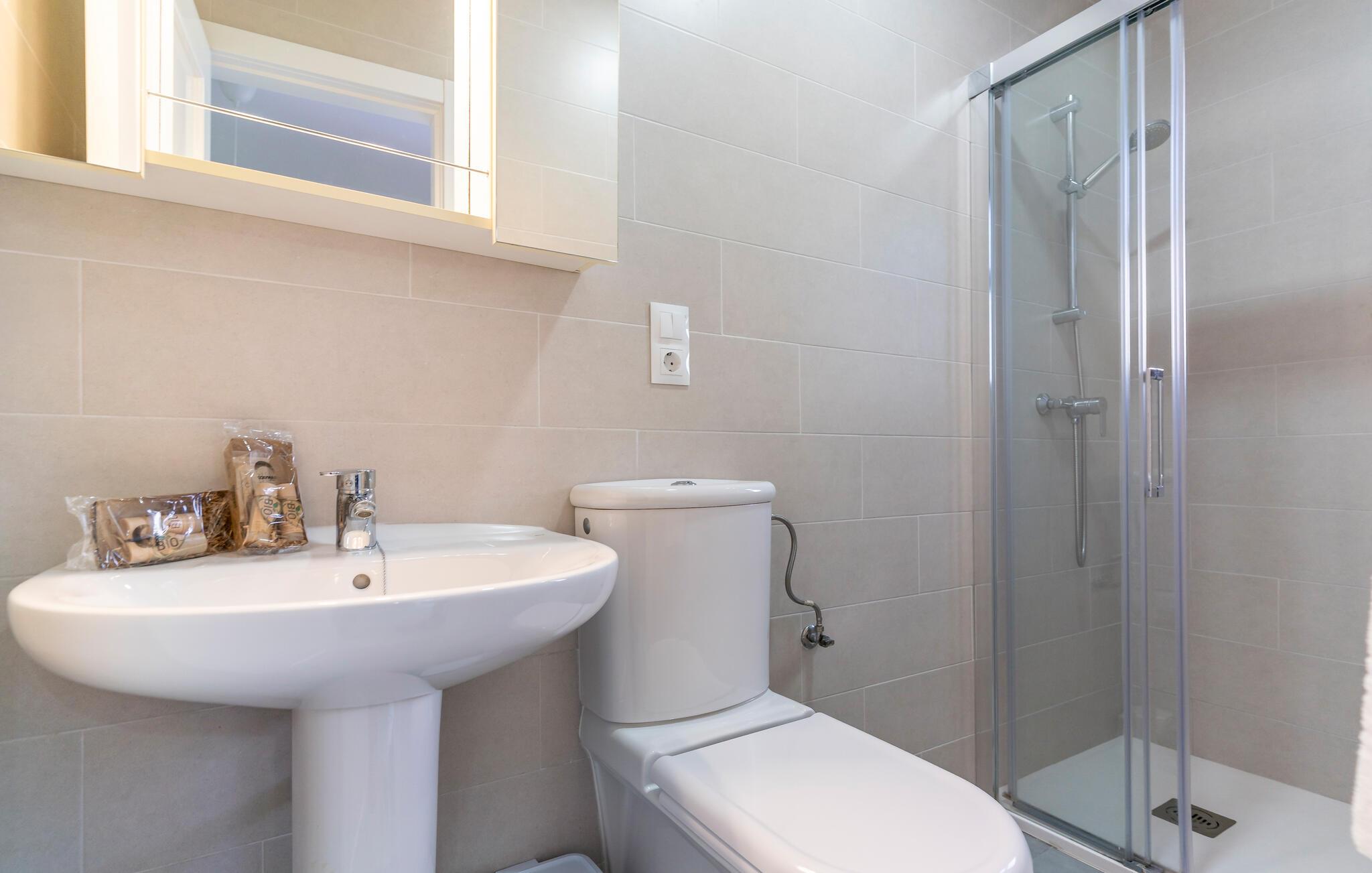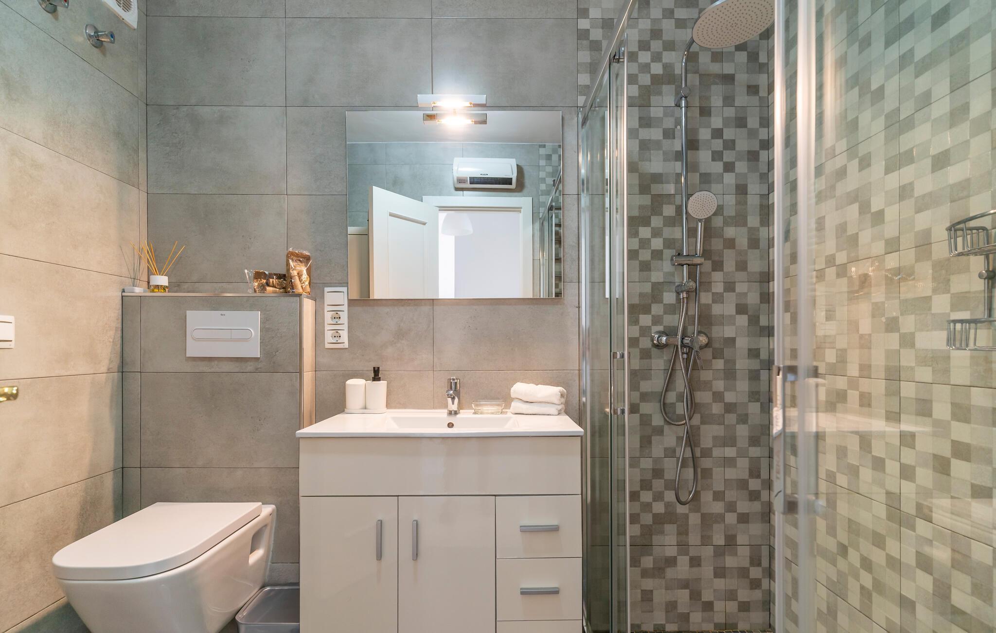- WC med varmt og kaldt vann, Dusj