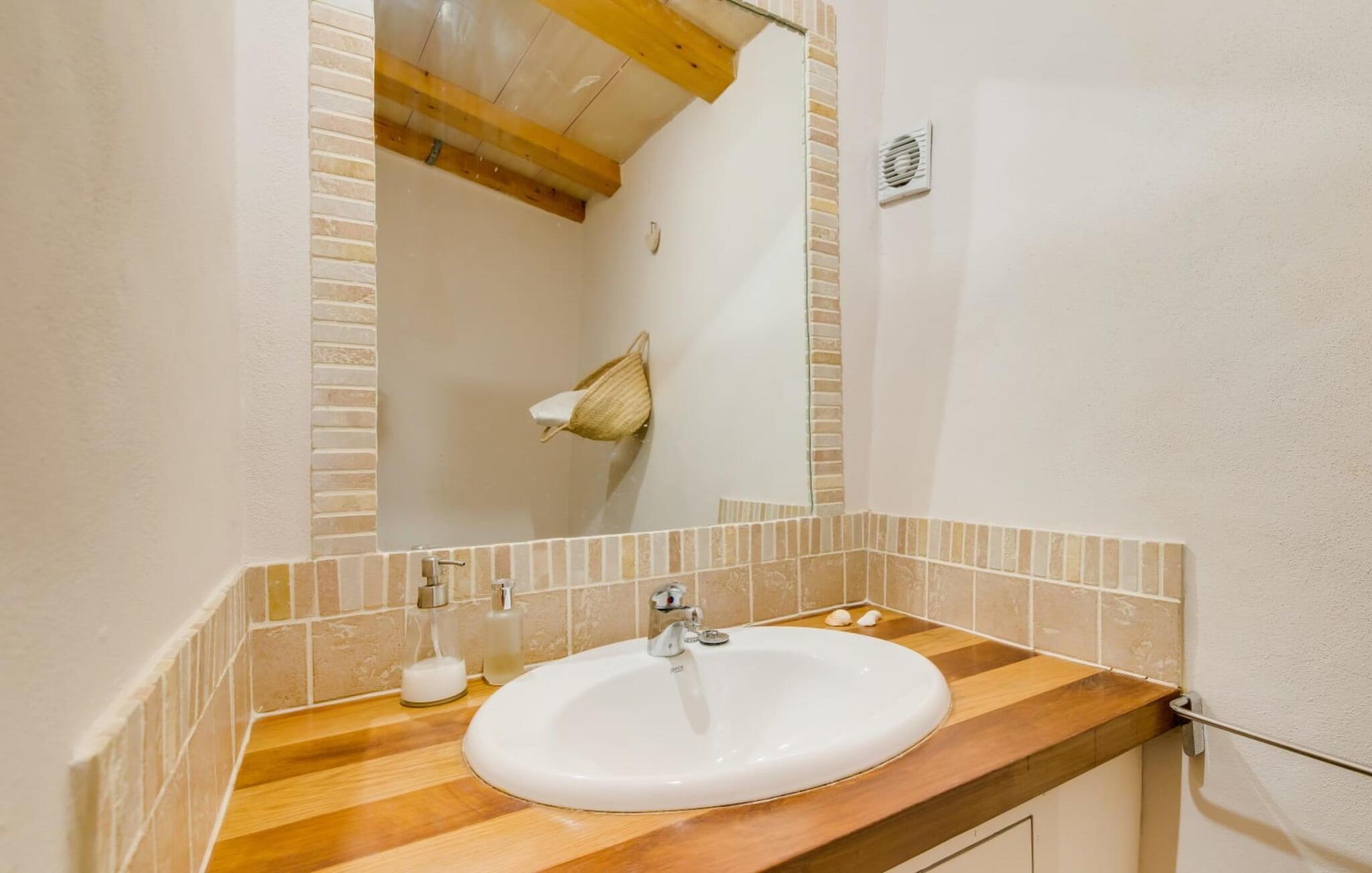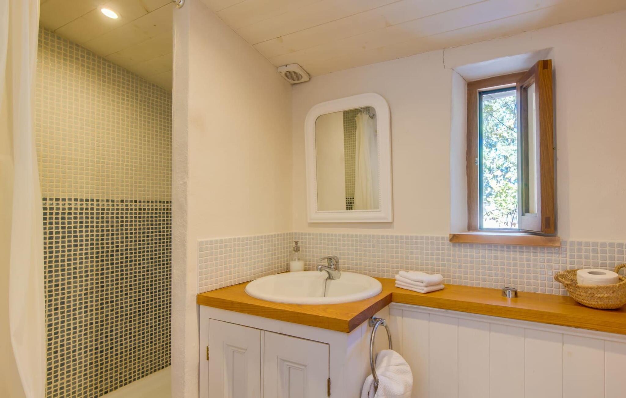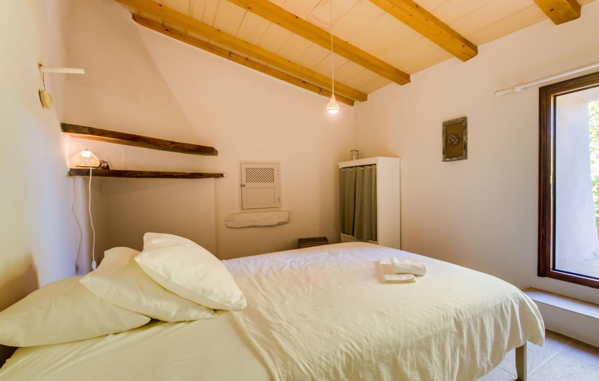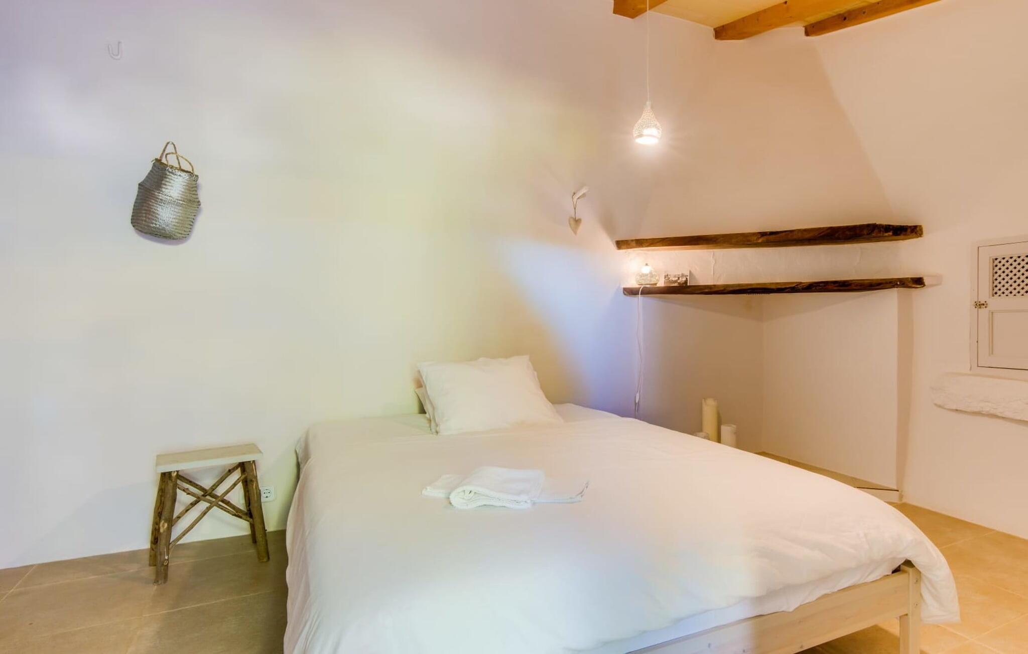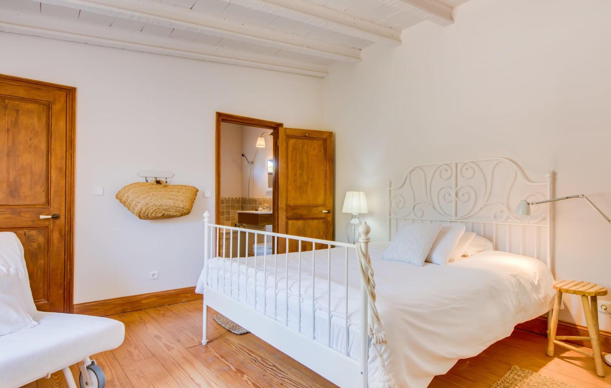 Med en rolig og tilbaketrukket beliggenhet, omgitt av frodige grøntområder og uberørt natur, finner du et fantastisk feriehus som du umiddelbart vil forelske deg i. Hvis du er ute etter en autentisk mallorcinsk atmosfære, har du kommet til rett sted, ettersom eiendommen er en nennsomt renovert bygning fra 1850. Dette moderne feriehuset ble opprinnelig brukt til landbruksformål og har en fortryllende og romslig hage. Her venter bare én ting: ren avslapning. Spaser gjennom hagen og nyt duften av sitroner i luften, smak på en av de saftige olivenene eller fikenene som henger i trærne, og trekk pusten dypt: Det er ferietid! Når middagsvarmen kommer, kan du kjøle deg ned i det private bassenget. Etterpå er det bare å slappe av med en god bok på en av de komfortable solsengene under parasollen. Om kvelden inviterer grillen deg til å tilbringe dagen utendørs. Når du kommer inn i huset via en av terrassene, vil du umiddelbart føle deg hjemme takket være sjarmen og autentisiteten som gjennomsyrer hvert eneste rom. Varme terrakottagulv, gyllenbrunt iroko-treverk, eksponert murverk laget av bruddstein: Dette huset har stil. Under renoveringen ble det lagt vekt på å kun bruke utsøkte møbler og innredninger i huset. Stilen er puristisk, noe som passer perfekt til kombinasjonen av hvite og kremfargede toner og det honningfargede treverket som går igjen i hele huset. Du får umiddelbart lyst til å stryke over bordplaten på det store spisebordet i vakkert treverk for å kjenne på det. I den koselige stuen er det en stor åpen peis for koselige kvelder i kjøligere temperaturer. Det er også en TV med tysk satellittmottak. Kjøkkenet er veldig koselig takket være det svakt skrånende taket. Det har oppvaskmaskin, vannkoker og ulike kaffemaskiner og alt et selvhusholdningshjerte kan begjære. Soverommene er også innredet i duse pastellfarger, og alle har eget bad. Fincaen ligger midt på øya, bare 30 km fra hovedstaden Palma. Så sentralt, men likevel med en drømmeaktig tilbaketrukket beliggenhet, tilbyr den et bredt spekter av fritidsaktiviteter utenfor den vakre eiendommen. Særlig vandringsentusiaster vil komme til sin rett, for det lille ferieparadiset ligger nedenfor det markante fjellet Puig de Randa, som hever seg over det mallorcinske lavlandet og minner litt om Table Mountain i Sør-Afrika. På vei opp har du mulighet til å besøke tre klostre som ligger i forskjellige høyder. Vel oppe på toppen belønnes du med en spektakulær utsikt helt til Tramuntana-fjellene. Strender som Caló de Sant Antoni eller Es Trenc kan lett nås med leiebil på mindre enn 30 km. Den paradisiske Villa Calmita ligger midt i et spektakulært landskap i nærheten av det markante fjellet Puig de Randa. Den lille byen Montuiri, som ligger ca. 6,4 km unna, har alt du trenger, med bakerier, supermarkeder og et fantastisk marked som tilbyr et bredt utvalg av ferske, lokale råvarer. De populære strendene Platja de Palma og Platja de Sa Rapita ligger rundt 19 km unna, men flere andre vakre bukter, som Es Trenc, er også lett tilgjengelige med leiebil.
