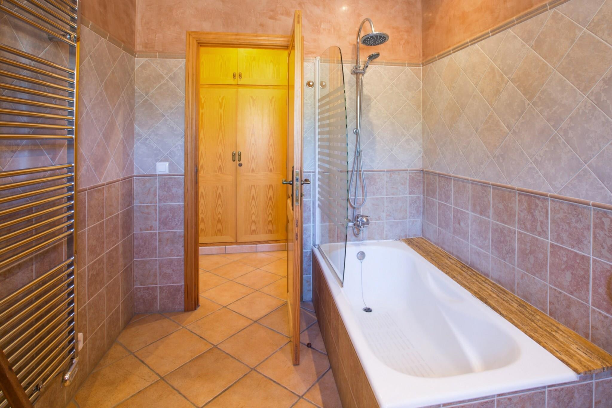 Dieses Landhaus verfügt über sehr geräumige und gepflegte Außenbereiche. Es verfügt über einen 9 x 4,5 m großen Chlorpool mit einer Tiefe von 1,30 m bis 1,85 m. Rund um den Pool gibt es eine 70 m² große gepflasterte Fläche, auf der Sie sich auf einer der 10 Sonnenliegen ausruhen können und auf der auch 1 Sonnenschirm steht. In diesem gepflasterten Bereich finden Sie auch 1 Außendusche, wo Sie sich abspülen können, wenn Sie vom Strand kommen oder nach einem Spaziergang in der Natur. Gleichzeitig gibt es außerhalb des Chalets Obstbäume und eine 90 m2 große, eingezäunte Rasenfläche, die sich perfekt für die Kleinen eignet. Dieses Haus verfügt über insgesamt 3 möblierte Terrassen (2 davon sind von 2 der Räume im 1. Stock aus zugänglich): 2 haben eine Größe von 12 m2 und die dritte hat eine Größe von 30 m2. Das Haus ist von einer 24 m² großen Veranda umgeben, auf der Sie wunderschöne Abende im Freien mit Ihrer Familie und Freunden genießen können. In der Nähe der Veranda gibt es auch 1 festen Grill, wo Sie im Freien kochen können. Darüber hinaus verfügt diese Unterkunft auch über ein Fitnessstudio mit 2 Geräten im 1. Stock und einen Bereich, in dem Sie auf der Eingangsterrasse Basketball und Tischtennis spielen können. Die Privatsphäre dieses Landhauses ist teilweise eingeschränkt und es verfügt über Platz im Freien zum Parken von 5 Fahrzeugen sowie über ein Ladegerät für Elektroautos. Das Wohnzimmer mit Klimaanlage und Kamin dieses wunderschönen Hauses ist der ideale Ort zum Entspannen, während Sie Satellitenfernsehen schauen, einen DVD-Film schauen oder ein gutes Buch lesen. Das möblierte Esszimmer ist zum Wohnzimmer hin offen und dort können Sie lange Gespräche mit Ihren Liebsten führen. Die separate Küche der Unterkunft verfügt über alles, was Sie brauchen, um Ihrer Fantasie bei der Zubereitung Ihrer besten Gerichte freien Lauf zu lassen, einschließlich eines Gasherds. Das Haus verfügt über 1 separaten Waschraum, in dem sich 1 Waschmaschine, 1 Bügeleisen und 1 Bügelbrett befinden. Insgesamt gibt es in der Unterkunft 4 große Schlafzimmer, 1 mit 1 Doppelbett und die restlichen 3 mit 2 Einzelbetten. Alle Zimmer verfügen über Klimaanlage, Kleiderschränke und 1 Kinderbett für die Kleinen im Haus. Insgesamt verfügt dieses Haus über 3 komplette Badezimmer, 2 davon mit Badewanne und 1 mit Dusche, eine Toilette, 1 Ventilator, 2 Heizkörper und Klimaanlage in allen Schlafzimmern und im Wohn-Esszimmer. Es gibt Sonnenkollektoren, die das Haus mit Energie versorgen. Sowohl das Anwesen als auch seine Umgebung vermitteln Ruhe und eignen sich ideal zum Entspannen und Genießen der umgebenden Natur. Das Chalet liegt auf einem Grundstück von 11.000 m2 und in einer Umgebung, die zu langen Spaziergängen durch die trockenen Felder, mit Mandelbäumen und Pinienwäldern einlädt. Das Haus liegt nur 450 m von der Stadt S'Horta entfernt, wo Sie alles finden, was Sie während Ihres Aufenthalts benötigen. Dies ist eine Stadt mit viel Geschäftsleben und interessanten Sehenswürdigkeiten. Nur 4,5 km entfernt finden Sie den Strand von Cala d'Or, eine der authentischsten Gegenden Mallorcas. Mit dem Auto und in nur 15 Min. Sie können auch andere lohnenswerte Strände wie Cala Mondragó, Cala Ferrera, Portopetro oder Cala Sa Nau erreichen. Darüber hinaus liegt dieses Anwesen 60 km von der Stadt Palma entfernt, wo Sie touristische und kulturelle Besichtigungen unternehmen, einkaufen oder das Nachtleben der Stadt genießen können. Es gibt eine Garage zum Abstellen von Fahrrädern sowie einigen Werkzeugen, die Ihnen zur Verfügung stehen. Da sich die Eigentümer der Nachhaltigkeit verschrieben haben, nutzt das Haus Sonnenkollektoren und es gibt auch eine Ladestation für Elektrofahrzeuge. Hinweis: In dieser Unterkunft können keine Gäste unter 25 Jahren akzeptiert werden, es sei denn, es handelt sich um einen Familienaufenthalt. Wir benötigen Kopien der Ausweise jeder Person, um die Reservierung annehmen zu können. Bezüglich möglicher zusätzlicher Kosten wenden Sie sich bitte an den Werbetreibenden. Wir akzeptieren keine Haustiere. Es gibt Außenparkplätze für 5 Autos. Entfernungen Strand: 4,7 km - Cala d'Or Flughafen: 53,4 km - Palma Golfplatz: 4,2 km - Golf Vall d'Or Stadt: 0,450 km - S'Horta Bahnhof: 25,6 km - Manacor Bushaltestelle: 0,750 km – Carrer Jaume Prohens Fähre: 63,1 km – Port de Palma Krankenhaus: 27,5 km - Manacor Touristenlizenz: ETV/774Am Eingang müssen Sie die Ecotasa (Touristensteuer der Balearen) in bar bezahlen. Der Betrag variiert zwischen 0,55 EURO/pro Nacht und Person in der Nebensaison und 2,2 EURO/pro Nacht und Person in der Hochsaison. Ab dem neunten Tag wird sie um die Hälfte reduziert. Personen unter 16 Jahren ausgeschlossen. Am Eingang müssen Sie die Kaution direkt beim Eigentümer bezahlen. Zusätzliches Kinderbett (Januar - Dezember): 5 EUR/Nacht (optional)