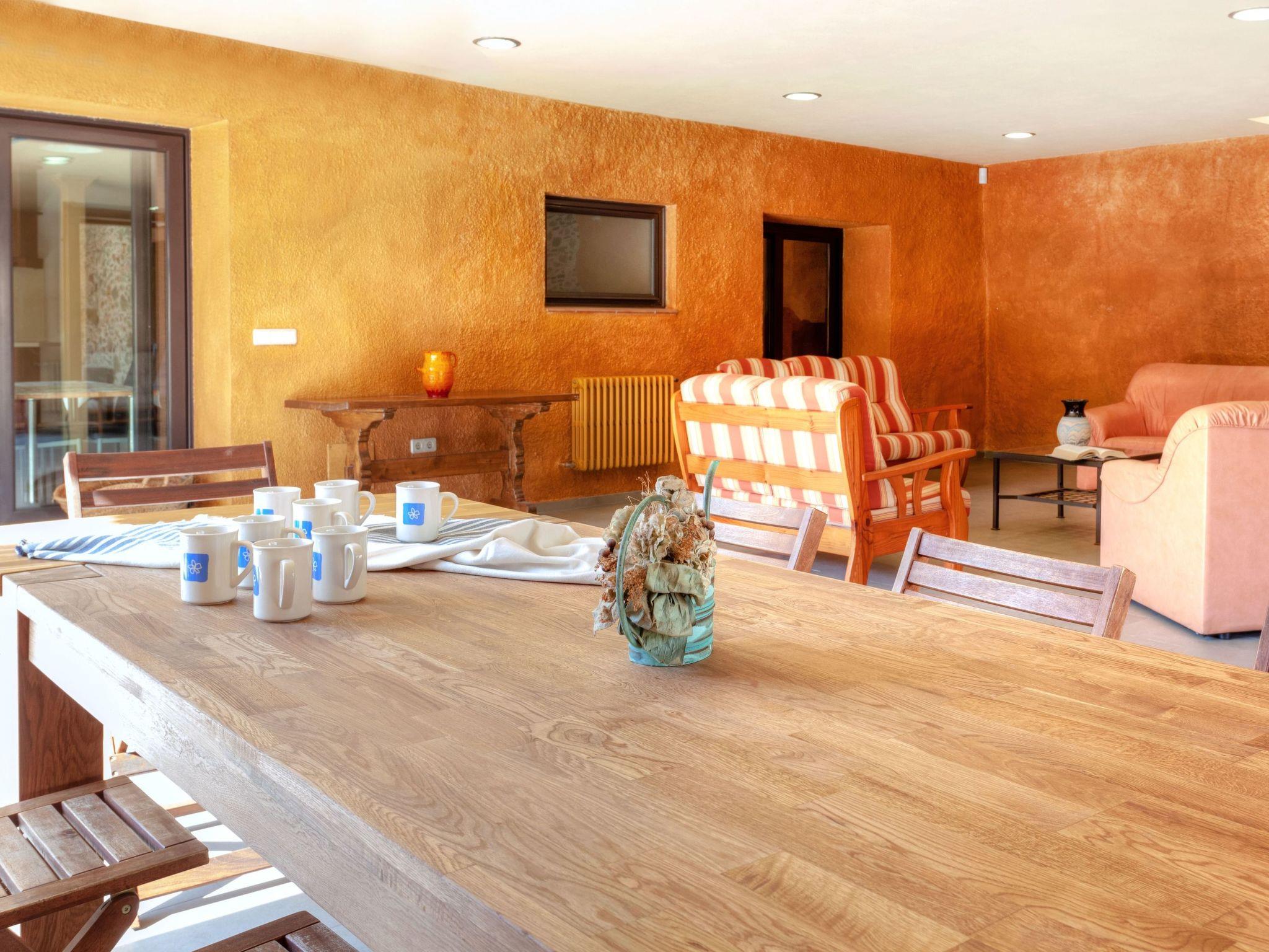 "La Tilia II", 11-room house. Fully renovated in 2019, comfortable furnishings: living/dining room with digital TV. Playroom. 1 room with 1 french bed (150 cm, length 190 cm). 1 room with 2 beds (90 cm, length 190 cm), fan. 1 room with 1 bed (135 cm, length 190 cm), fan. 1 room with 1 bed (90 cm, length 190 cm), fan. Open kitchen (5 hot plates, oven, dishwasher, toaster, kettle, microwave) with dining table. Shower/WC. No heating option. Upper floor: 1 room with 1 french bed (135 cm, length 190 cm), fan. 1 room with 2 beds (90 cm, length 190 cm), fan. 1 room with 1 bed (90 cm, length 190 cm), fan. 1 room with 1 french bed (150 cm, length 190 cm), bath/WC and fan. Shower/bidet/WC. Large terrace. Terrace furniture, deck chairs (5), covered balcony. View of the countryside. Facilities: washing machine. Internet (WiFi, free). Parking (2 cars) at the house. Please note: suitable for families. Non-smoking house. TV only ES. HUTG-027916 // Reg. Nr.: ESFCTU00001701500012892000000000000000000HUTG-0279164