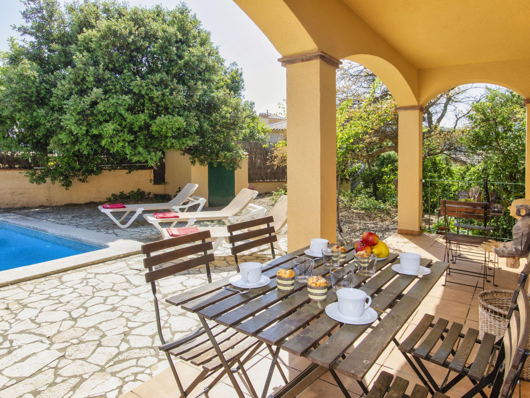 Mas Pere 2 km from Calonge: House "Mas Pere", built in 2004. 6 km from the sea, in a cul-de-sac. Private: property (fenced), swimming pool (8 x 4 m, depth 150 - 220 cm, seasonal availability: 01.May. - 30.Oct.). Terrace, parking at the house. Supermarket 2 km, restaurant 600 m, bus stop "Mas Pere" 1 km, sandy beach "Sant Antoni de Calonge" 6 km. Sports harbour 8 km, golf course (18 hole) 7 km, riding stable 12 km. Please note: car recommended.