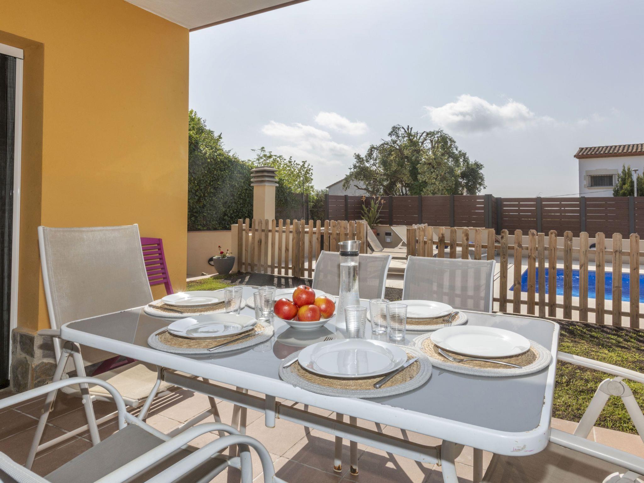 El Mas Pere 5 km from Sant Antoni de Calonge: House "Together". In a quiet, sunny position residential area (villas), 6 km from the sea, 6 km from the beach. Private: garden (fenced), swimming pool angular, fenced (6 x 3 m, depth 100 - 170 cm, seasonal availability: 01.Jul. - 31.Aug.) with internal staircase. Public parking on the road. Supermarket 2 km, restaurant 750 m, café 2 km, bus stop "Calonge - Mas Pere" 900 m, railway station "Flaça" 29 km. Sports harbour 8 km, golf course (18 hole) 13 km, tennis 3 km, minigolf 10 km. Nearby attractions: Camí de Ronda - Calas Preciosas 5 km, Water Park - Aquadiver 8 km, Avenida de Tiendas - Platja d'Aro 9 km, Via Ferrata Cala del Molí 15 km, Pals - Pueblo Medieval 22 km, Peratallada - Pueblo Medieval 23 km. Please note: car recommended. The owner does not accept any youth groups. Neighbourhood highly sensitive to noise. Quietness and good behaviour expected.
