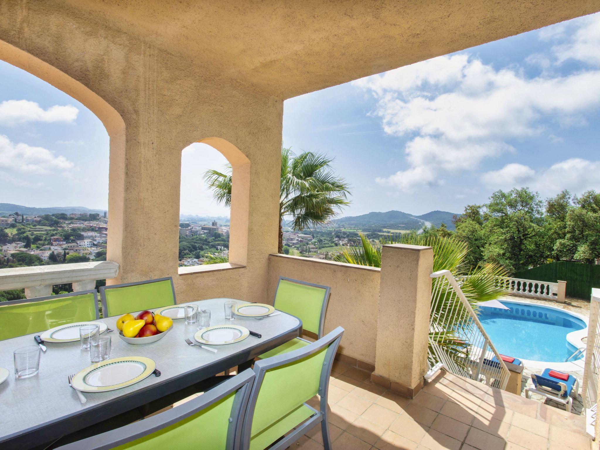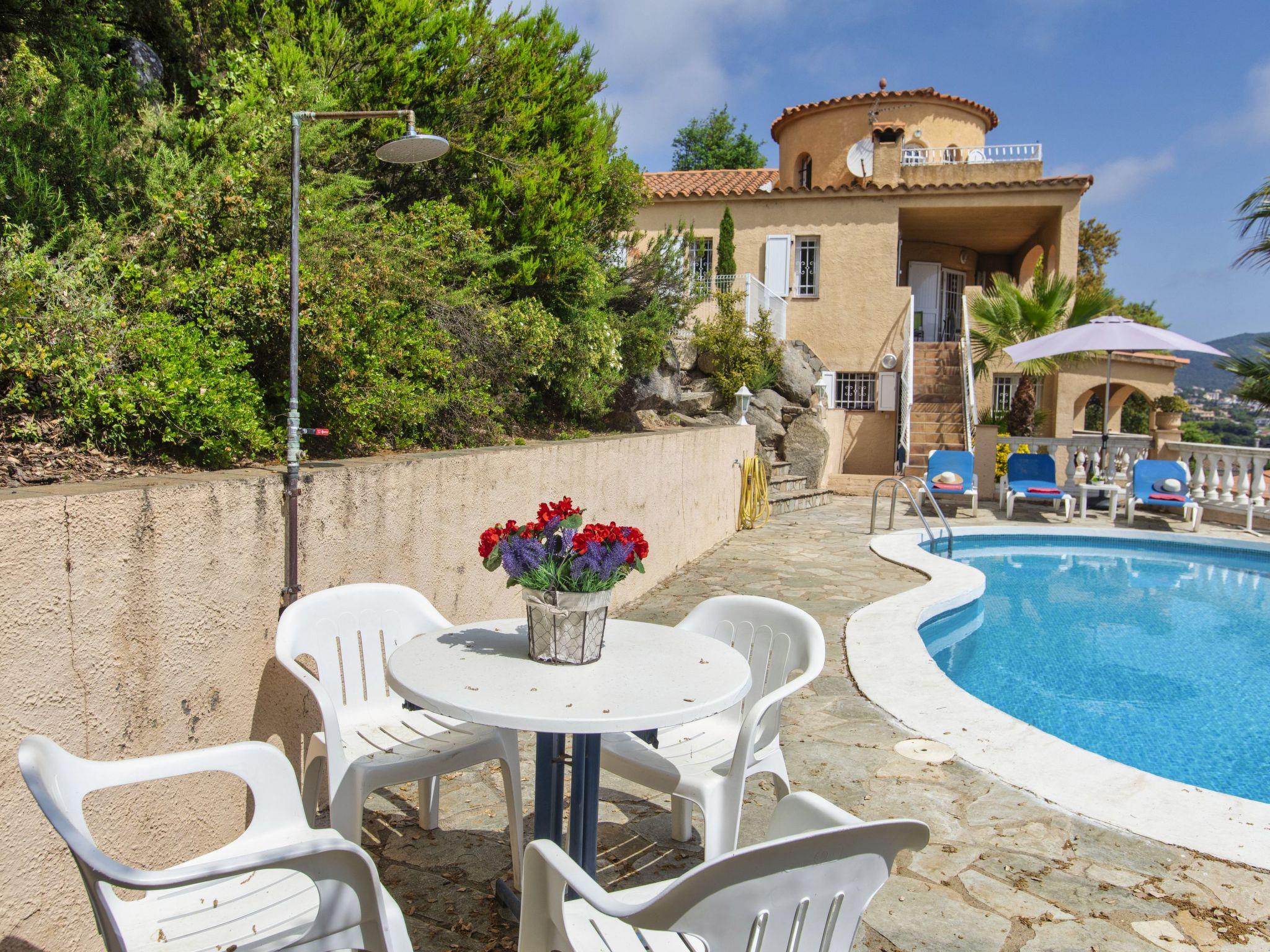 Mas Ambros, 1 km from Calonge: House "Bella Vista". In a quiet, sunny position on top of a hill, 4 km from the sea, in a cul-de-sac. Private: natural state property, swimming pool kidney shaped (7 x 3 m, depth 80 - 190 cm, seasonal availability: 01.May. - 30.Oct.). Stepped path to the house. Single garage, public parking on the road. Supermarket 1 km, restaurant 300 m, bus stop 1 km, sandy beach "Sant Antoni de Calonge" 4 km. Sports harbour 7 km, golf course (18 hole) 6 km, riding stable 12 km. Nearby attractions: Parque Acuatico "Aguadiver" 4 km. Please note: car recommended. Groups of teenagers on request only. Kidney shaped swimming pool. Grounds with rockery and plants.