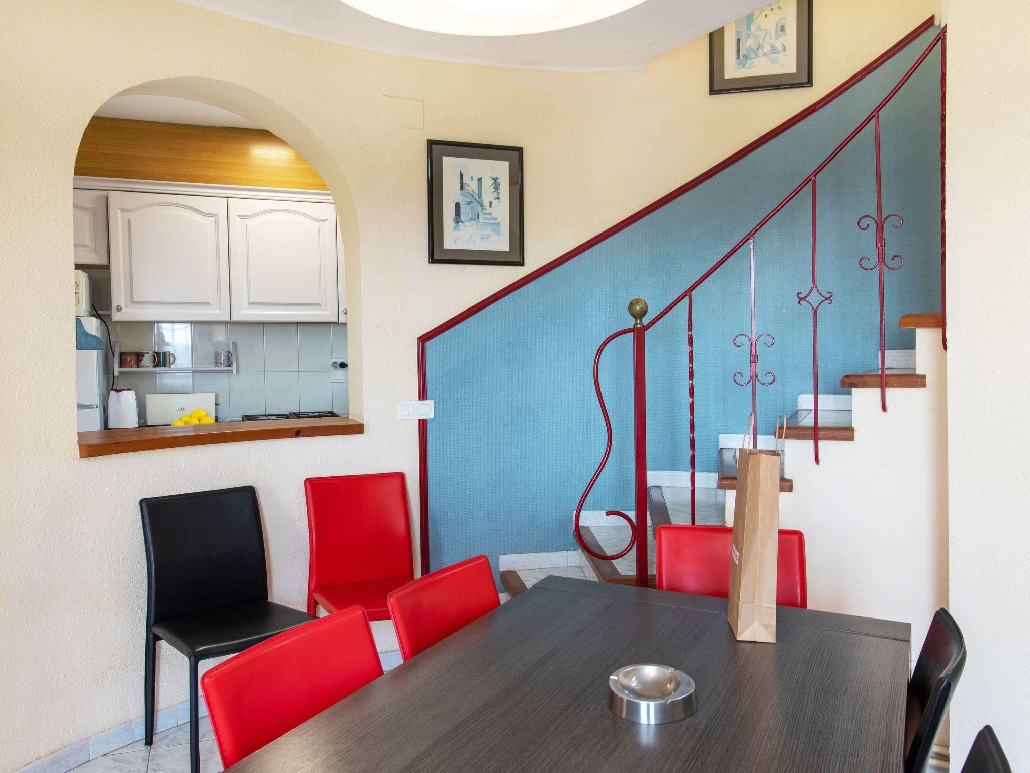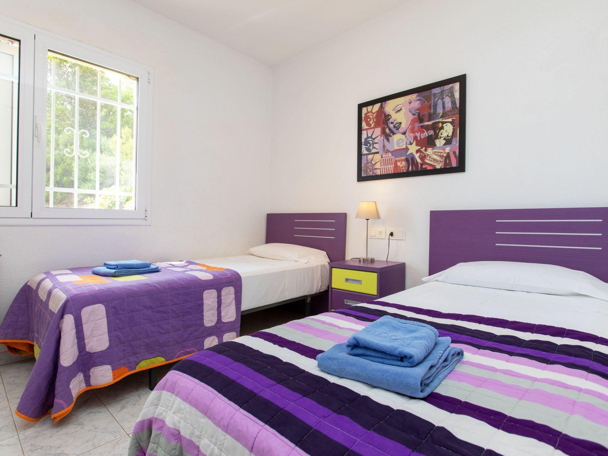 "Bella Vista", 6-room house 95 m2 on 3 levels. Practical furnishings: living/dining room with open-hearth fireplace, digital TV and air conditioning. Exit to the terrace. 1 room with 2 beds (90 cm, length 190 cm). Open kitchen (3 hot plates, oven, dishwasher, toaster, kettle, microwave, electric coffee machine). Bath/bidet/WC. Heating. On the lower ground floor: (exterior staircase) living/dining room. Exit to the terrace. 2 rooms, each room with 2 beds (90 cm, length 190 cm). Kitchenette (2 hot plates). Shower/WC. Upper floor: 1 room with 1 french bed (135 cm, length 190 cm), shower/WC. Exit to the terrace. Terrace. Terrace furniture, barbecue, deck chairs (4). Marvellous view of the sea, the mountains and the resort. Facilities: washing machine, iron, children's high chair, baby cot for up to 2 year olds. Internet (WiFi, free). Please note: non-smoking house. Maximum 1 pet/ dog allowed. TV only ES. HUTG-008566 // Reg. Nr.: ESFCTU00001701500003032200000000000000000HUTG-0085664