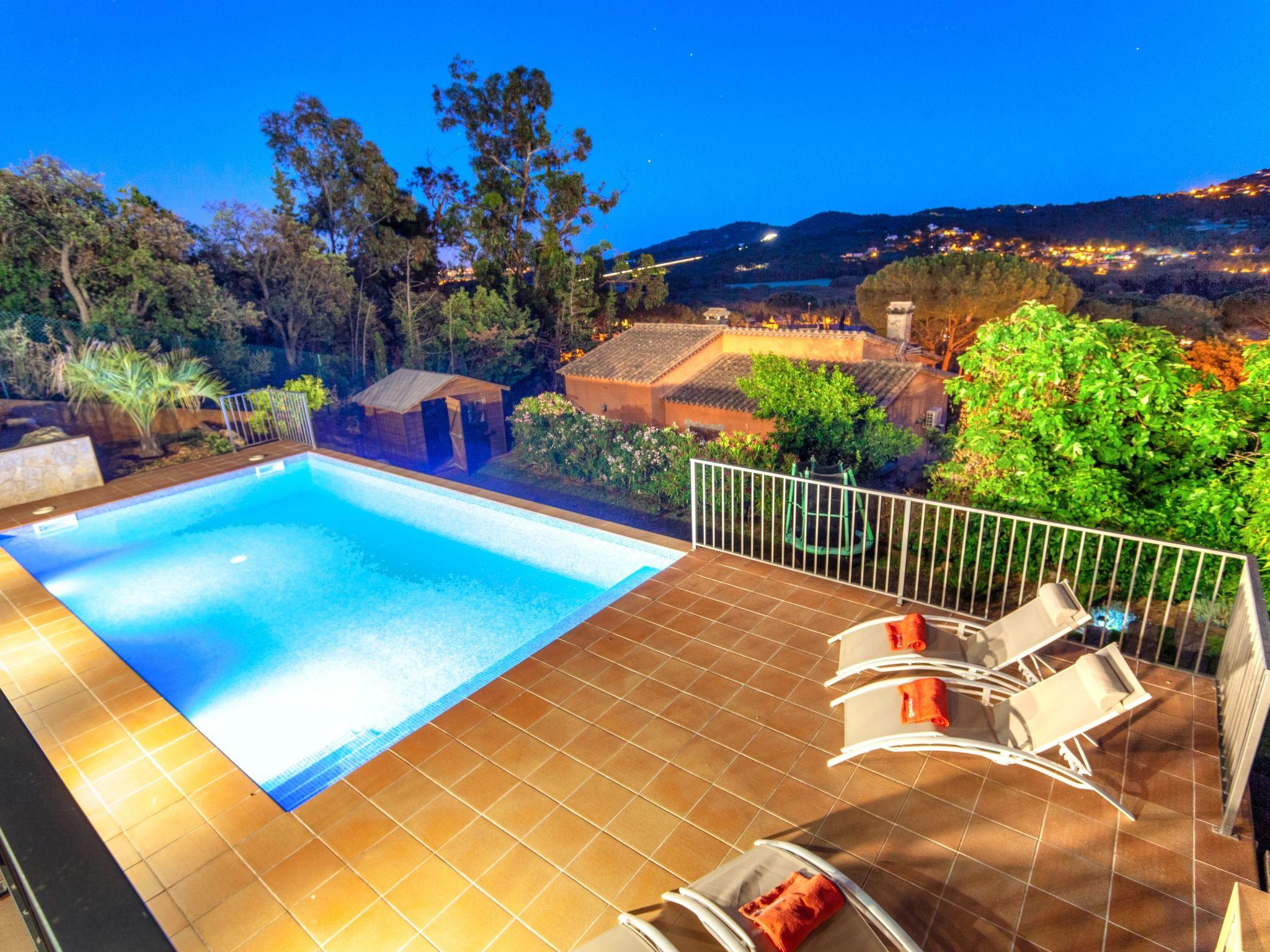 Urb. Mas Ambros 2 km from Calonge: Cosy house "Alba", 2 storeys. In a quiet, sunny position, 5 km from the sea, 5 km from the beach, located by a road. Private: property (fenced) with lawn, beautiful garden to relax, swimming pool angular (10 x 5 m, depth 120 - 170 cm, seasonal availability: 01.May. - 30.Oct.) with internal staircase. Outdoor shower. Supermarket 2 km, restaurant 1 km, bus stop "Av. De La Unió,75 (Calonge)" 2 km, railway station "Girona" 39 km, sandy beach "Sant Antoni de Calonge" 5 km. Sports harbour 7 km, golf course (18 hole) 7 km, riding stable 12 km. Nearby attractions: Camí de Ronda - Calas Preciosas 5 km, Palamós - Centro, puerto y playa 7 km, Platja d'Aro - Avenida con tiendas 8 km, Water Park Aquadiver 7 km, Via ferrata Cala del Molí 14 km, Peratallada - Pueblo medieval 22 km. Please note: car recommended. The owner does not accept any youth groups. Airfield 37 km from the property. Neighbourhood highly sensitive to noise. Quietness and good behaviour expected.