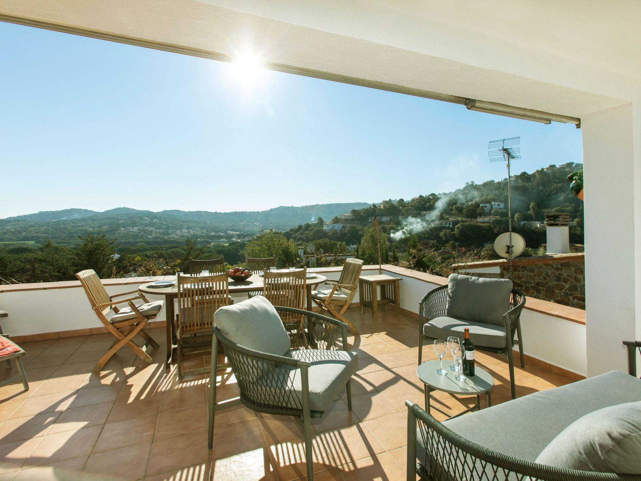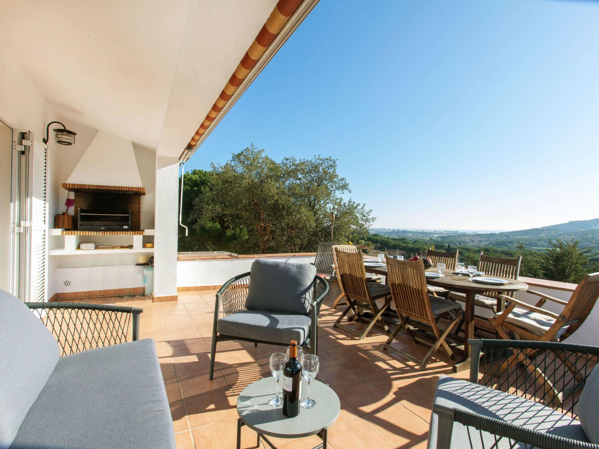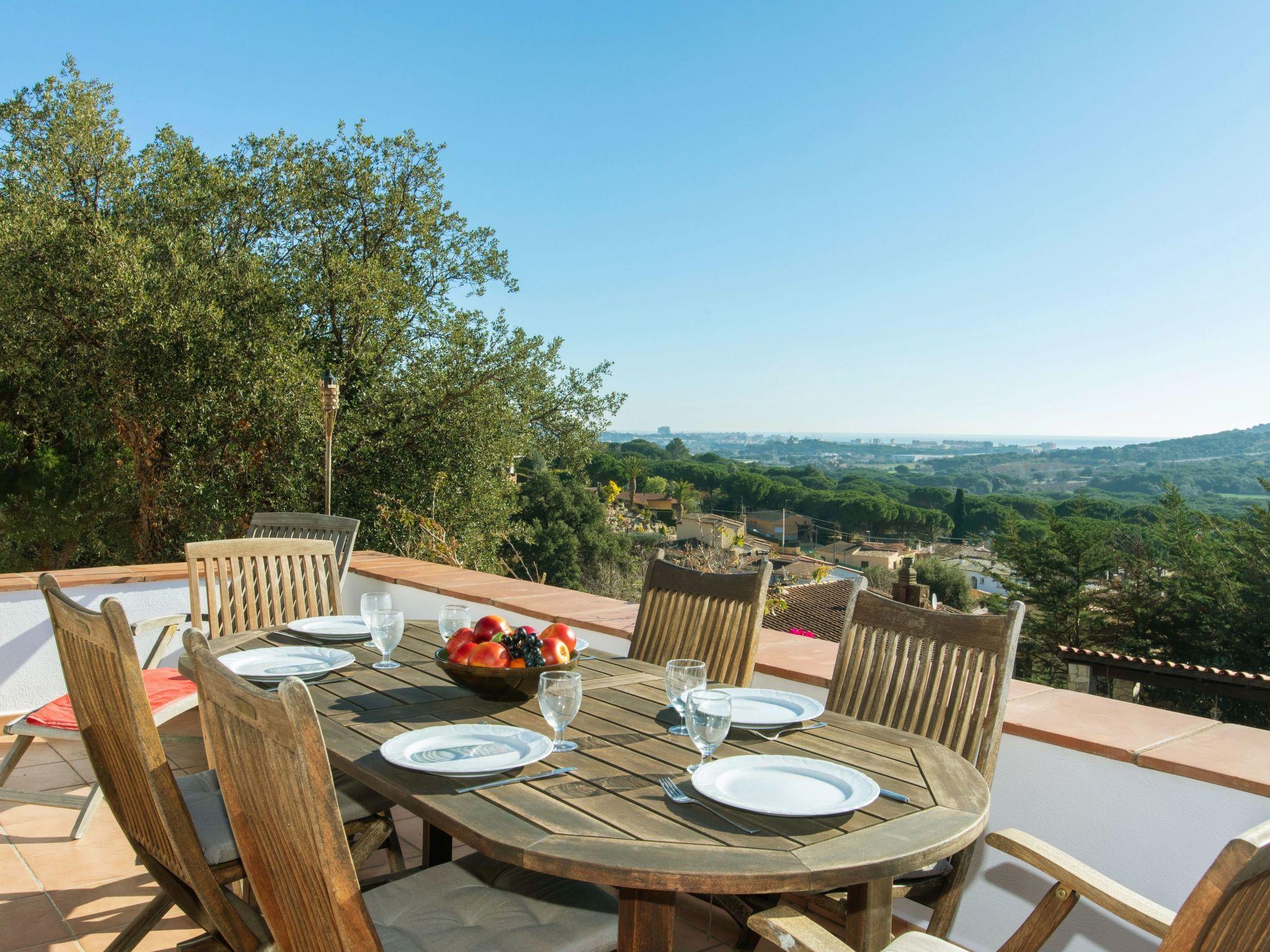 "El Suro", 6-room villa 270 m2 on 2 levels. Comfortable furnishings: living/dining room with digital TV. Exit to the terrace. 1 room with 1 french bed (160 cm, length 220 cm). 1 room with 2 beds (90 cm, length 200 cm). Open kitchen (oven, dishwasher, 4 ceramic glass hob hotplates, toaster, kettle, microwave, freezer, grill, electric coffee machine). Bath/WC. Air-conditioning. No heating option. On the lower ground floor: living/dining room. Exit to the patio, to the swimming pool. 1 room with 1 french bed (150 cm, length 200 cm) with 2 beds (90 cm, length 200 cm), 1 french bed (150 cm, length 200 cm). Small kitchen (freezer). Shower/WC. Large terrace 25 m2, garden, porch. Terrace furniture, barbecue, deck chairs (8), covered balcony. View of the sea and the countryside. Facilities: washing machine, iron, children's high chair, baby cot, hair dryer. Internet (WiFi, free). Parking at the house. Please note: suitable for families. TV only ES. HUTG-056748 // Reg. Nr.: ESFCTU00001701500026216700000000000000000HUTG-0567485