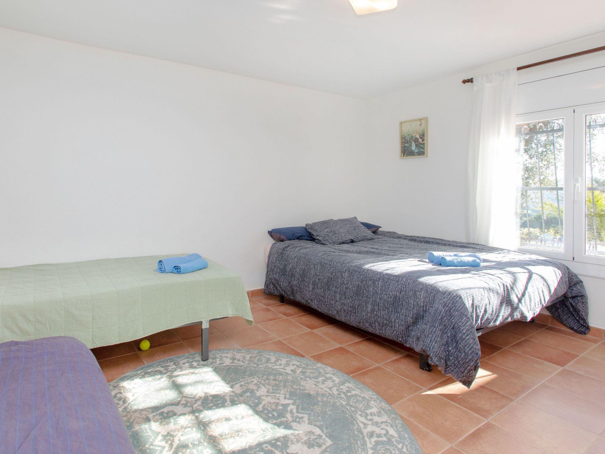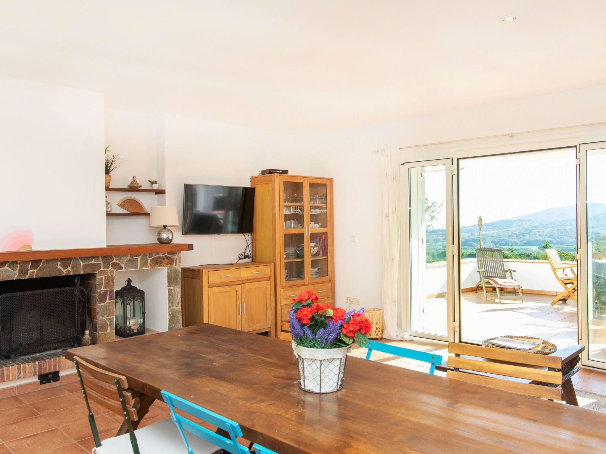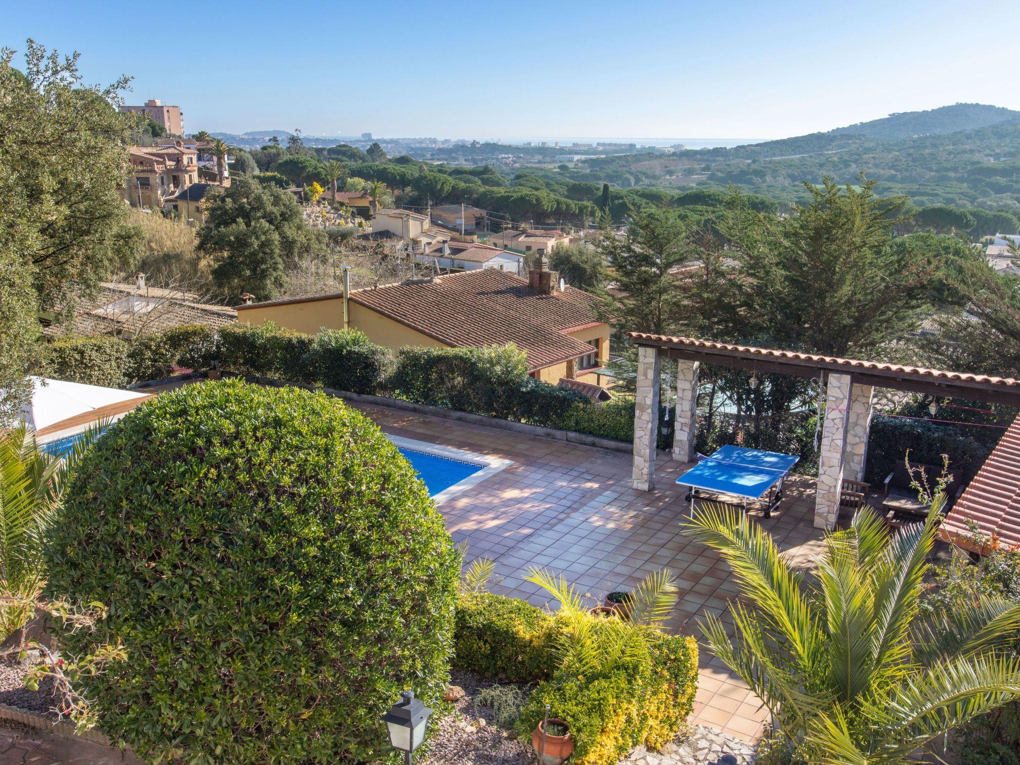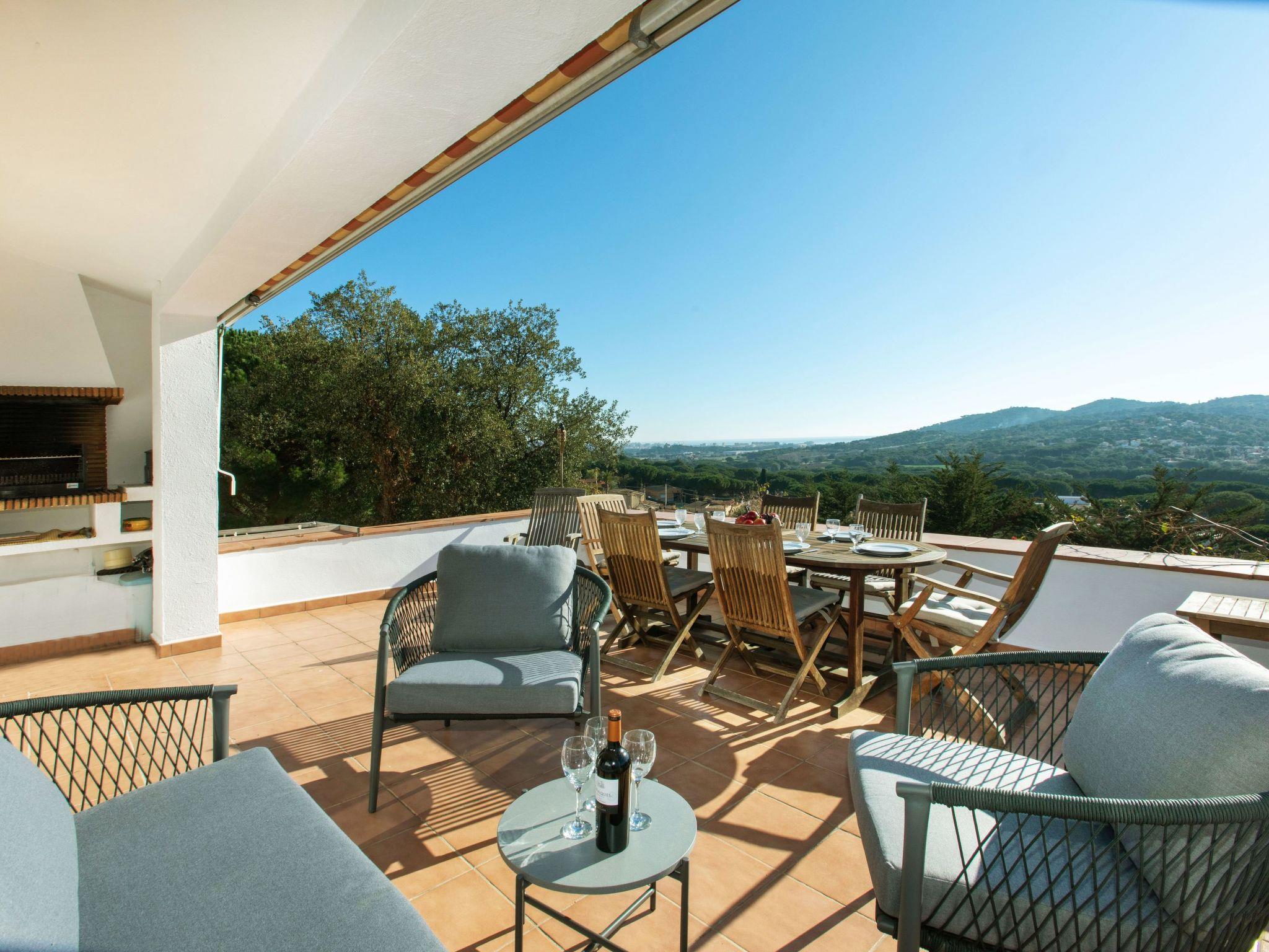 "El Suro", 6-room villa 270 m2 on 2 levels. Comfortable furnishings: living/dining room with digital TV. Exit to the terrace. 1 room with 1 french bed (160 cm, length 220 cm). 1 room with 2 beds (90 cm, length 200 cm). Open kitchen (oven, dishwasher, 4 ceramic glass hob hotplates, toaster, kettle, microwave, freezer, grill, electric coffee machine). Bath/WC. Air-conditioning. No heating option. On the lower ground floor: living/dining room. Exit to the patio, to the swimming pool. 1 room with 1 french bed (150 cm, length 200 cm) with 2 beds (90 cm, length 200 cm), 1 french bed (150 cm, length 200 cm). Small kitchen (freezer). Shower/WC. Large terrace 25 m2, garden, porch. Terrace furniture, barbecue, deck chairs (8), covered balcony. View of the sea and the countryside. Facilities: washing machine, iron, children's high chair, baby cot, hair dryer. Internet (WiFi, free). Parking at the house. Please note: suitable for families. TV only ES. HUTG-056748 // Reg. Nr.: ESFCTU00001701500026216700000000000000000HUTG-0567485