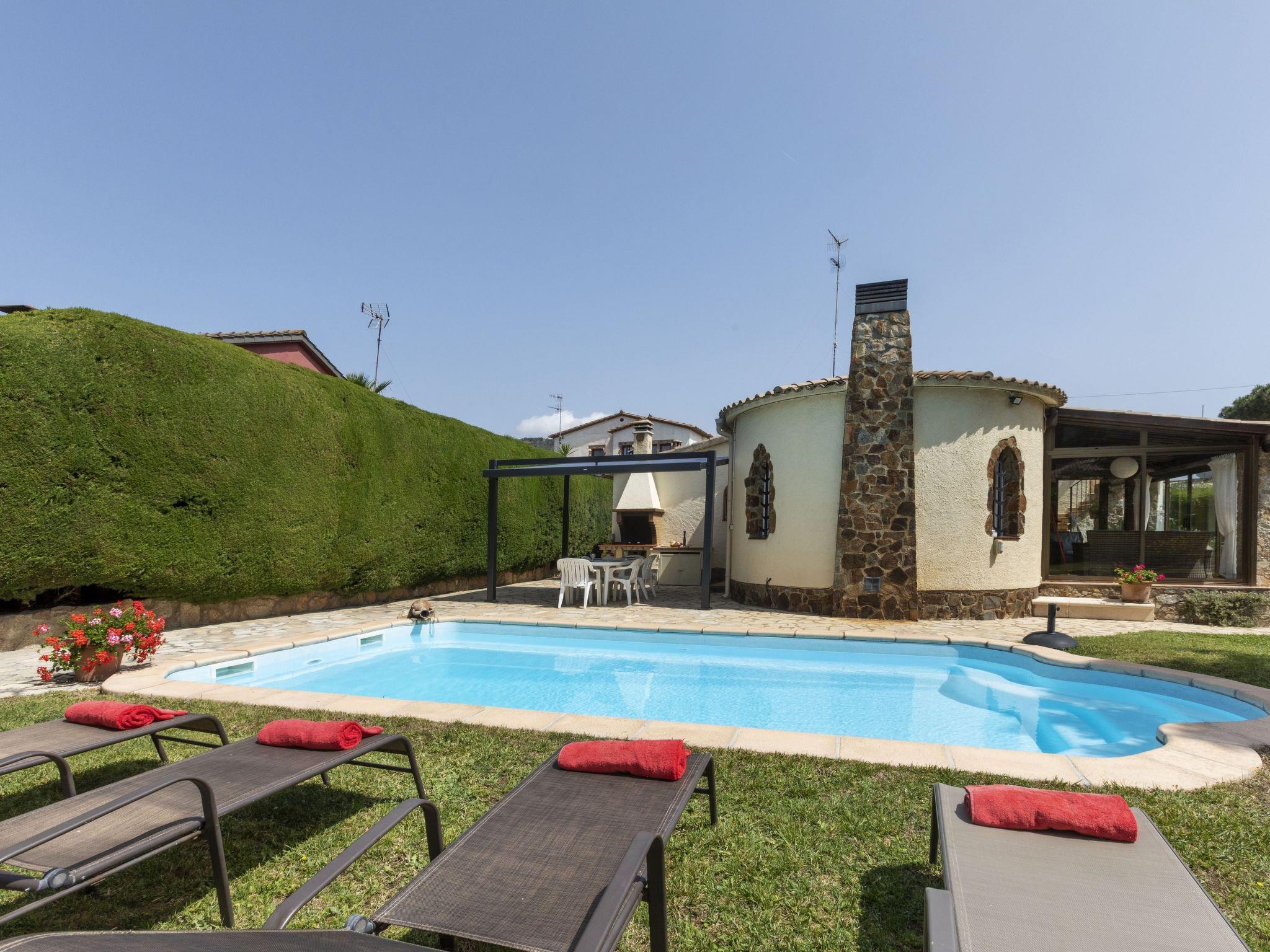 Vizcondado de Cabanyes 3 km from Calonge: Comfortable house "Origami", 2 storeys. 5 km from the sea. Private: garden (fenced), swimming pool angular (8 x 4 m, depth 90 - 155 cm, seasonal availability: 01.May. - 30.Oct.) with internal staircase. Terrace, garden furniture, barbecue, parking at the house, single garage. Supermarket 1.8 km, restaurant 1 km, bus stop 500 m, sandy beach "Sant Antoni de Calonge" 5 km. Sports harbour 8 km, golf course (18 hole) 10 km, riding stable 12 km. Nearby attractions: Parque Aquatico 6 km. Please note: car recommended. The owner does not accept any youth groups.