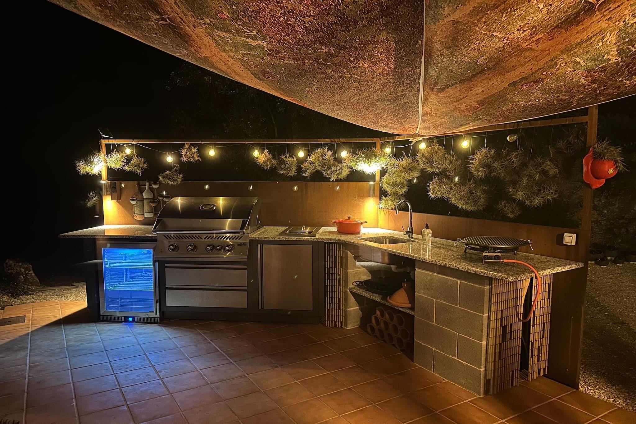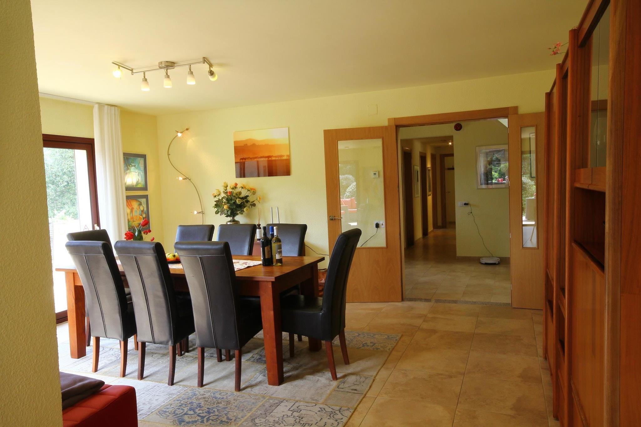 Dette er et så nydelig hus! Når du kjører opp oppkjørselen din, opplever du umiddelbart en følelse av plass, frihet og absolutt ro. Dette drømmehuset ligger i de vakre skogene på fjellene i Les Gavarres, og ligger i kort avstand fra den vakre, robuste kysten med vakre strender. Du har tilgang til to svømmebassenger: ett privat basseng med utendørs dusj, solstoler, morsomt lekehus, klatring hytte med lysbilde, husker, sandkasse, bordtennisbord (ikke glem å ta med flaggermus og ping pong baller!) Og store utenfor sjakk borde. Det andre bassenget (lengde 25 m, mot avgift) ligger ca 500 m unna. Det er en soling eng, to tennisbaner (mot en avgift) og en fin restaurant (alle tre er bare åpnet i høysesongen). Calonge er en nydelig, historisk landsby med et middelalderslott. En vakker strand kan bli funnet på kystbyen Sant Antoni de Calonge (11 km) med flotte turstier langs kysten eller i den berømte Playa de Aro (14 km). Langs kysten er små landsbyer som definitivt er verdt å besøke, som Llafranch og Calella de Palafrugell, begge koselige fiskevær med pittoreske strender og Sant Feliu de Guíxols (12 km) med sin flotte strandpromenade.