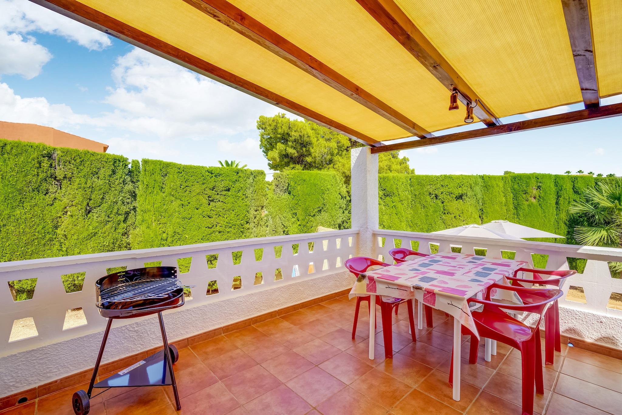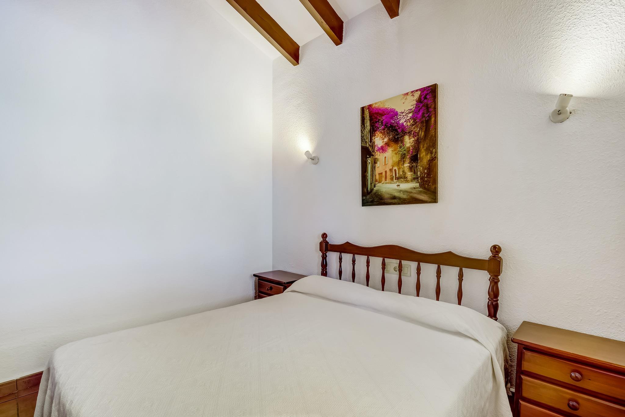 Denne sjarmerende villaen i Calpes fredelige urbanisering Ortenbach tilbyr et avslappende tilfluktssted bare noen minutter fra stranden. Ideell for familier, det ligger 1,5 km fra sentrum og nær lokale butikker og restauranter. Gjestene kan utforske den ikoniske naturparken Penyal d'Ifac, en dramatisk kalkstein som reiser seg fra havet, eller nyte panoramautsikten fra Mirador Monte Toix. Calpes historiske gamleby og den naturskjønne promenaden er perfekte for rolige spaserturer. Villaen har en koselig stue/spisestue med peis og internasjonal TV, og et åpent kjøkken utstyrt med stekeovn, mikrobølgeovn og kjøleskap med fryser. To soverom, ett med dobbeltseng og et annet med enkeltsenger og en trille, har komfortabel plass til gjester. Et komplett bad, vinterhage og utendørs dusj legger til bekvemmelighet. Den private inngjerdede hagen inkluderer en overbygd terrasse, grill og et 8x4 m svømmebasseng (åpent mai-oktober), perfekt for solrike ettermiddager. Området er omgitt av kystskjønnhet, og byr på utmerkede restauranter innen 2 km. Nyt middelhavsmat på Puerto Blanco, kreative retter på Enigma Cocina Con Alma, eller tradisjonell spansk mat på El Cantonet Restaurante. Enten du soler deg, går på tur eller utforsker Calpes kulturelle perler, er denne villaen en perfekt ferie på Costa Blanca.