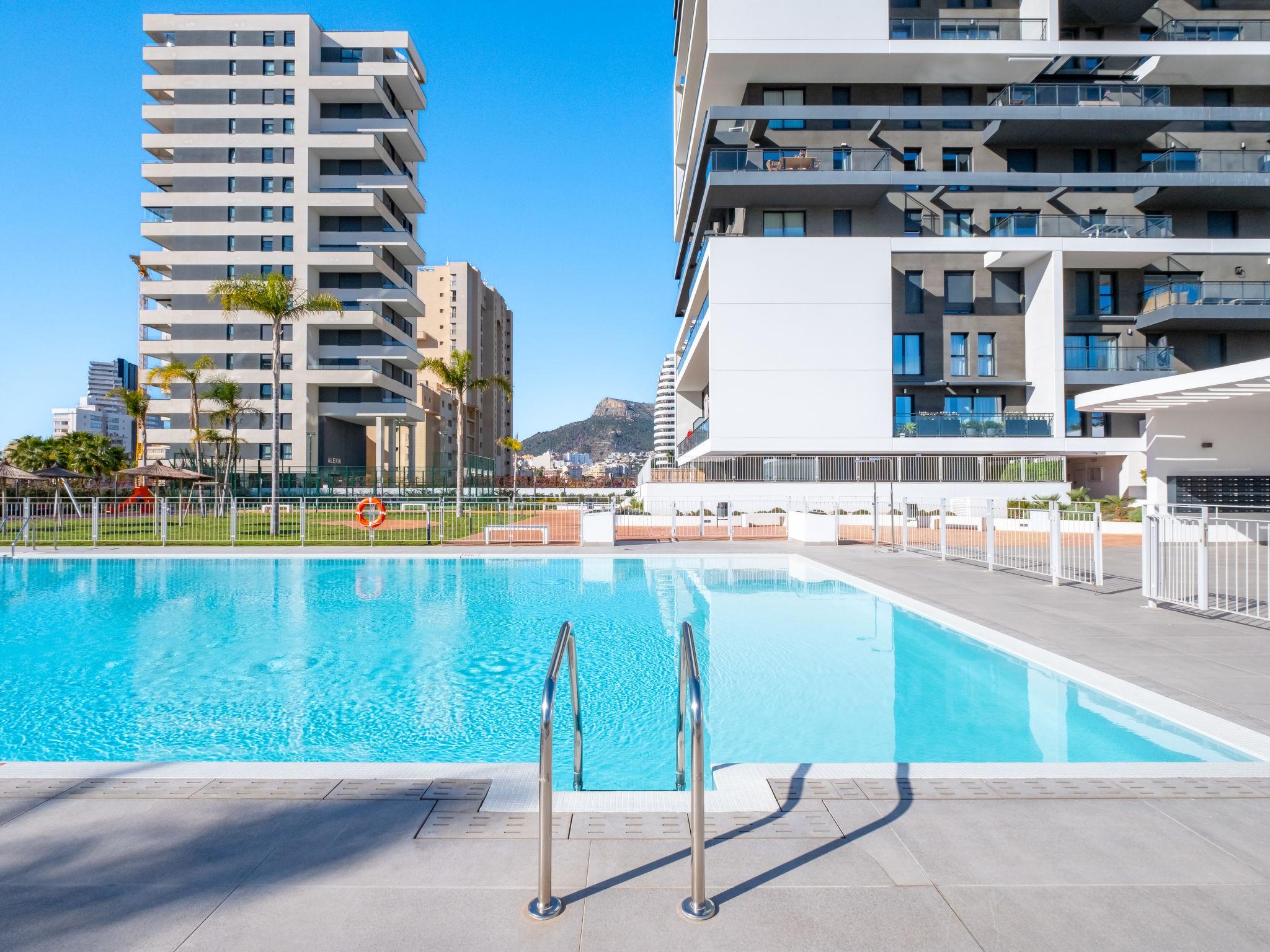 Modern, beautiful apartment block "Sunrise Tower", built in 2023. 1 km from the centre of Calpe, 400 m from the sea, 400 m from the beach. For shared use: property (fenced), lawn for sunbathing, swimming pool (20 x 10 m, seasonal availability: 01.Jan. - 31.Dec.). Outdoor shower, children's playground. In the house: lift. Grocery, supermarket 200 m, restaurant, café 500 m, bus stop "Parada Bus" 700 m, sandy beach "Playa Arenal" 450 m. Sports harbour 1.8 km, marina 1.8 km, golf course (9 hole) 10 km. Nearby attractions: Aqualandia, Mundomar, Terra Mítica, Terra Natura, Les Fonts de l'Algar, Castillo de Guadalest. The owner does not accept any youth groups.