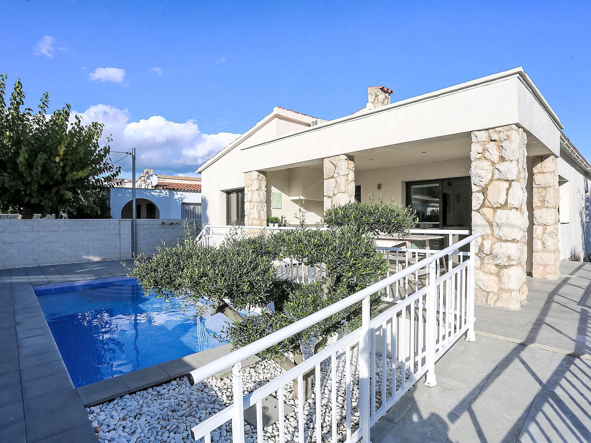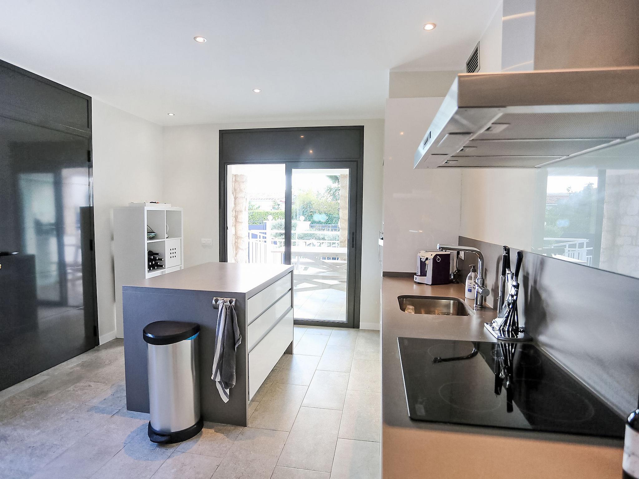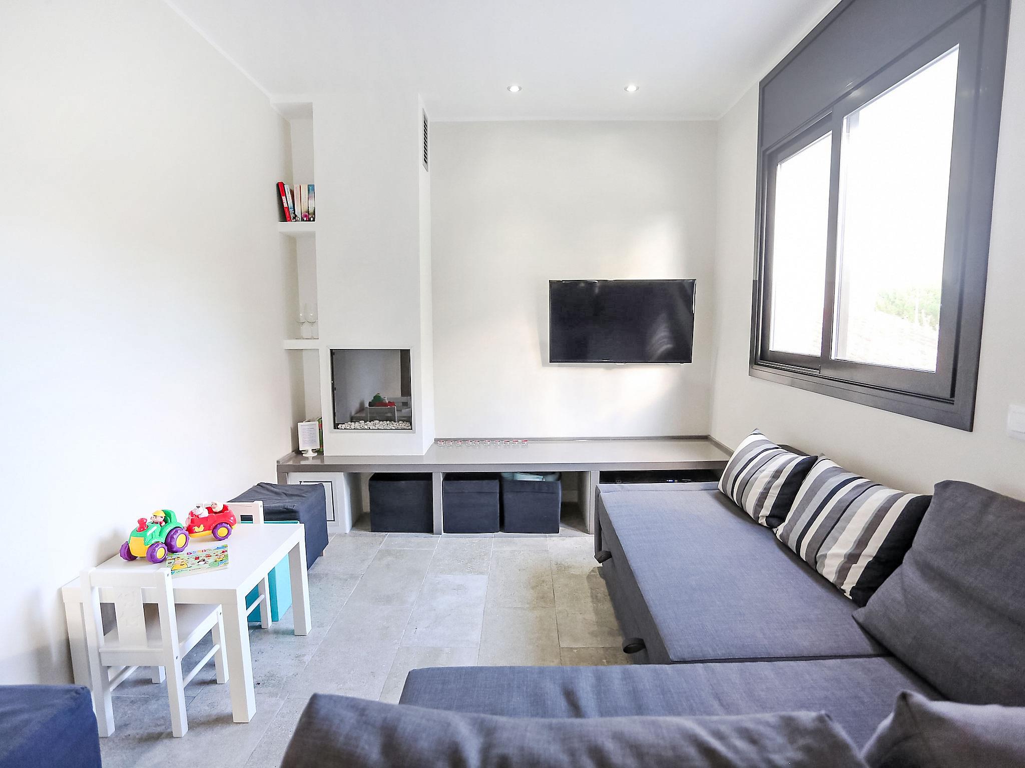 Cambrils Badia 1 km from Cambrils: Very modern, beautiful house "Gunella", detached, renovated in 2014. Outside the resort Cambrils, 300 m from the sea, 300 m from the beach. Private: property (fenced), garden with lawn, swimming pool (7 x 3 m, depth 140 - 150 cm, seasonal availability: 01.Jan. - 31.Dec.) with internal staircase. Shower/WC in the pool area, terrace, garden furniture, barbecue, pool maintenance by the owner/gardener. Parking at the house, public parking on the road. Shop 1 km, grocery 200 m, supermarket 600 m, restaurant 1 km, bus stop 400 m, railway station 3 km. Sports harbour 1 km. Nearby attractions: Port Aventura 3 km, Aquopolis 6 km. Please note: baby equipment (included). Groups of teenagers on request only.