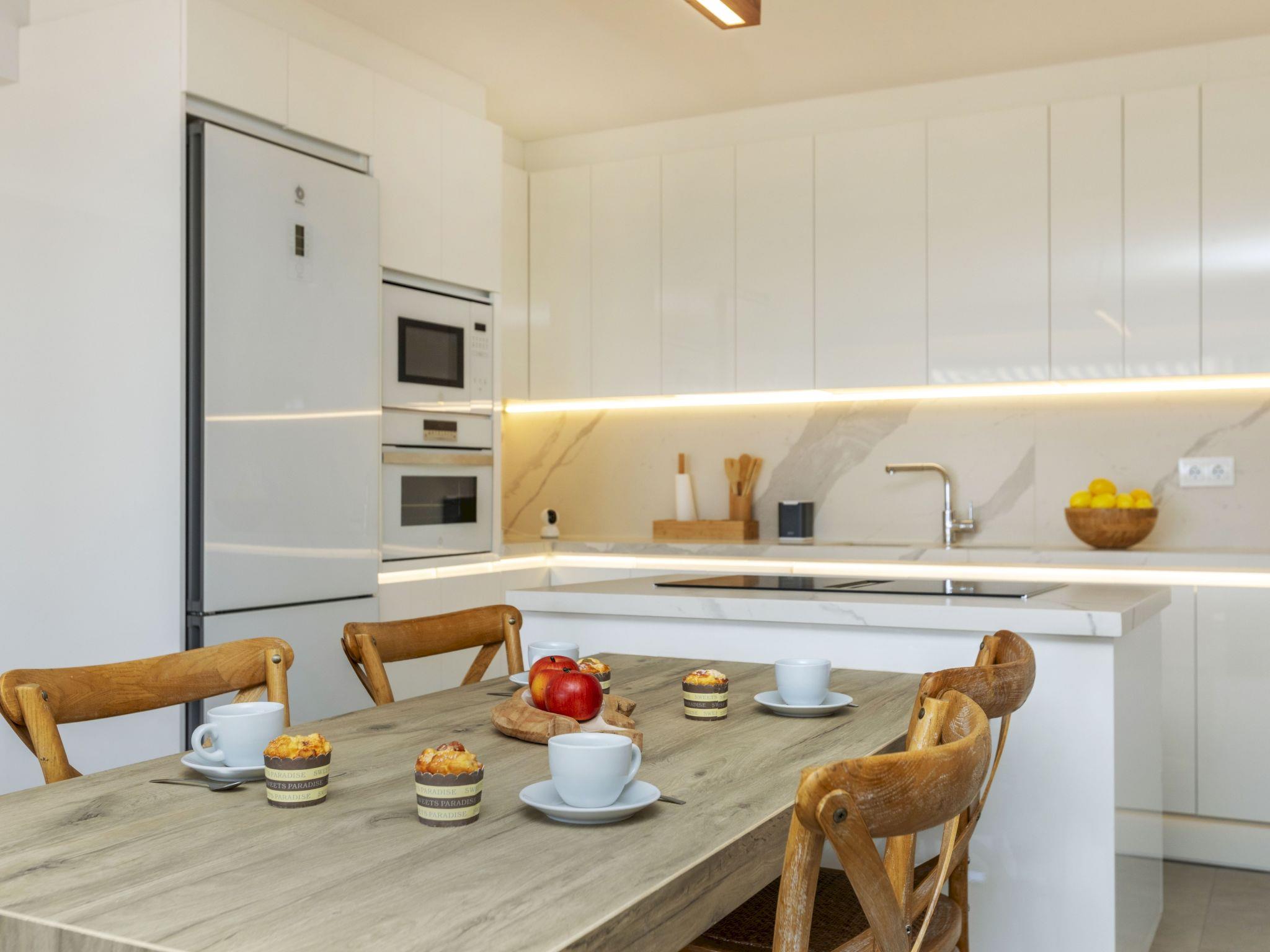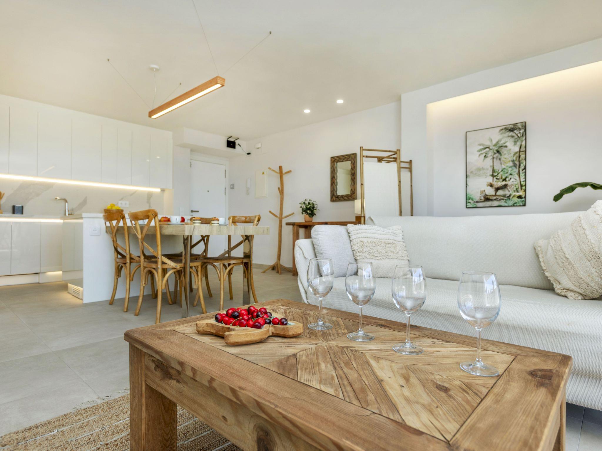"Marinada Cambrils", 3-room apartment 65 m2 on 1st floor. Fully renovated in 2024, very modern furnishings: living/dining room with digital TV and flat screen. Exit to the terrace. 1 room with 1 french bed (150 cm, length 190 cm). Exit to the terrace. 1 room with 2 beds (90 cm, length 190 cm). Open kitchen (oven, dishwasher, 2 induction hot plates, kettle, microwave, freezer, electric coffee machine). Shower/WC. Air-conditioning, forced-air heating. Terrace furniture. Marvellous view of the sea. Facilities: washing machine, iron, hair dryer. Internet (WiFi, free). Please note: non-smokers only. HUTT-007090 // Reg. Nr.: ESFCTU00004303100006126000000000000000000HUTT-0070904