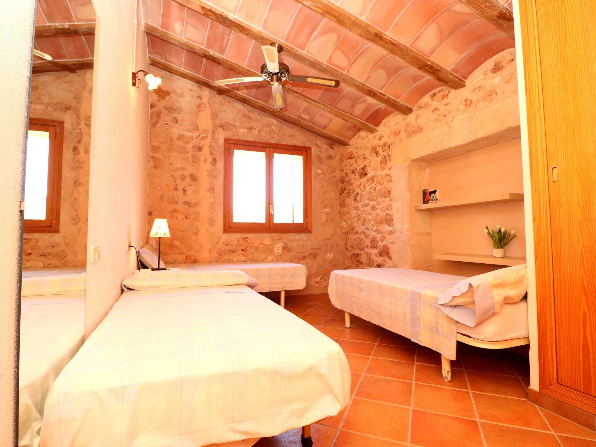 Can Guillem verfügt über 3 Schlafzimmer und 2 Bäder. In zwei der Schlafzimmer befinden sich 2 Einzelbetten und im anderen ein Doppelbett (alle drei haben Deckenventilatoren)es gibt aber auch Klimaanlage in allen Zimmern. Im ganzen Haus gibt es SAT TV und auch WLAN so das Sie auch in Ihrem Urlaub im Internet surfen können. Die ofene Küche ist auch mit allem was Sie brauchen ausestattet wie, Herd, Ofen, Kaffeemaschine, Geschirrspüler, Mikrowelle, Kühlschrank, Toaster, Wasserkocher, Geschirr, etc. Die überdachte Terrasse lädt im Sommer zum Essen ein unter dem Dach sticht einen dann die Sonne auch nicht zu sehr auf die Haut. Der Pool ist zu Ihrer alleinigen Nutzung verfügbar, dort sind auch für alle Gäste Liegen vorhanden. Auf der überdachten Terrasse finden Sie eine Tischtennisplatte zum vergnügen von gross und klein.