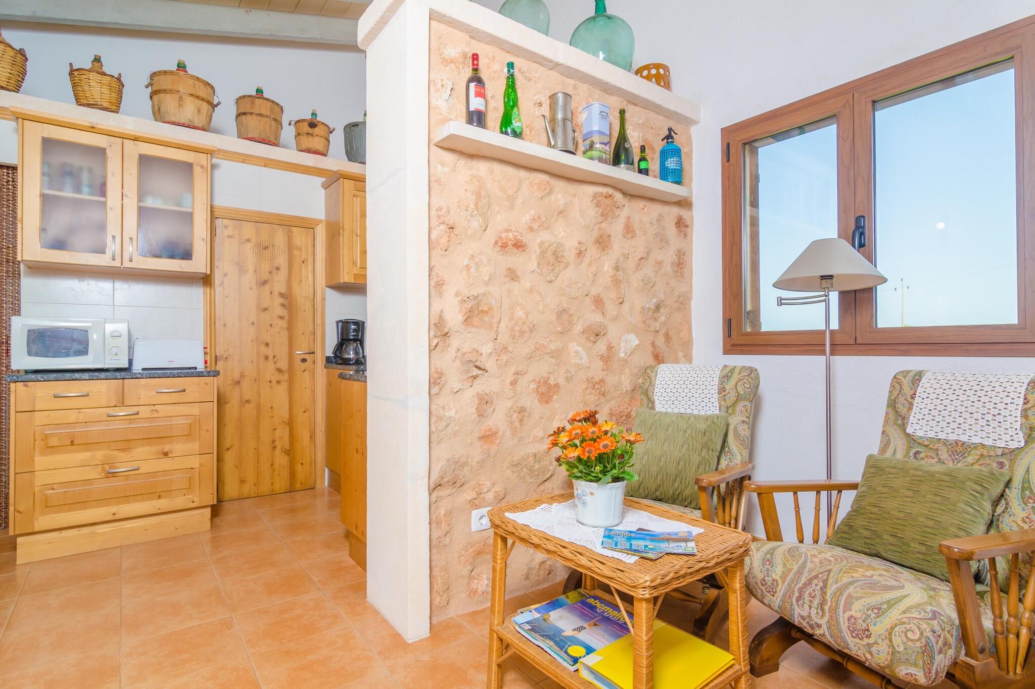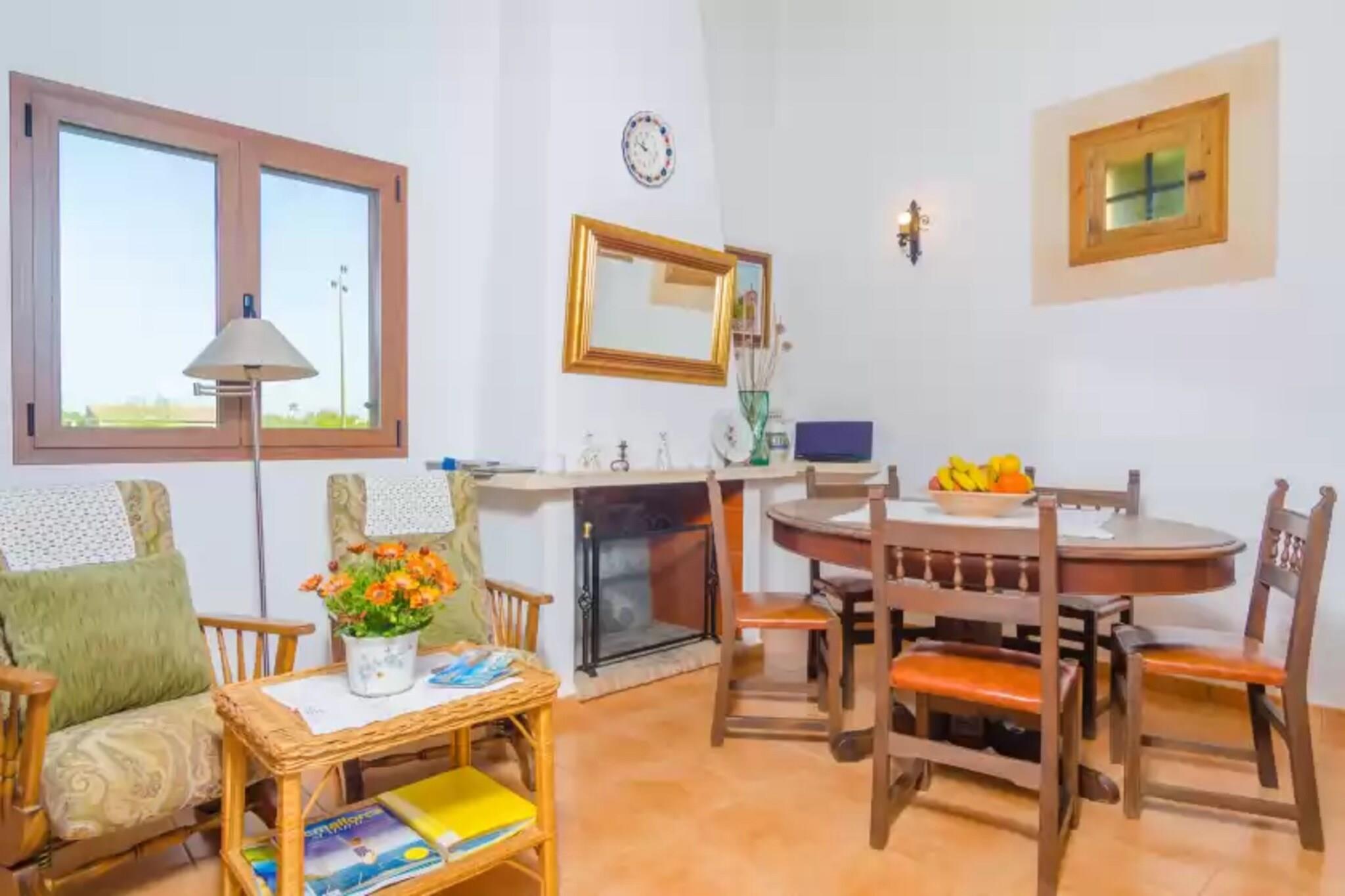 Oppdag absolutt fred og privatliv i dette sjarmerende landstedet, som består av to separate koselige bygninger omgitt av frodige hager, innfødte trær og åpent landskap. Den møblerte verandaen og terrassen er ideelle for å slappe av eller nyte grillmat utendørs. Etter lunsj kan du spasere gjennom eiendommen, slappe av på en av de 4 solsengene, eller svaie på hagehusken mens du lytter til fuglesang. Hver bygning har sin egen funksjon, og skiller oppholdsrom fra soverommene for ekstra komfort. I det første huset finner du et lyst kjøkken og spiseplass med åpen planløsning, perfekt for familiemåltider eller for å se på satellitt-TV fra lenestolene. Denne bygningen inkluderer også et bad med dusj og bidet, pluss et vaskerom med vaskemaskin, strykejern og strykebrett. Det andre huset har to soverom med klimaanlegg og garderobeskap – ett med dobbeltseng og det andre med enkeltsenger. En barneseng og barnestol er tilgjengelig på forespørsel. Fincaen ligger kun 8,6 km fra den spektakulære stranden Es Trenc og innen rekkevidde av Cala Santanyí, Cala Llombards og Campos by (3 km), og tilbyr en fredelig base for å utforske Mallorca. Palma ligger bare 30 minutter unna. Merk: Kjæledyr og arrangementer er ikke tillatt. Utvendig parkering for 1 bil. Ecotasa gjelder.