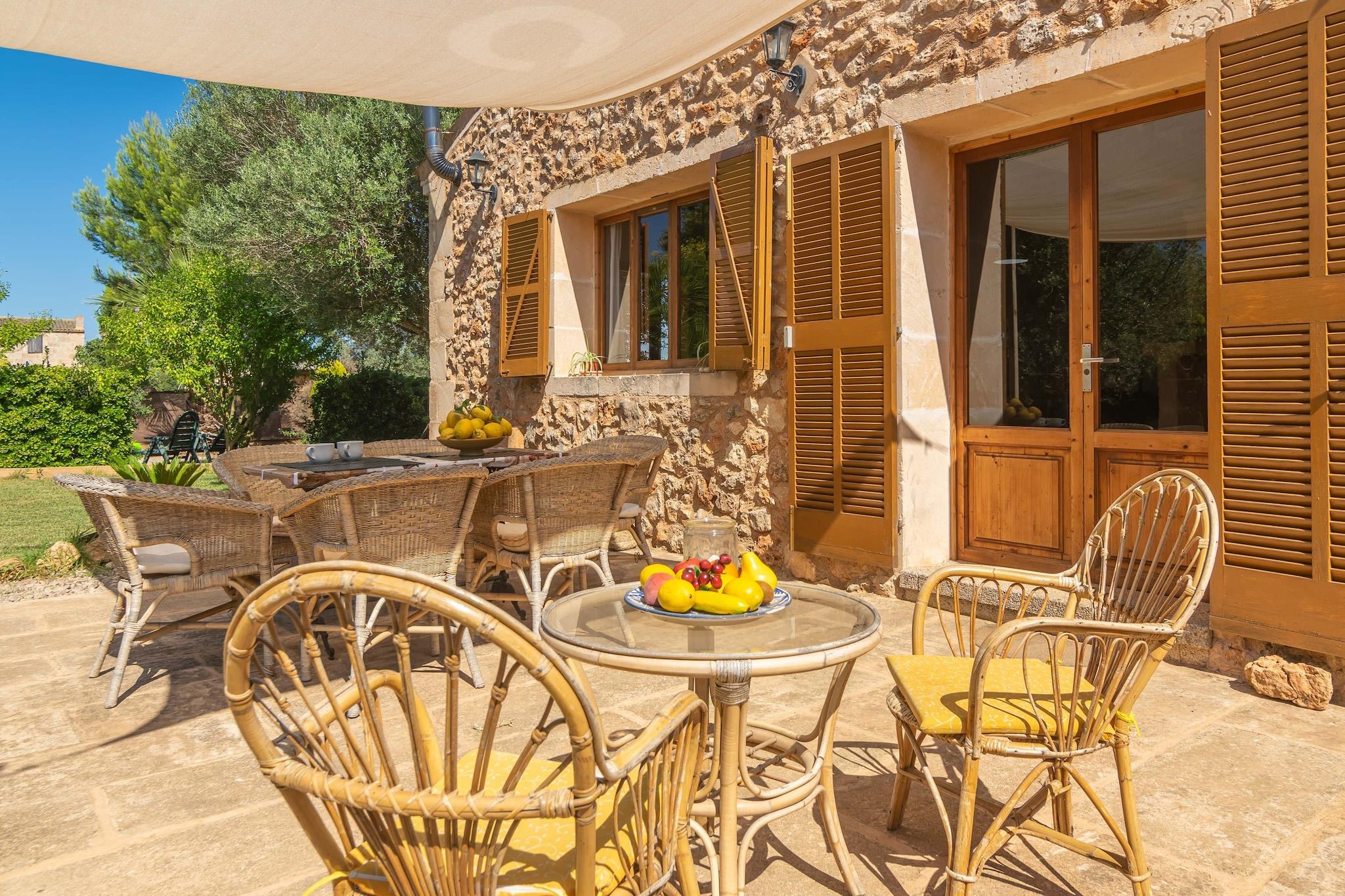 Nyt et fredelig landskap i denne sjarmerende villaen like utenfor Campos. Slapp av utendørs med fullt privatliv, et 5m-diameter over bakken basseng (1,2m dypt), flere chill-out områder, og en grill for utendørs servering. Det tradisjonelle enetasjes hjemmet har et enkelt og koselig interiør. Den AC-utstyrte stuen med satellitt-TV er perfekt for å slappe av. Det romslige spisekjøkkenet har en gasskomfyr og en vedovn for kaldere dager. Det er også vaskemaskin, strykejern og strykebrett. Villaen sover 4 i to AC-utstyrte soverom: ett med dobbeltseng og eget bad med dusj, og ett med to enkeltsenger. Et andre bad med dusj er også tilgjengelig. Barneseng og barnestol tilbys på forespørsel. Du vil være bare 5 km fra Campos, hvor du finner alle grunnleggende tjenester, og i nærheten av fantastiske strender som Ses Covetes og Es Trenc. Vall d'Or Golf ligger 19,5 km unna. Kjæledyr og arrangementer er ikke tillatt. Ecotasa betales på stedet.