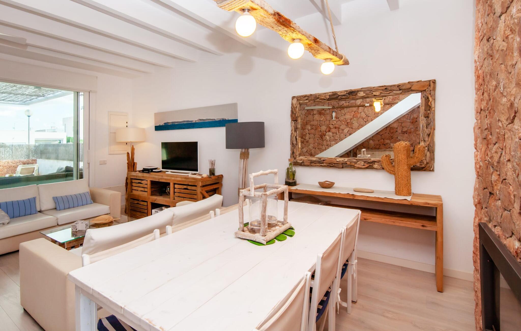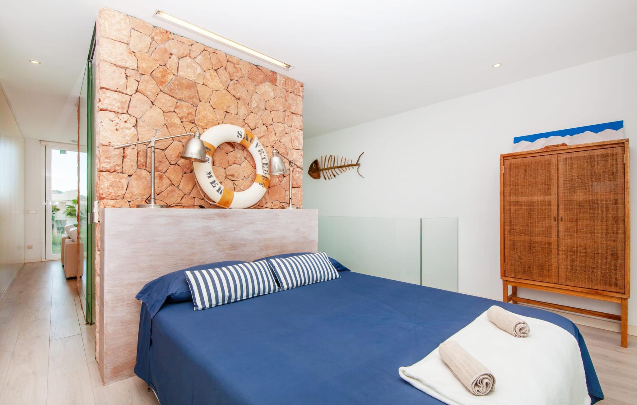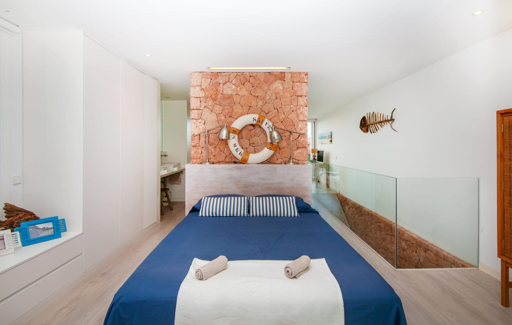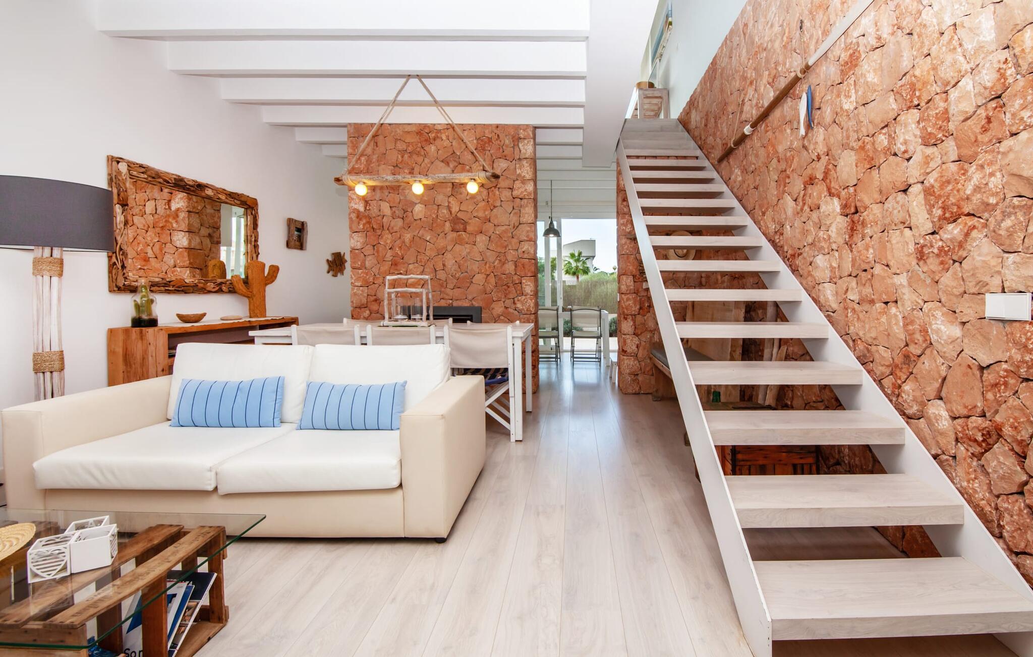 Et originalt utformet og designet interiør ønsker deg velkommen når du kommer inn i den behagelig lyse Villa Can Bosquerro. Den solide, rødskimrende natursteinen går igjen her og setter både effektfulle og estetiske aksenter i rommenes herlig maritime stil. Stue/spisestue og kjøkken går over i hverandre i en halvåpen planløsning, noe som skaper en flytende overgang mellom bruksområdene. Komfort og funksjonalitet er like viktig. En rekke unike detaljer bidrar til å understreke den individuelle, moderne atmosfæren. To koselige soverom, ett med dobbeltseng og ett med køyesenger, samt et dusjrom (installert i det største av de to soverommene) kompletterer første etasje. Den øverste etasjen domineres av et romslig soverom med stue og eget bad. Herfra har du utgang til den vakre balkongen, der den første morgenkaffen garantert smaker like godt som en sundowner. Denne villaen på Mallorca er et virkelig lykketreff for alle som ønsker å tilbringe ferien nær stranden, estetisk tiltalende og av høy kvalitet. Denne estetiske ferieboligen på Mallorca scorer med sin attraktive beliggenhet nær sjøen, med stranden og havnen innen gangavstand. Den originalt utformede villaen ligger også praktisk til direkte i en liten, rolig gate, og har derfor ideelle forbindelser til ulike utfluktsmål. Sa Ràpita har en attraktiv infrastruktur med restauranter og shoppingmuligheter. Nærheten til andre fantastiske strender, som Es Trenc eller Ses Covetes, avrunder fordelene med beliggenheten.