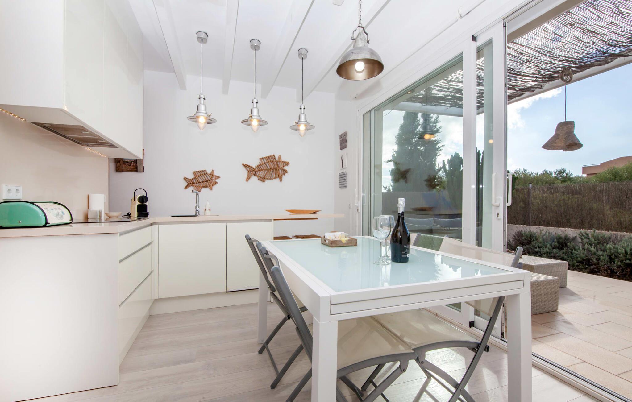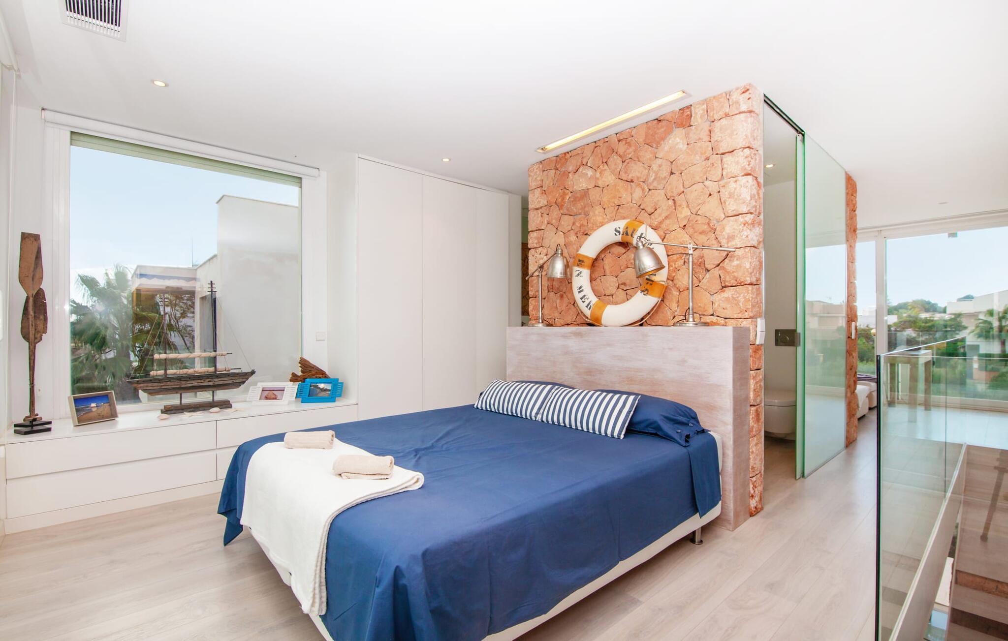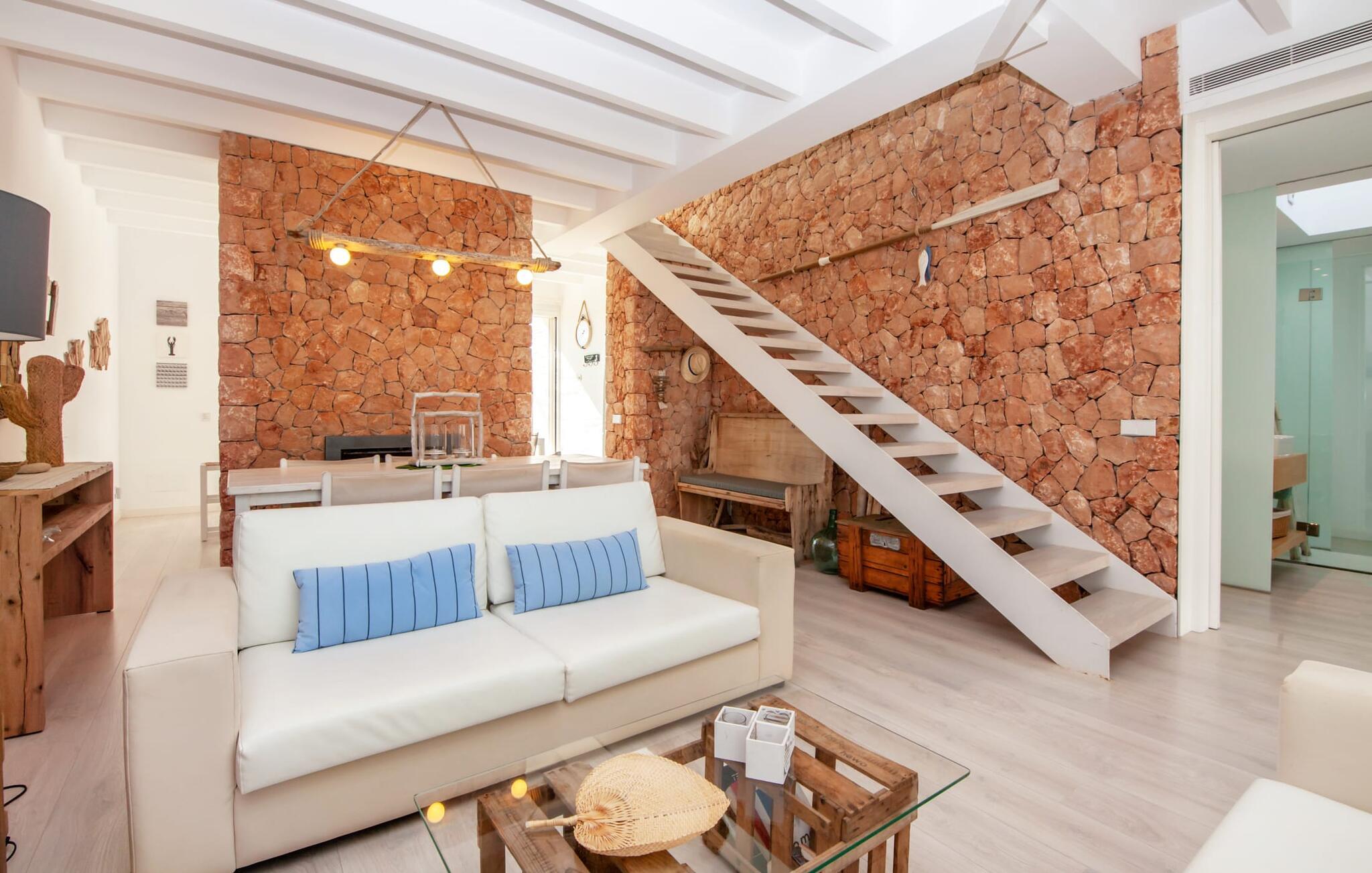 Et originalt utformet og designet interiør ønsker deg velkommen når du kommer inn i den behagelig lyse Villa Can Bosquerro. Den solide, rødskimrende natursteinen går igjen her og setter både effektfulle og estetiske aksenter i rommenes herlig maritime stil. Stue/spisestue og kjøkken går over i hverandre i en halvåpen planløsning, noe som skaper en flytende overgang mellom bruksområdene. Komfort og funksjonalitet er like viktig. En rekke unike detaljer bidrar til å understreke den individuelle, moderne atmosfæren. To koselige soverom, ett med dobbeltseng og ett med køyesenger, samt et dusjrom (installert i det største av de to soverommene) kompletterer første etasje. Den øverste etasjen domineres av et romslig soverom med stue og eget bad. Herfra har du utgang til den vakre balkongen, der den første morgenkaffen garantert smaker like godt som en sundowner. Denne villaen på Mallorca er et virkelig lykketreff for alle som ønsker å tilbringe ferien nær stranden, estetisk tiltalende og av høy kvalitet. Denne estetiske ferieboligen på Mallorca scorer med sin attraktive beliggenhet nær sjøen, med stranden og havnen innen gangavstand. Den originalt utformede villaen ligger også praktisk til direkte i en liten, rolig gate, og har derfor ideelle forbindelser til ulike utfluktsmål. Sa Ràpita har en attraktiv infrastruktur med restauranter og shoppingmuligheter. Nærheten til andre fantastiske strender, som Es Trenc eller Ses Covetes, avrunder fordelene med beliggenheten.