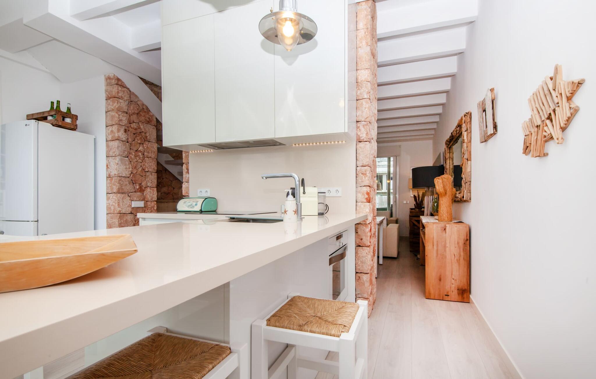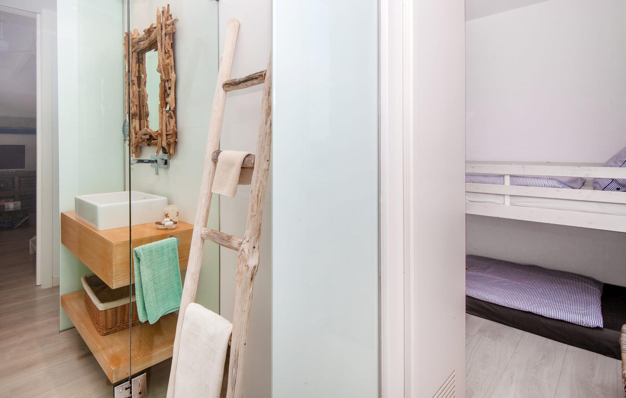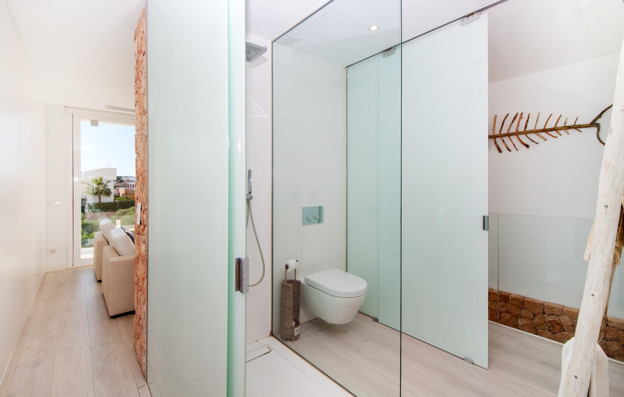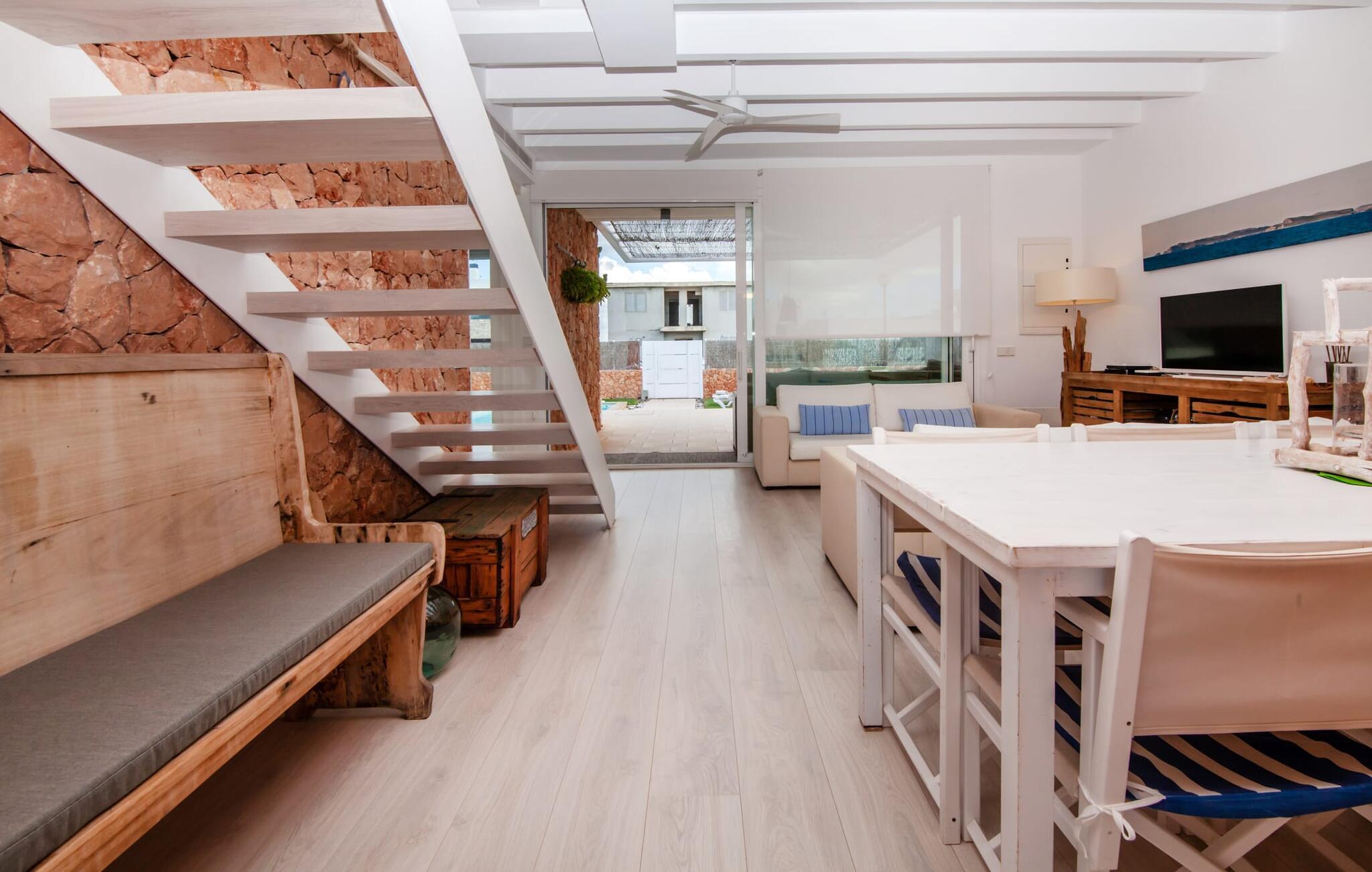 Et originalt utformet og designet interiør ønsker deg velkommen når du kommer inn i den behagelig lyse Villa Can Bosquerro. Den solide, rødskimrende natursteinen går igjen her og setter både effektfulle og estetiske aksenter i rommenes herlig maritime stil. Stue/spisestue og kjøkken går over i hverandre i en halvåpen planløsning, noe som skaper en flytende overgang mellom bruksområdene. Komfort og funksjonalitet er like viktig. En rekke unike detaljer bidrar til å understreke den individuelle, moderne atmosfæren. To koselige soverom, ett med dobbeltseng og ett med køyesenger, samt et dusjrom (installert i det største av de to soverommene) kompletterer første etasje. Den øverste etasjen domineres av et romslig soverom med stue og eget bad. Herfra har du utgang til den vakre balkongen, der den første morgenkaffen garantert smaker like godt som en sundowner. Denne villaen på Mallorca er et virkelig lykketreff for alle som ønsker å tilbringe ferien nær stranden, estetisk tiltalende og av høy kvalitet. Denne estetiske ferieboligen på Mallorca scorer med sin attraktive beliggenhet nær sjøen, med stranden og havnen innen gangavstand. Den originalt utformede villaen ligger også praktisk til direkte i en liten, rolig gate, og har derfor ideelle forbindelser til ulike utfluktsmål. Sa Ràpita har en attraktiv infrastruktur med restauranter og shoppingmuligheter. Nærheten til andre fantastiske strender, som Es Trenc eller Ses Covetes, avrunder fordelene med beliggenheten.