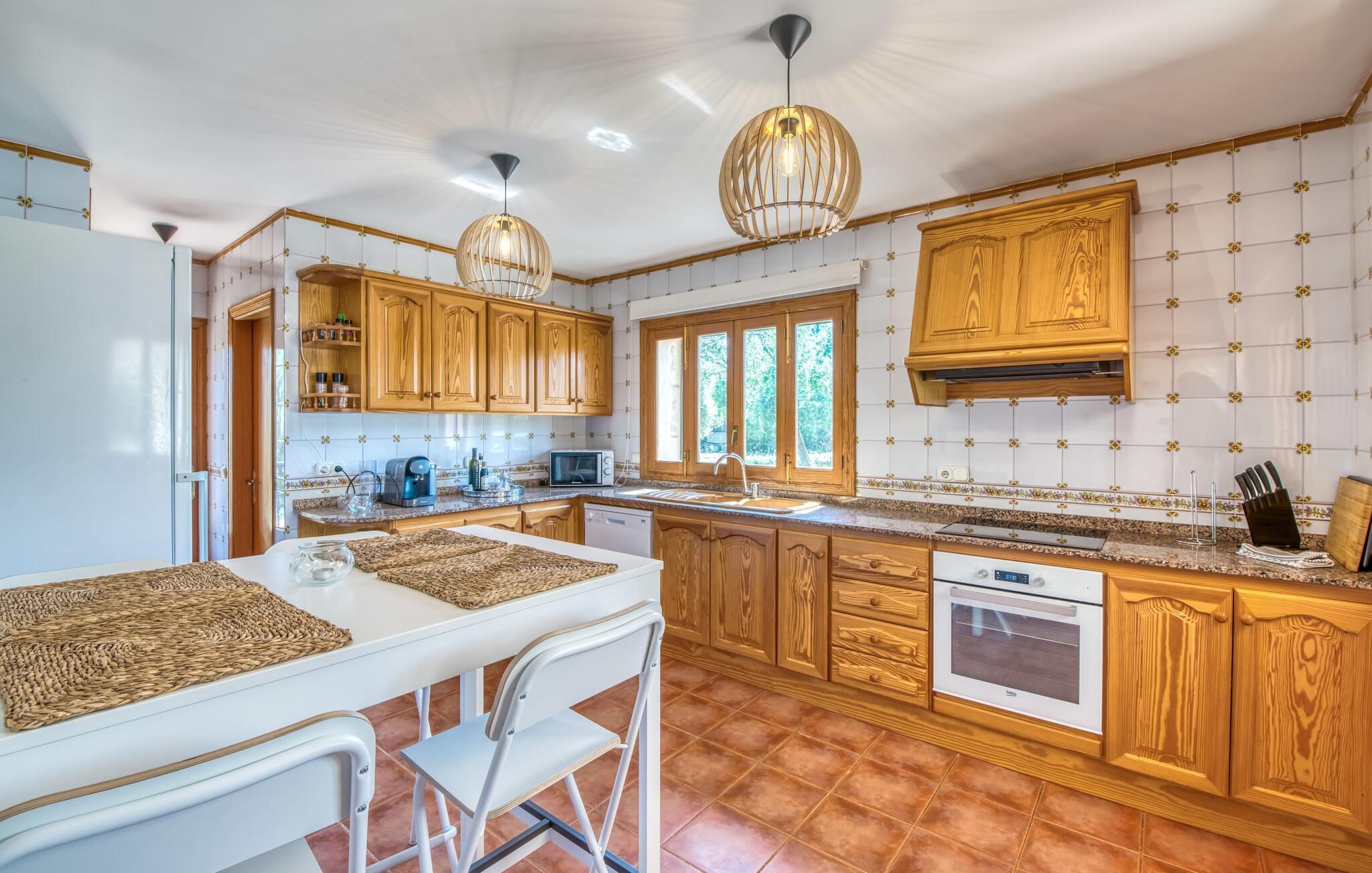 Det romslige interiøret er lyst og koselig. En utendørs stue og en spisestue på den overbygde terrassen gir plass til alle. Det er komfortable sofaer og lenestoler for dem som synes det er for kjølig eller vil tilbringe en koselig kveld med å se på TV i sofaen. En spisestue og et stort kjøkken avrunder oppholdsrommet. De lyst møblerte soverommene lover en avslappende nattesøvn. Badene er også store. 5 km vest for kystbyen Can Picafort er Finca Can Carmina et fantastisk utgangspunkt for utflukter: Alcúdiabukten i øst, fjellene i nord, interessante byer og ulike bukter i sør og vest. Her er det rikelig med muligheter for alle slags sports- og fritidsaktiviteter, og populære sykkelruter starter like i nærheten av fincaen.