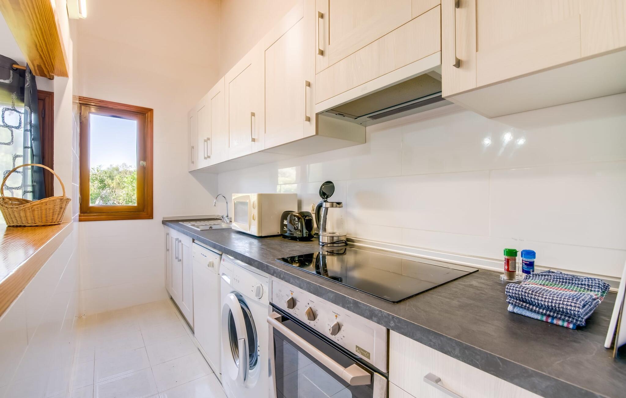 Can Jaume dEs Carritxo er utrolig tiltalende allerede ved første øyekast. Den delikate bygningen er omgitt av store palmer og ligger i en velstelt hage med store plener, praktfulle blomsterplanter og en rekke middelhavsbusker. Så snart du kommer til eiendommen via landeveien, slår hjertet ditt raskere, og du vet at du har nådd målet ditt. Når dere reiser sammen som par, kan det hende dere har behov for å tilbringe litt tid sammen, noe som ofte er vanskelig i hverdagen. Eller kanskje du reiser som en liten familie med et barn og en firbeint venn - denne konstellasjonen er også veldig velkommen her. Eller kanskje du reiser sammen med din beste venn eller en barndomsvenn, slik at dere har mye å snakke om og noen ganger ikke snakker sammen i det hele tatt - alt er mulig her. Litt velvære bør også være en del av ferieprogrammet, blant annet i det store bassenget med stupebrett. Etter en forfriskende dukkert kan du slappe av på en av solsengene i skyggen av parasollen, lese en bok eller bare slappe av. En avslappende ettermiddag ved bassenget med mandelkake, sobrasada, fiken, oliven, soltørkede tomater og pimientos gjør at du kan koble av og slappe av i feriehuset ditt. Du er også velkommen til å bruke den innebygde grillen og slippe kreativiteten løs med grilloppskriftene dine.
