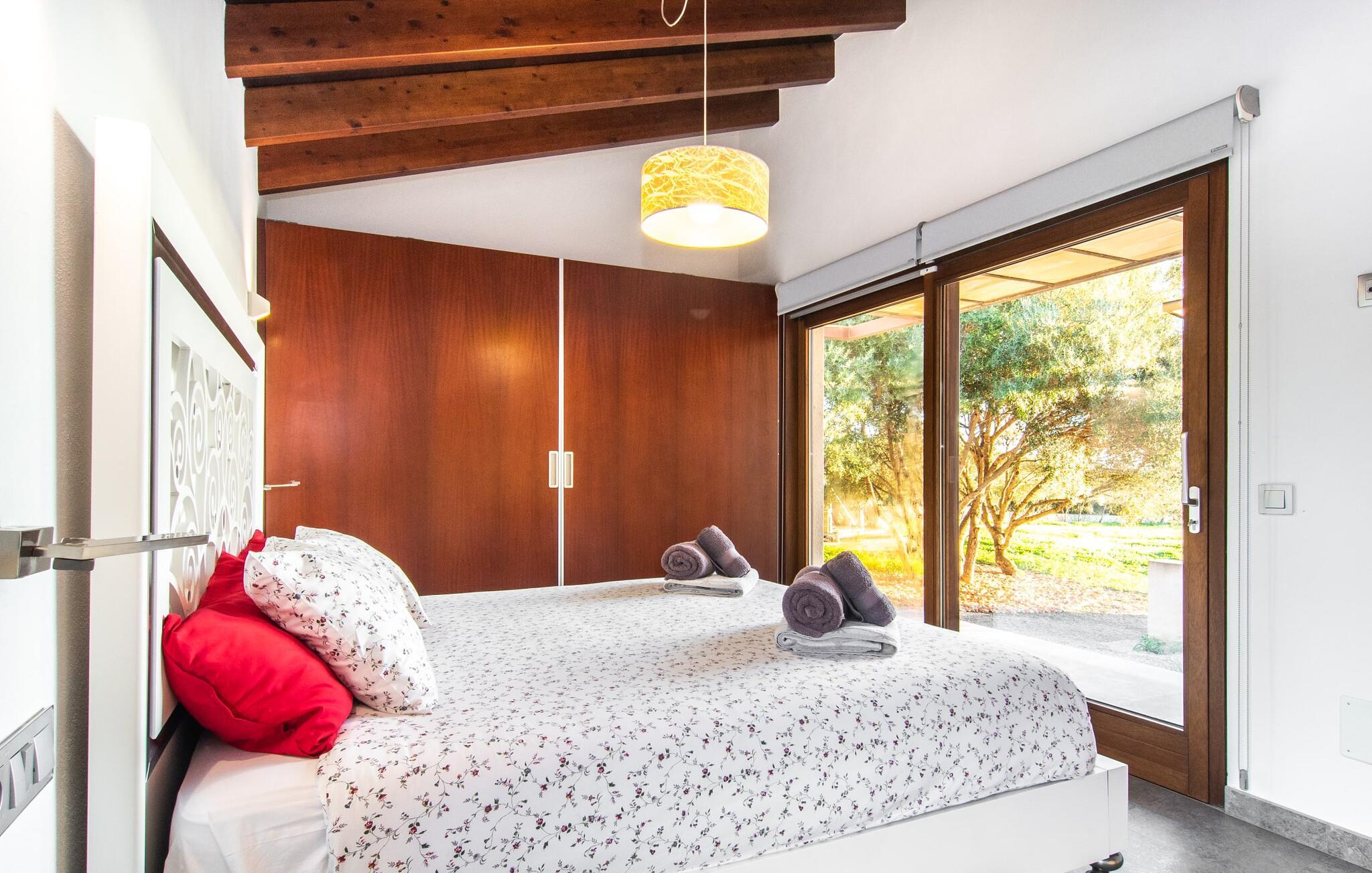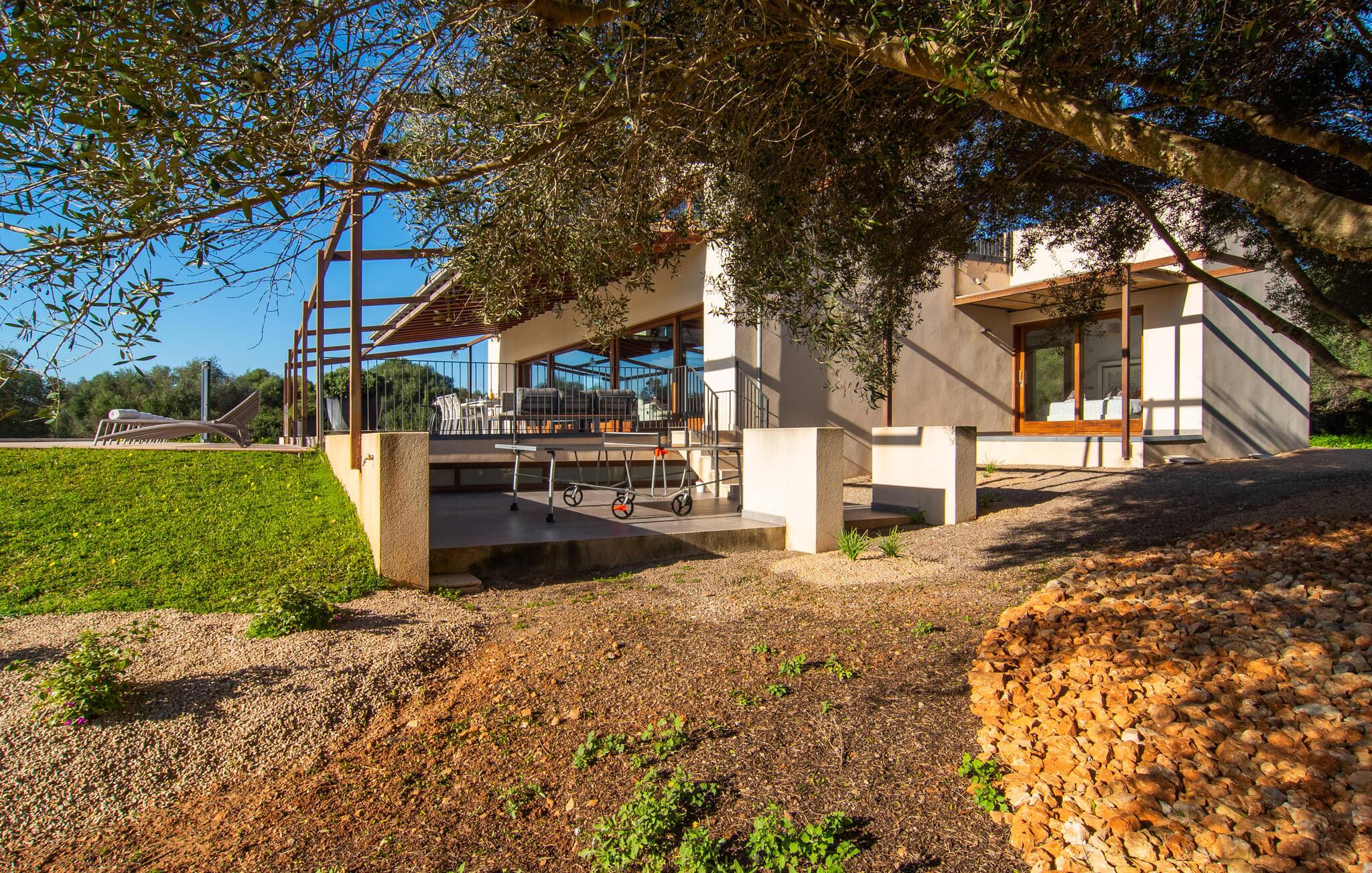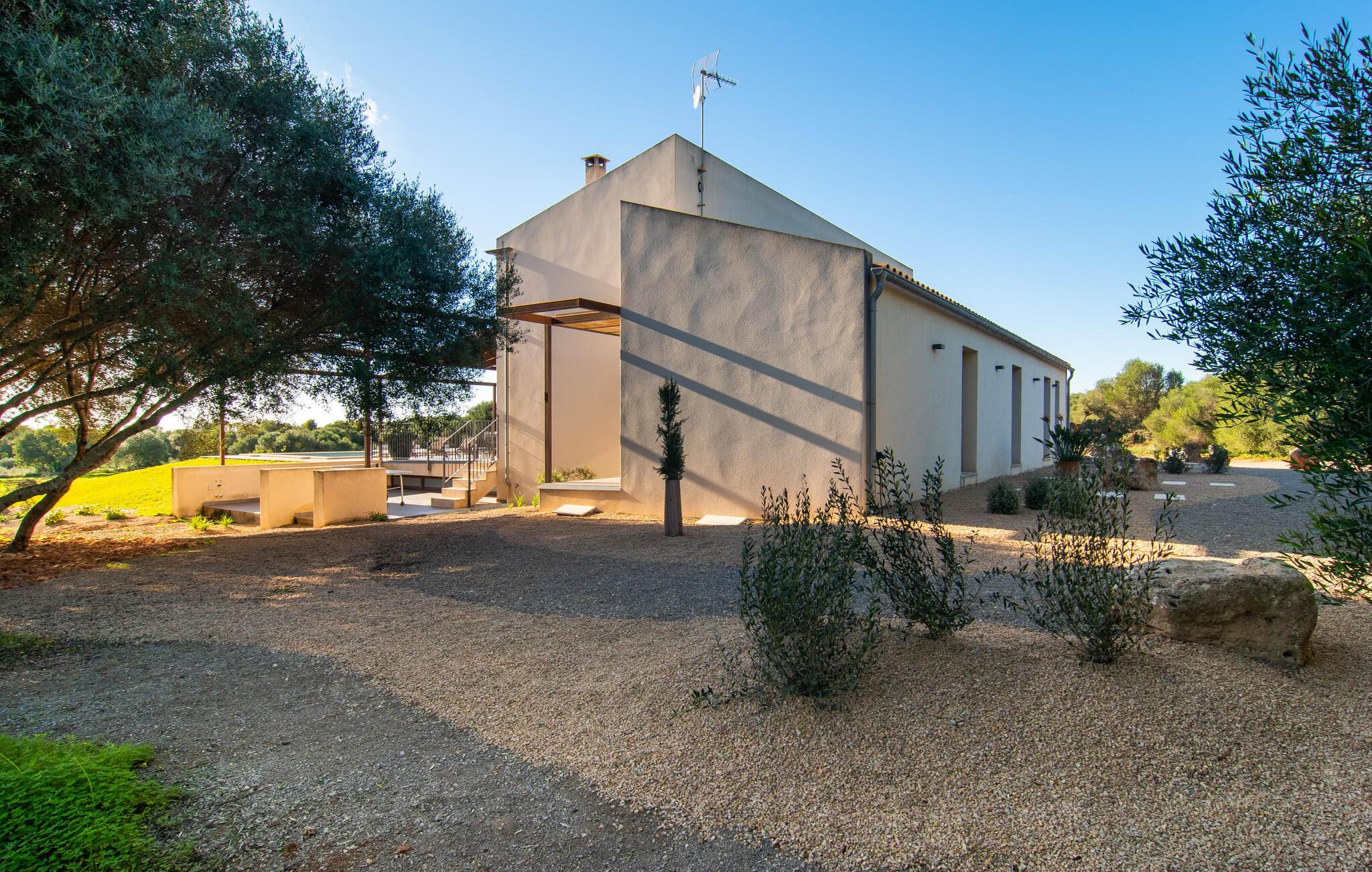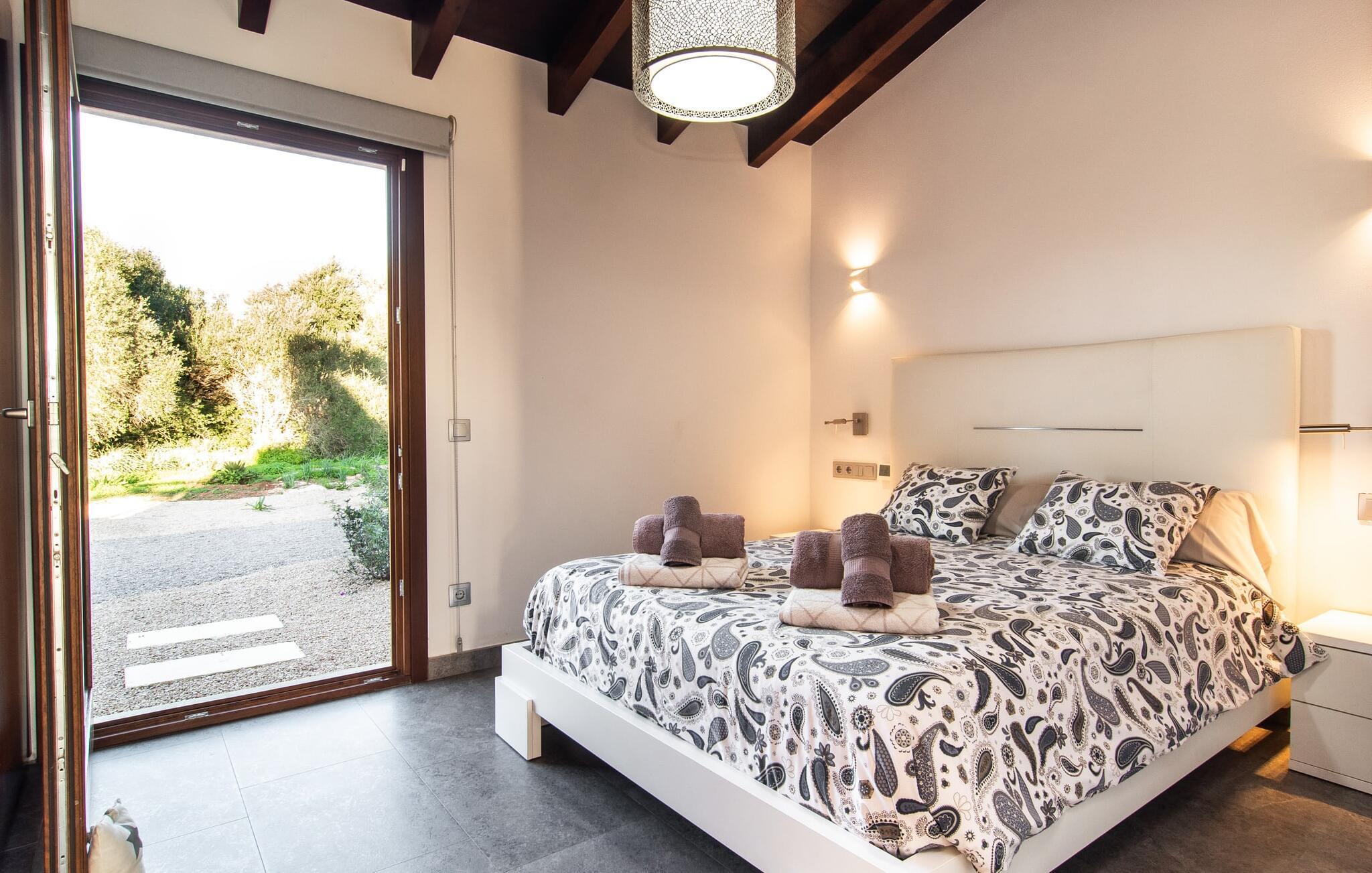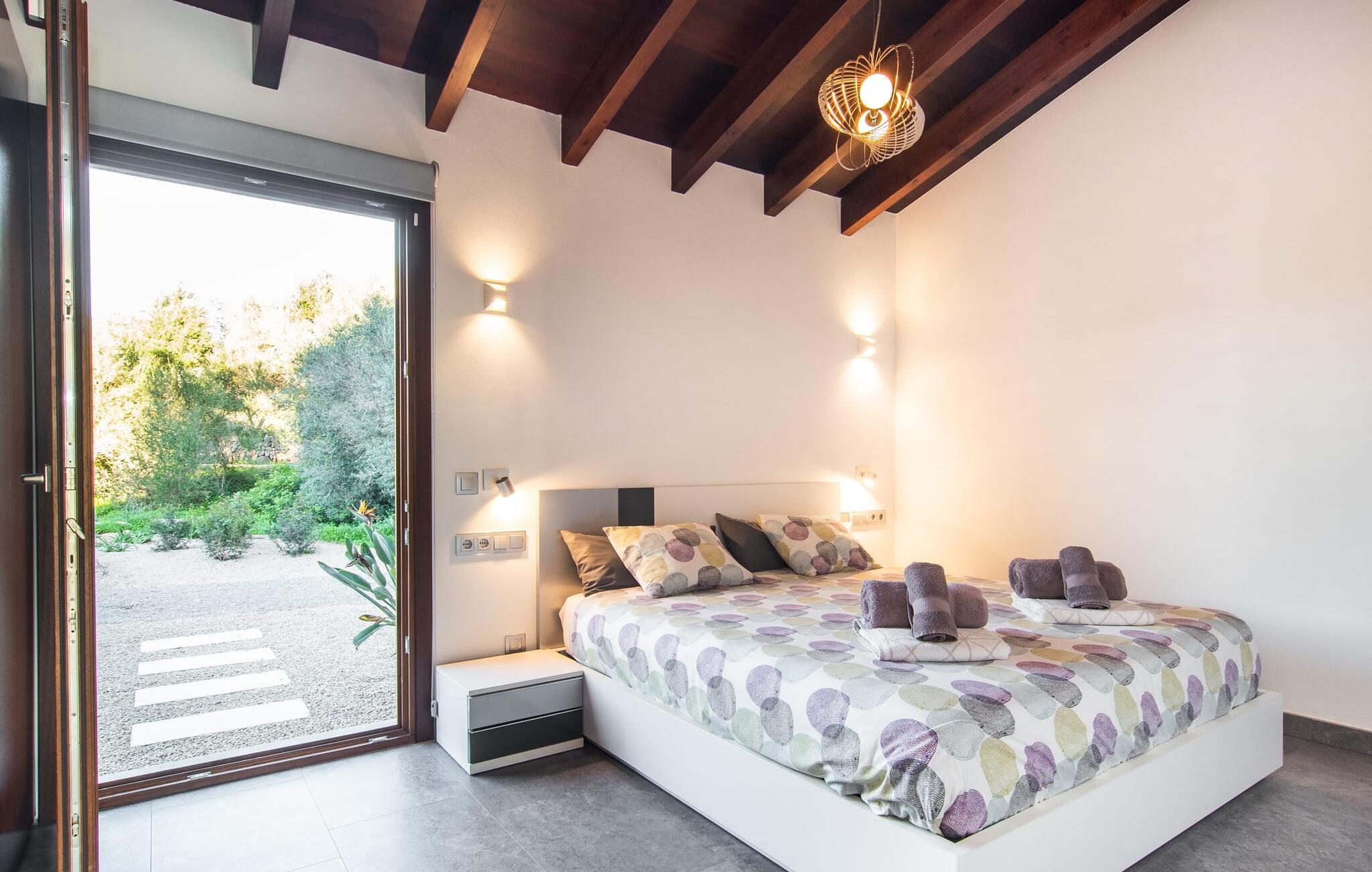 Can Maimo Nou ligger sør på Mallorca, og er det perfekte valget for alle som drømmer om en moderne finca på Mallorca som byr på både komfort og ro. Dette stilfulle huset ligger på en stor, grønn tomt uten direkte naboer, noe som sikrer et fredelig tilfluktssted. Fincaen har plass til opptil åtte gjester. Den romslige, delvis overbygde terrassen innbyr til soling eller avslapping i skyggen. Bassenget, som er synlig fra de komfortable solsengene, er spesielt godt egnet for barnefamilier. Bordtennisbordet byr på timevis med moro for gjester i alle aldre. Det er også rikelig med parkeringsplasser for leiebilen din.