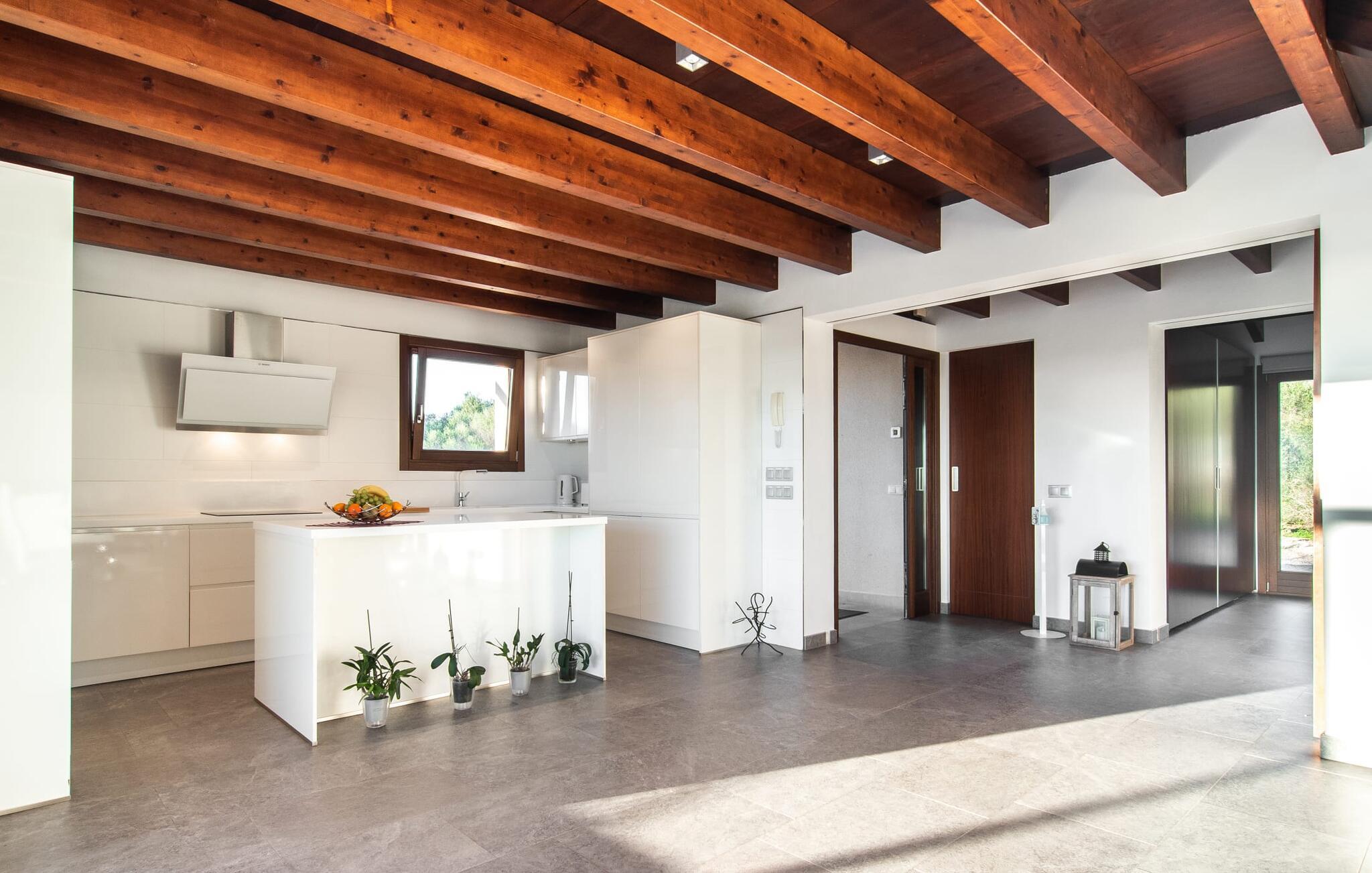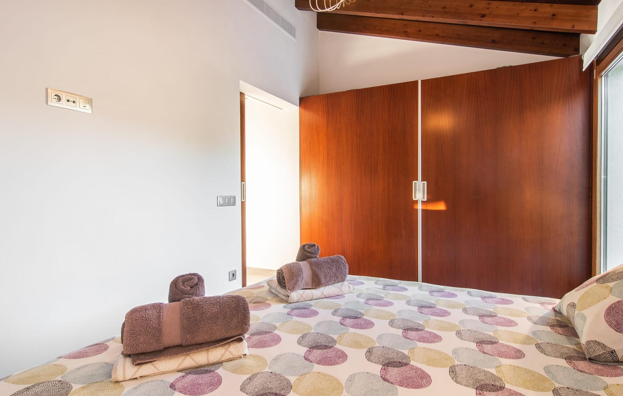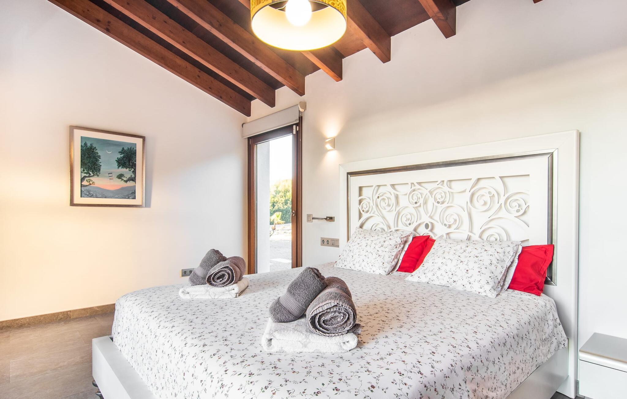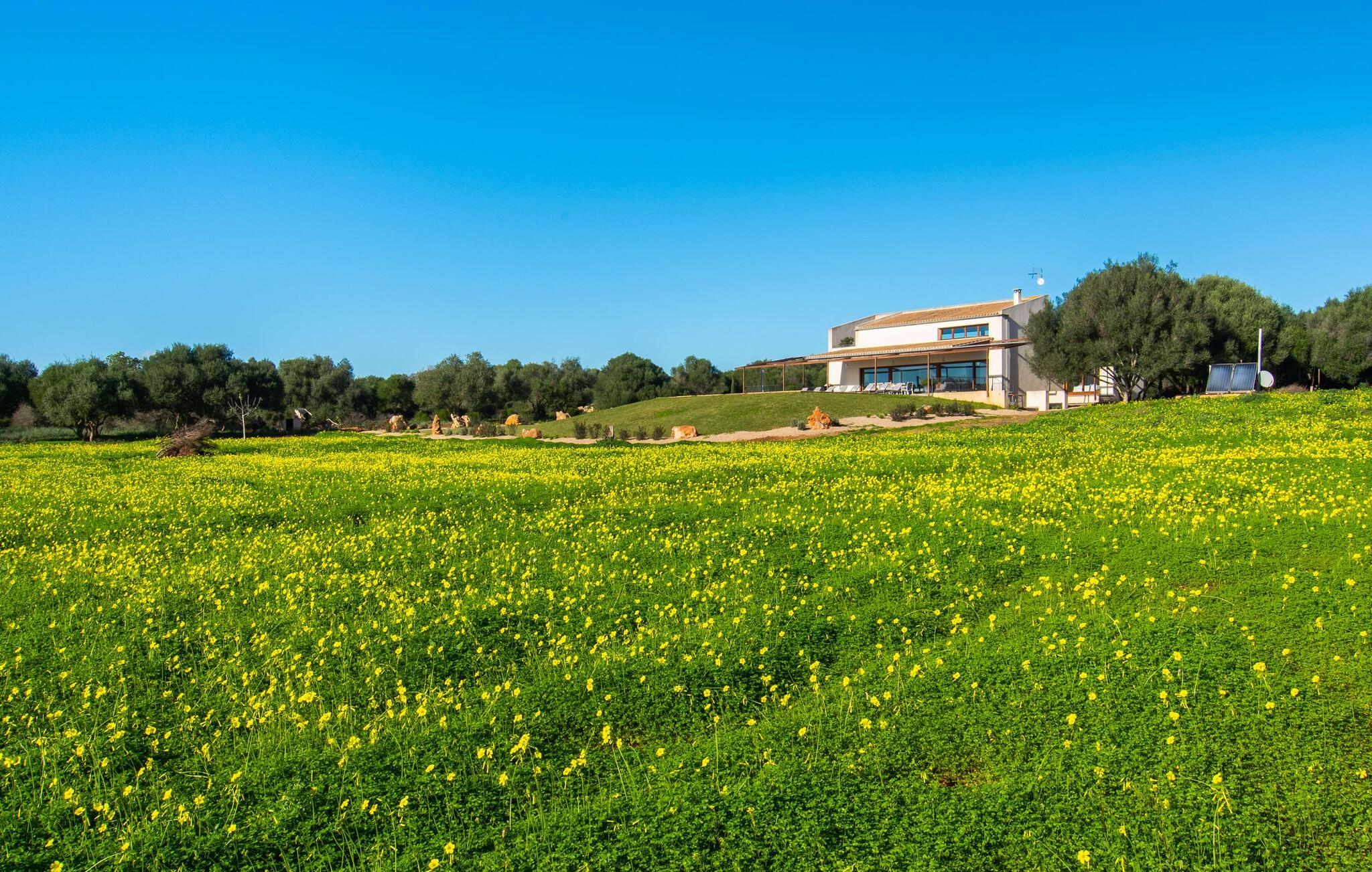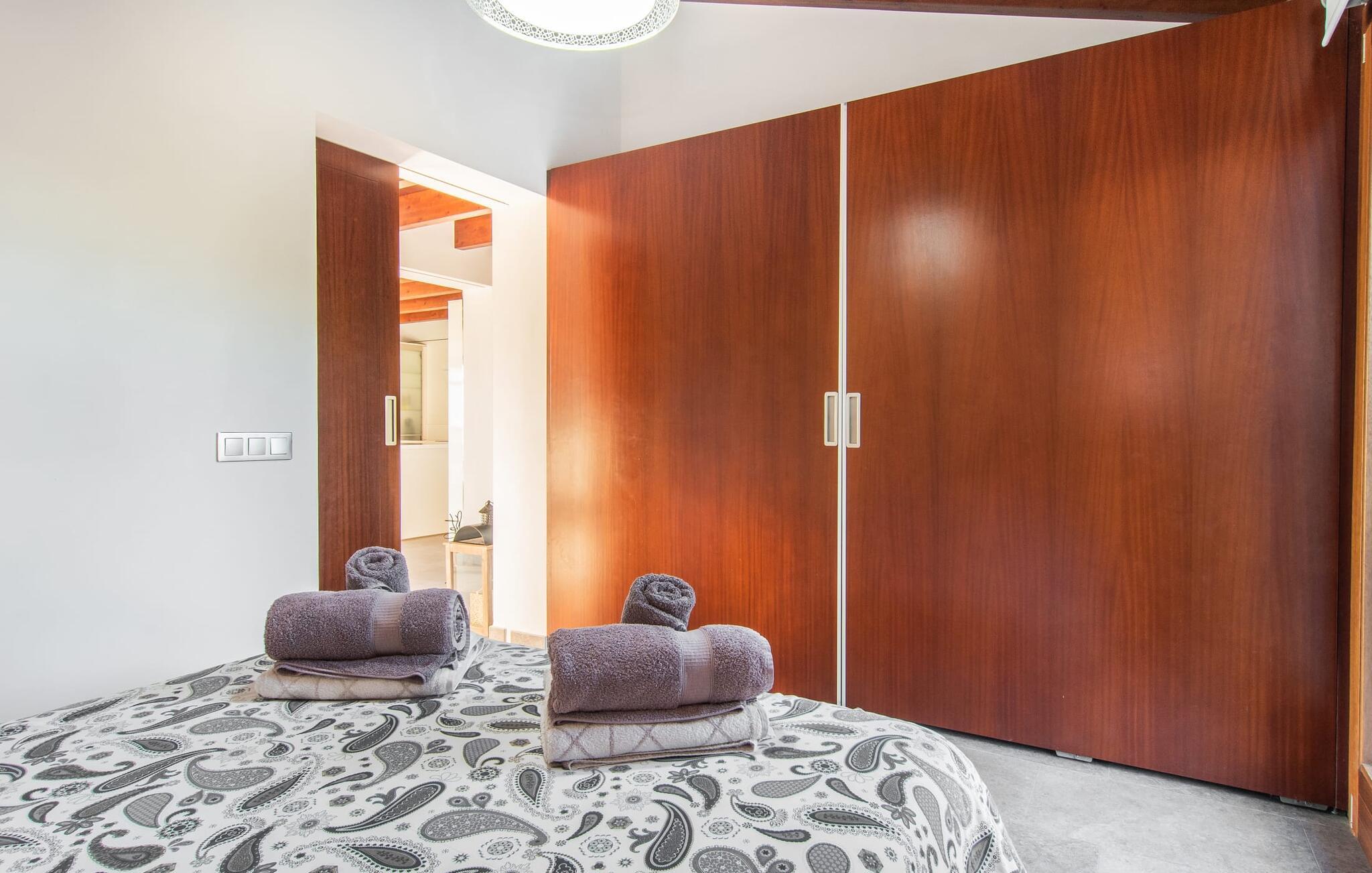 Can Maimo Nou ligger sør på Mallorca, og er det perfekte valget for alle som drømmer om en moderne finca på Mallorca som byr på både komfort og ro. Dette stilfulle huset ligger på en stor, grønn tomt uten direkte naboer, noe som sikrer et fredelig tilfluktssted. Fincaen har plass til opptil åtte gjester. Den romslige, delvis overbygde terrassen innbyr til soling eller avslapping i skyggen. Bassenget, som er synlig fra de komfortable solsengene, er spesielt godt egnet for barnefamilier. Bordtennisbordet byr på timevis med moro for gjester i alle aldre. Det er også rikelig med parkeringsplasser for leiebilen din.