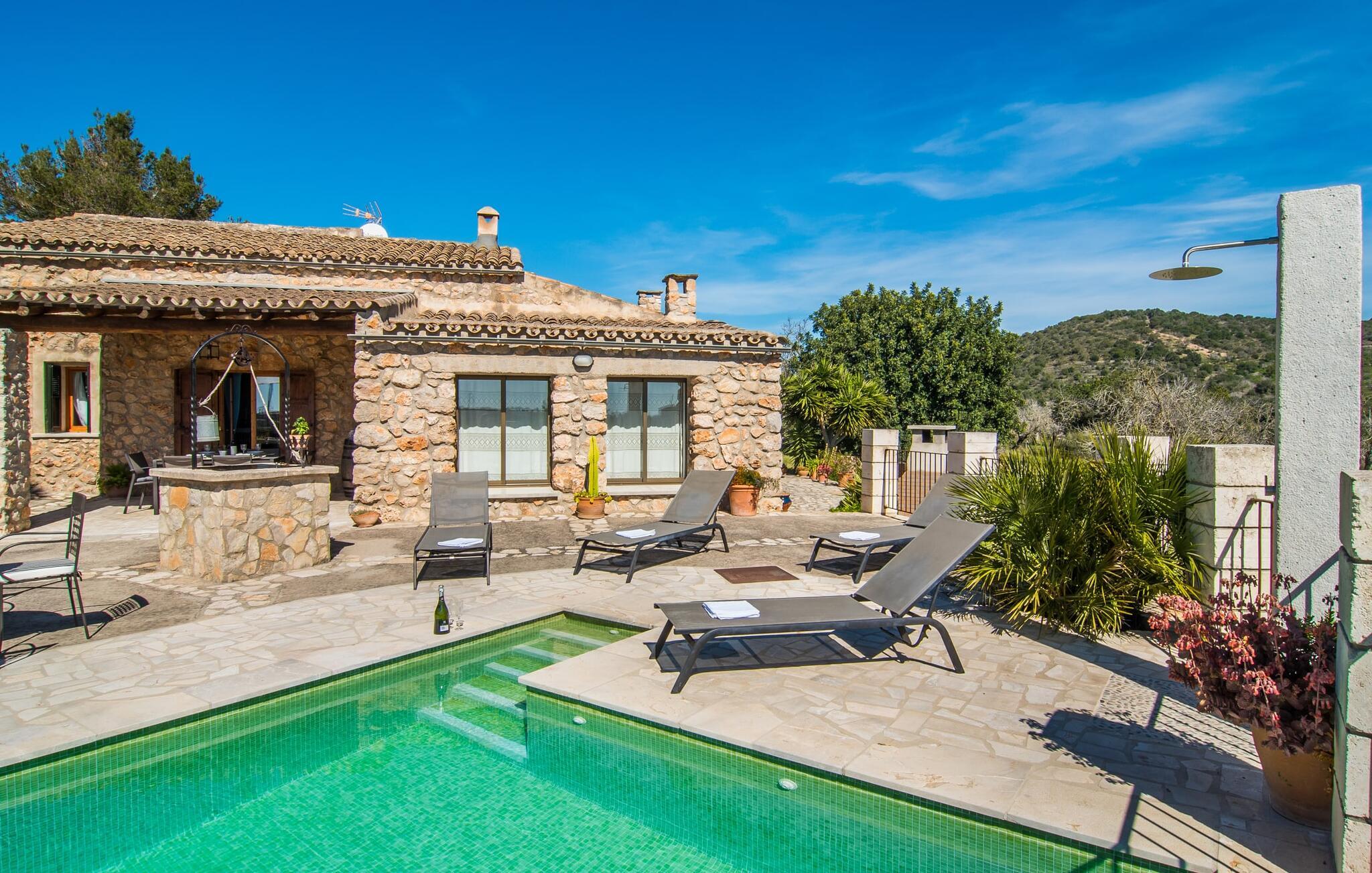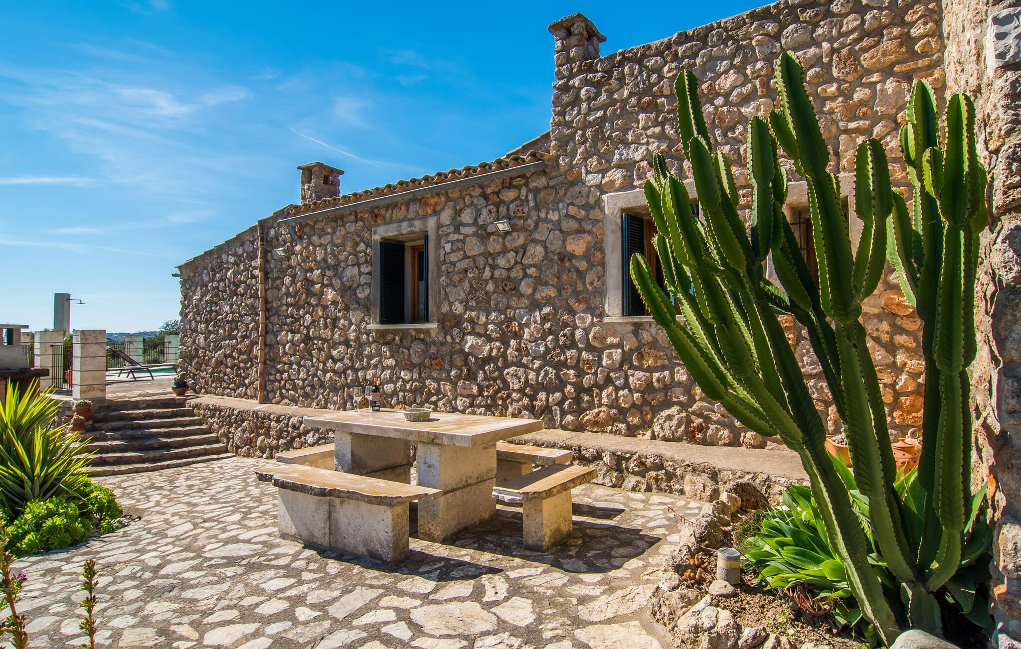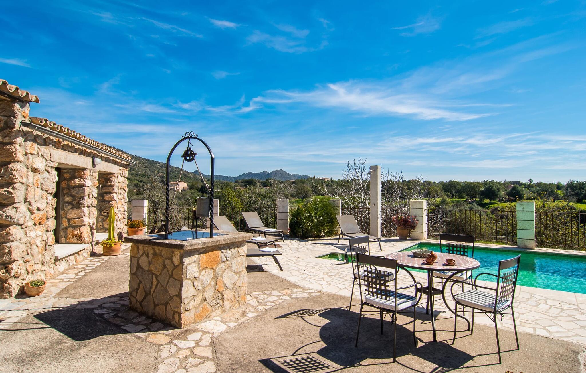 Villaen "Can Matxet" er et perfekt eksempel på et mallorkinsk feriehus som kombinerer autentisk sjarm med moderne komfort. Villaen ligger på en svakt skrånende tomt, omgitt av en lav ås, og byr på fantastisk utsikt fra de mange uteserveringene.