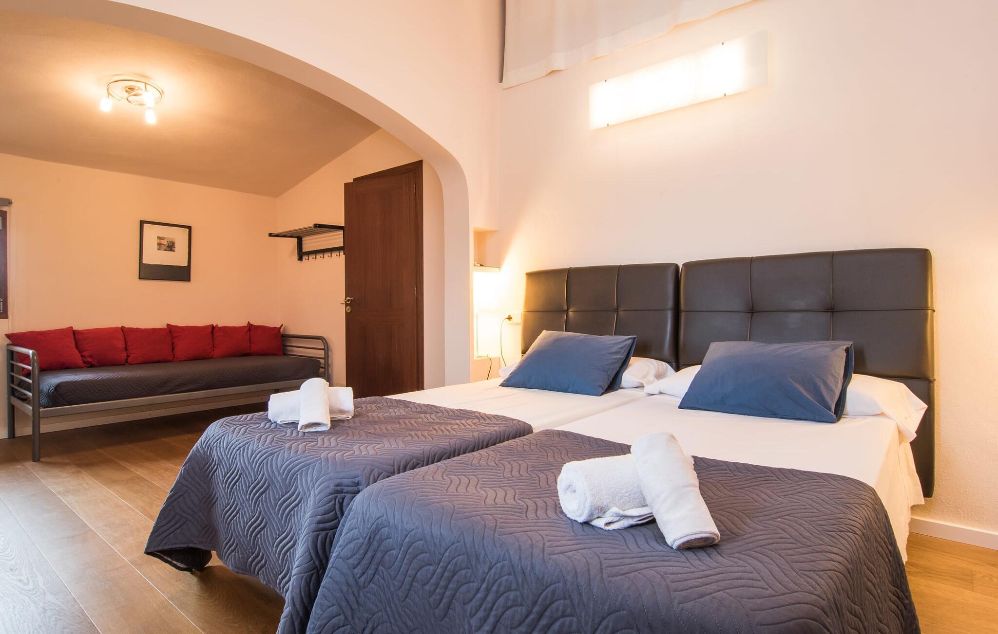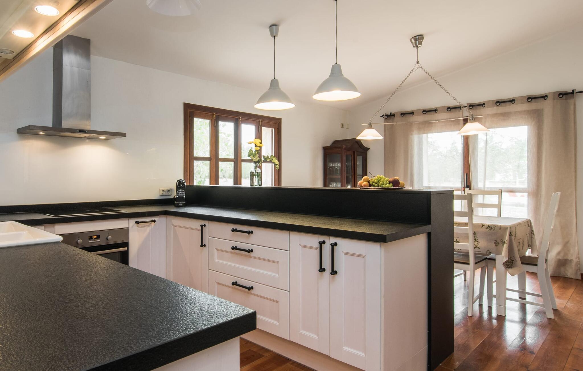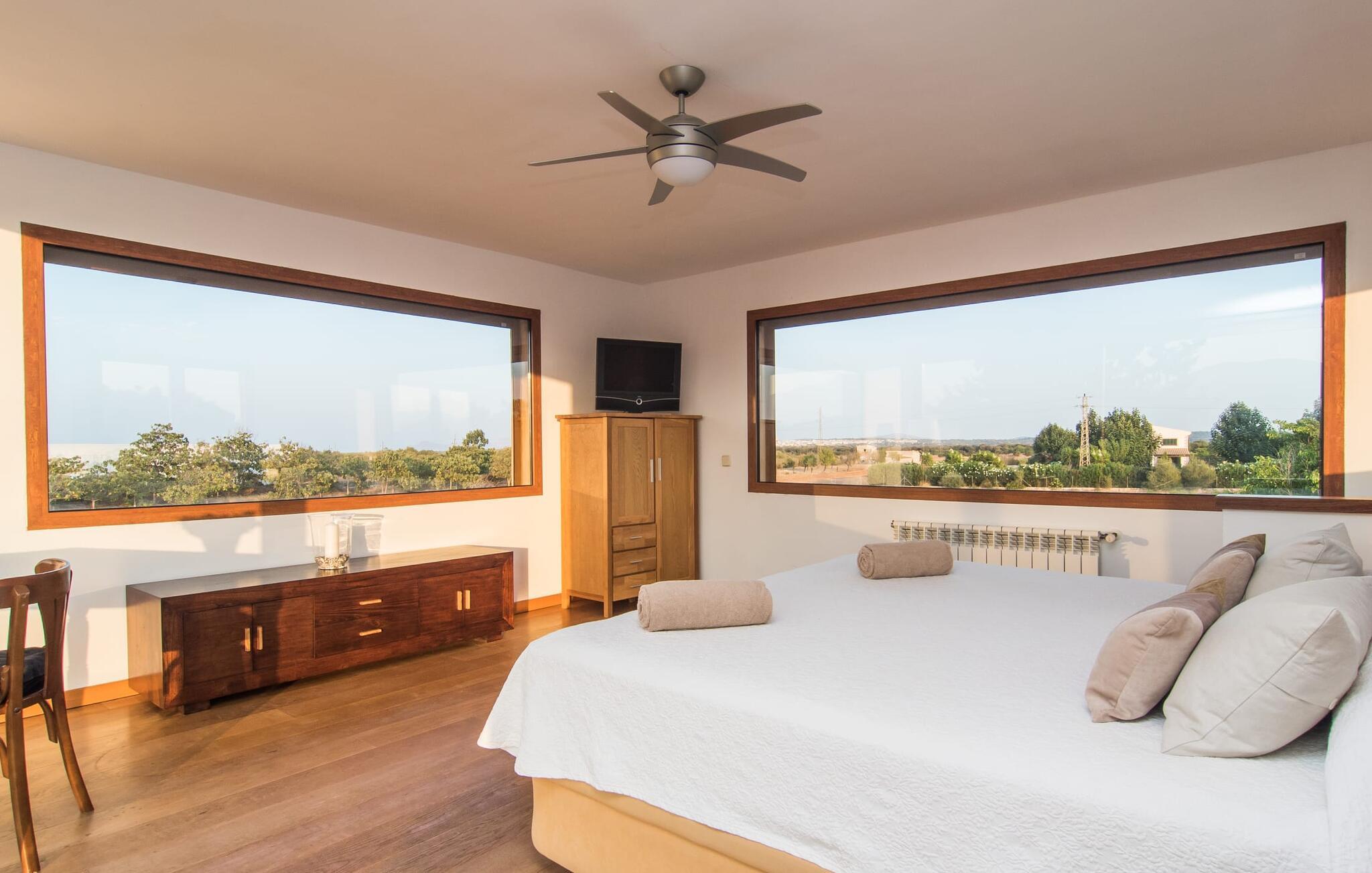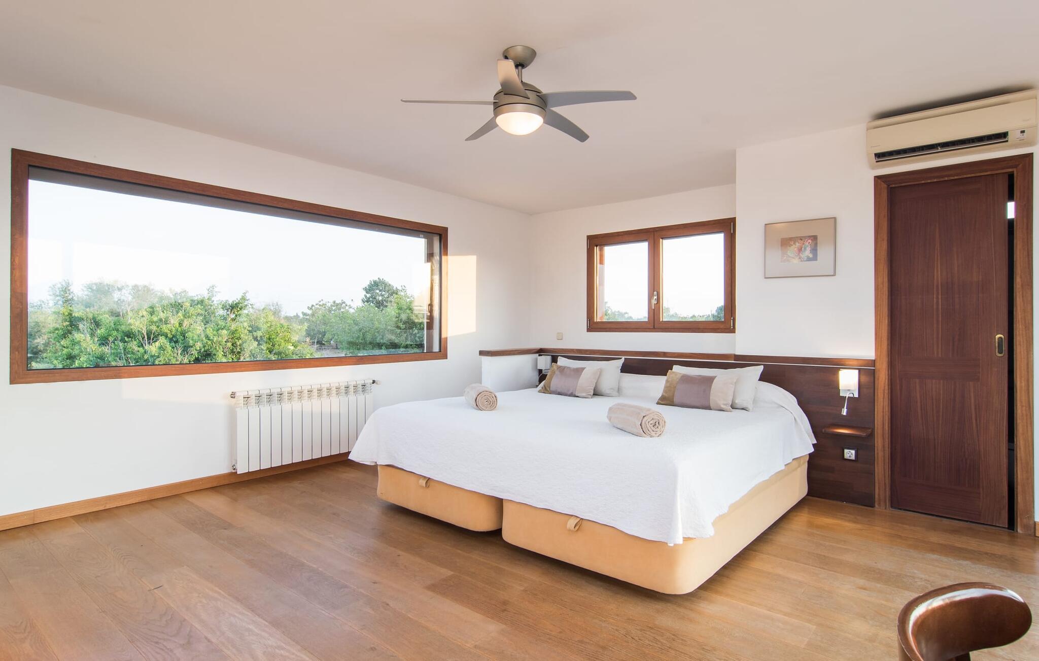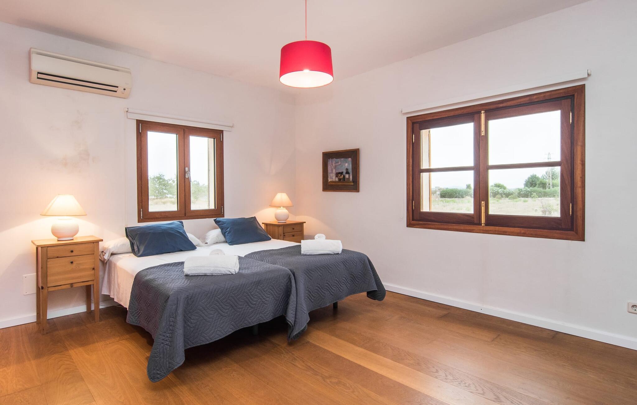 Interiøret i huset er veldig koselig. Romslig stue med peis, fullt utstyrt kjøkken med store vinduer for å nyte utsikten. I første etasje er det også fire soverom og to bad, hvorav det ene har eget bad, samt et praktisk gjestetoalett. Veldig uvanlig: det øverste soverommet med dobbeltseng (også med eget bad) har panoramautsikt takket være XL-vinduene. Terrassen i første etasje har en fantastisk utsikt over landskapet og fjellene. Nyt oppholdet ditt på Can Mel-gården.