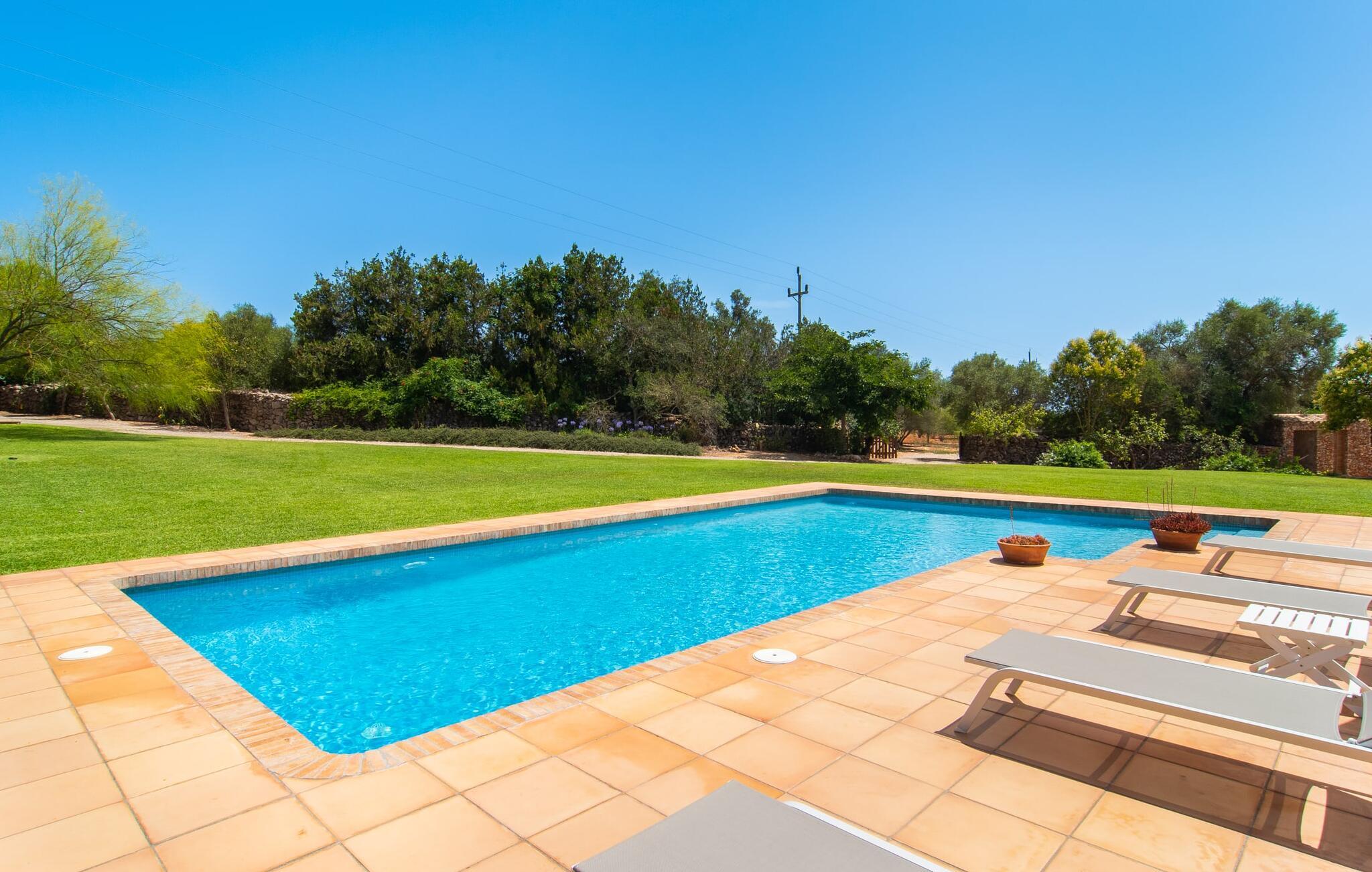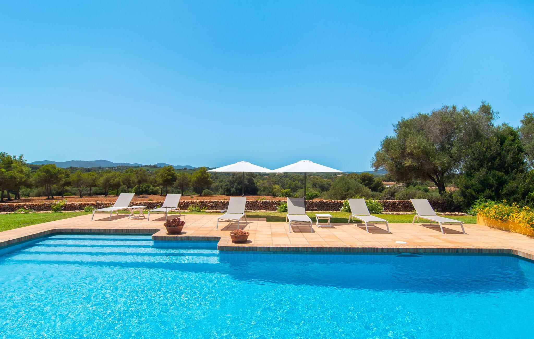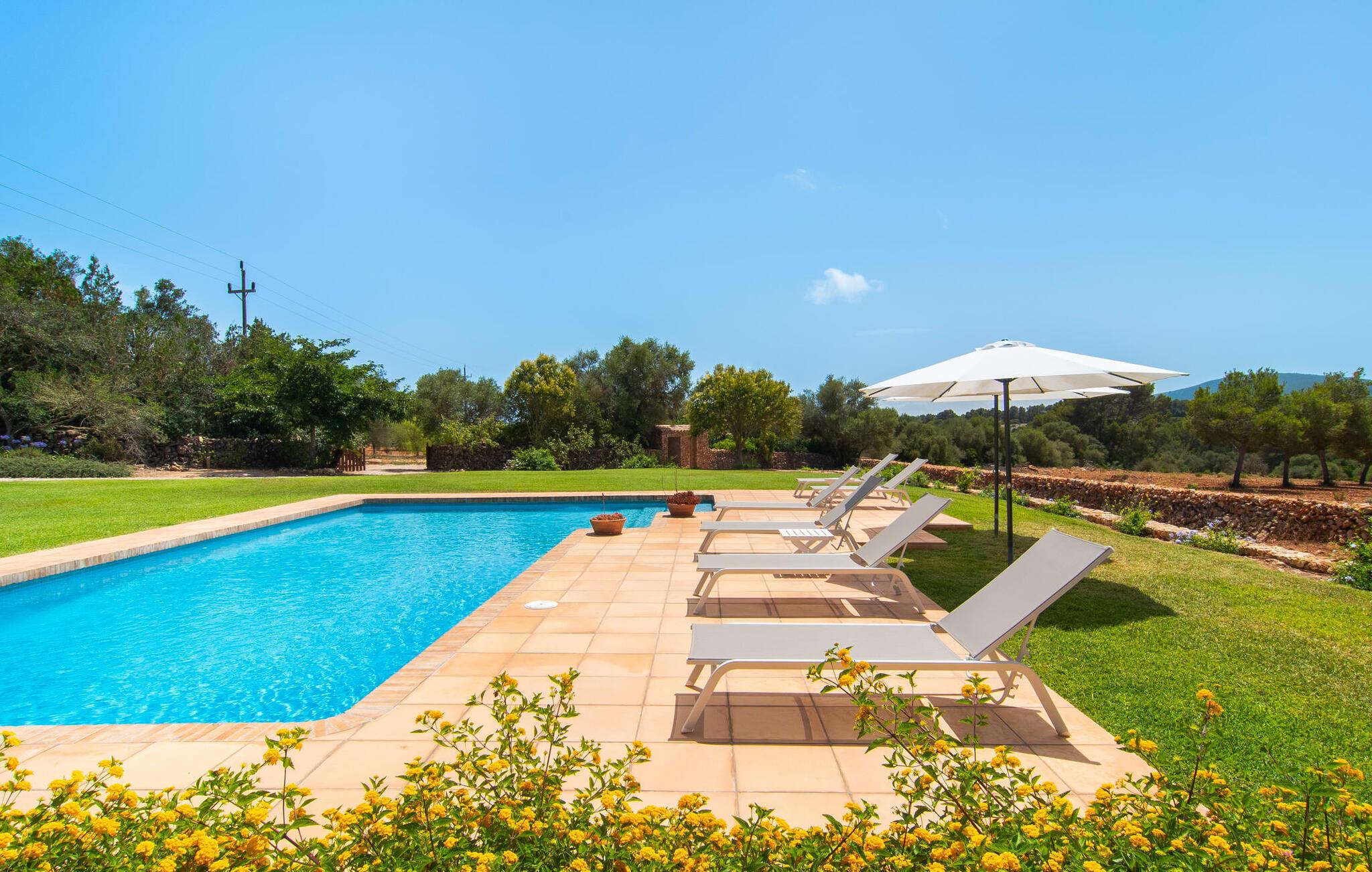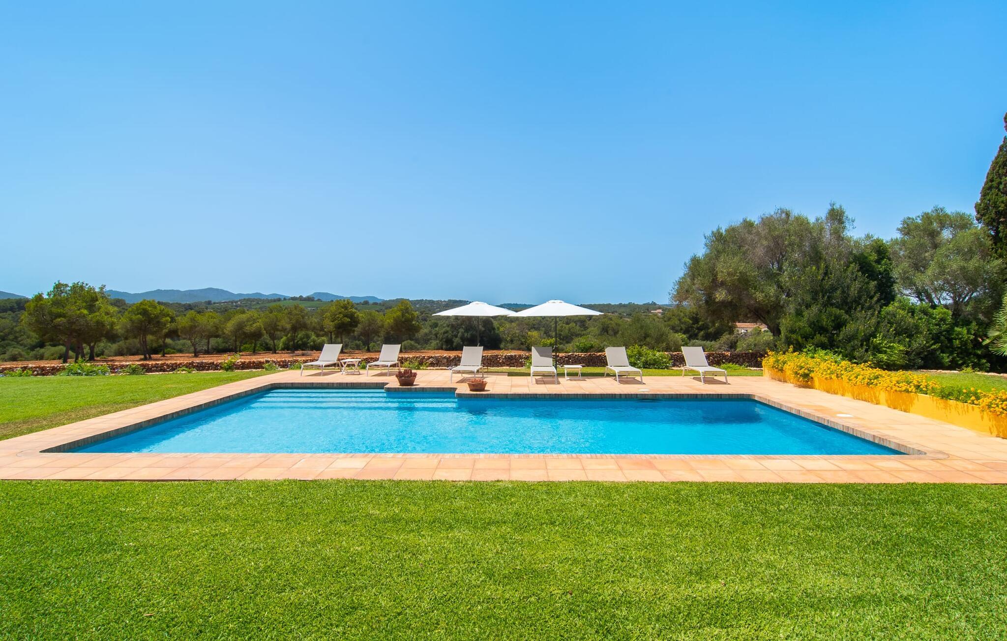 Feriefincaen Cuaquis er omgitt av en velholdt hage med mye plen nær østkysten av Mallorca. Fra bassenget og solterrassen kan du nyte en befriende utsikt over de bølgende åsene i Serra de Llevant. Det grunne bassenget er lett tilgjengelig via en bred trapp. Flere sittegrupper med naturlig skygge er tilgjengelig for uteservering. Du kan tilberede måltider på den mobile grillen og spille bordtennis. Den vennlige og diskrete eieren bor også på den 15 000 m2 store eiendommen. Privatlivets fred har høyeste prioritet her, men det er alltid en stor fordel å ha en kontaktperson på ferie på Mallorca. Vårt Fincallorca-team er selvfølgelig også der for deg.