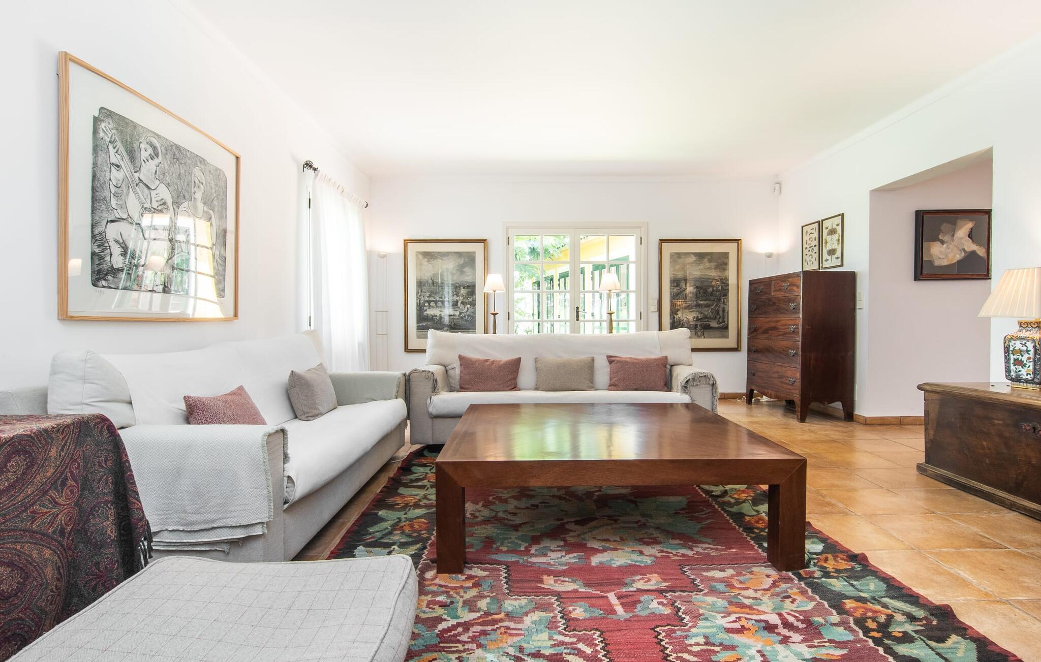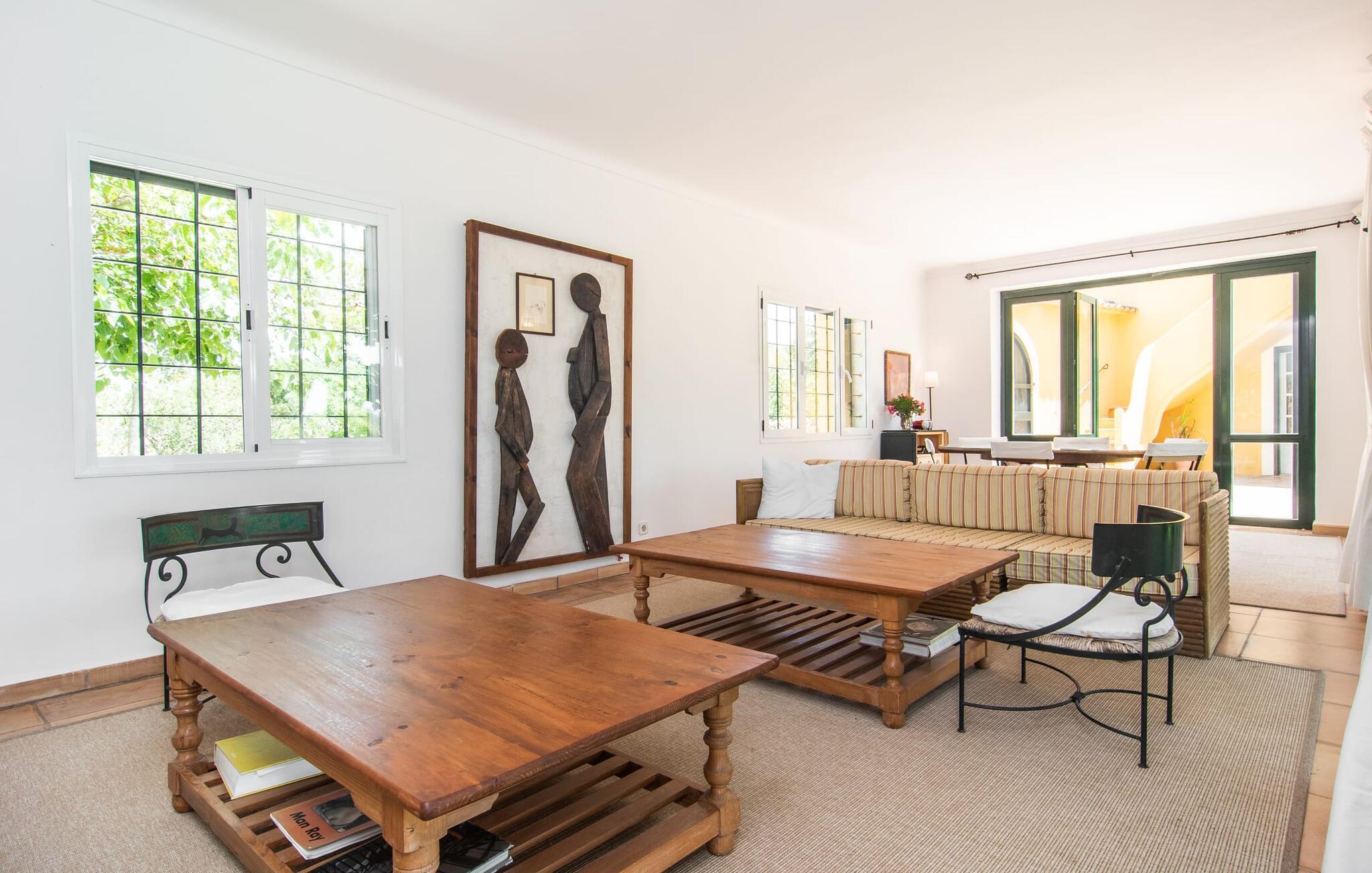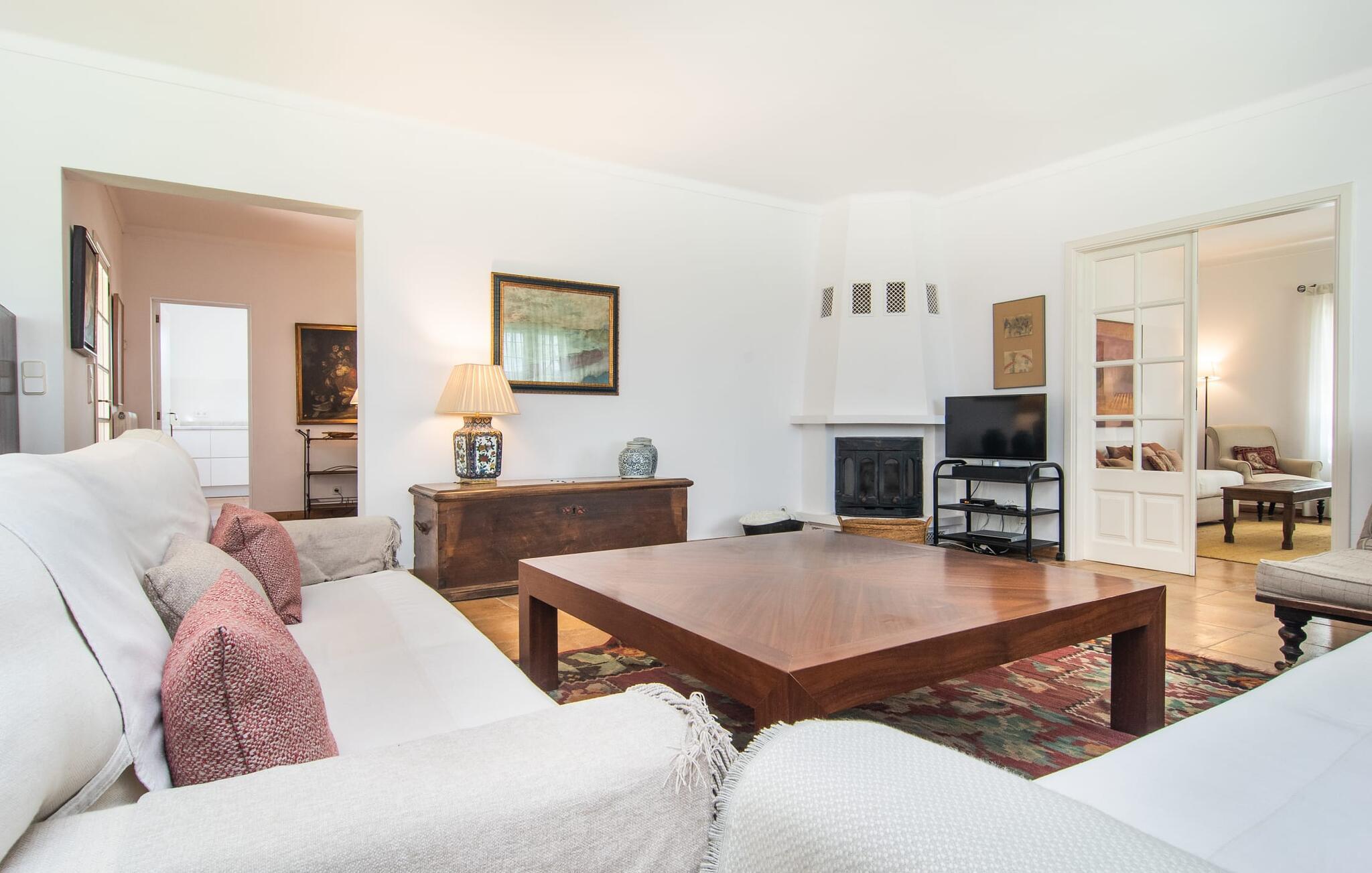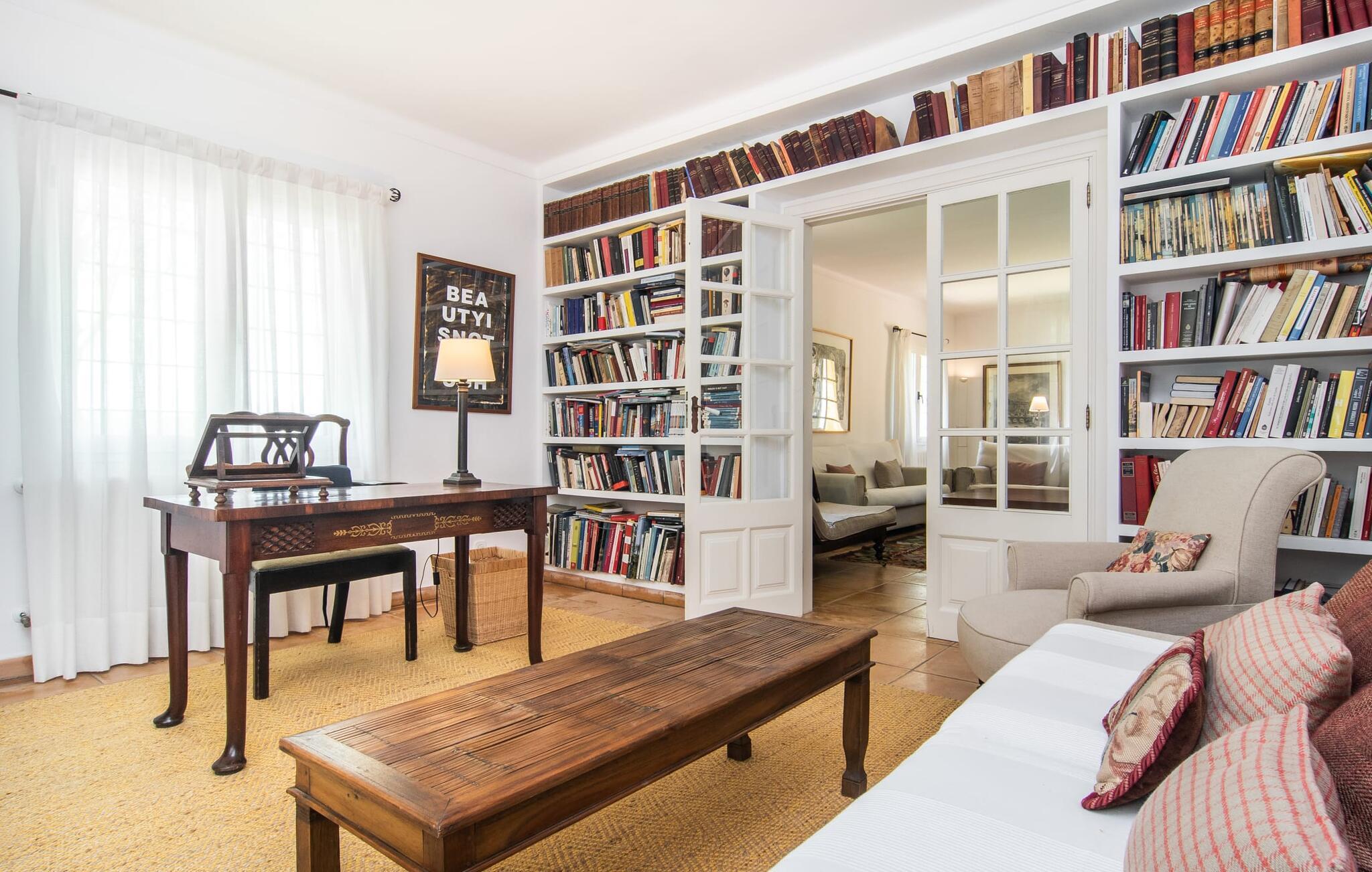 Innvendig finner du romslige, klassisk designede rom med møbler av høy kvalitet. Hovedoppholdsrommet ligger i første etasje. Her finner du en stor, lys stue med peis, et moderne, fullt utstyrt kjøkken, en spisestue og to doble soverom med eget bad. Det er også et koselig bibliotek, adskilt fra stuen med et fransk vindu, hvor du kan jobbe komfortabelt på hjemmekontoret hvis det er nødvendig. Ved siden av hovedhuset er det et annet vakkert oppholdsrom. Takket være brede glassdører kan den enkelt kobles til uteområdet. En utvendig trapp fører til det tredje soverommet med dobbeltseng, som også har eget bad. Alle tre soveområdene har for øvrig klimaanlegg. Oppvarmingen i hele huset sørger for en behagelig ferie også utenom sesongen.