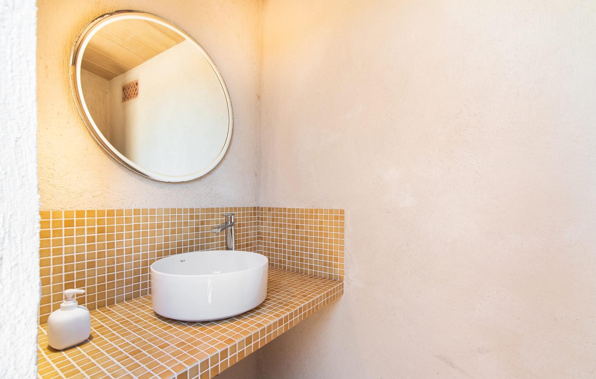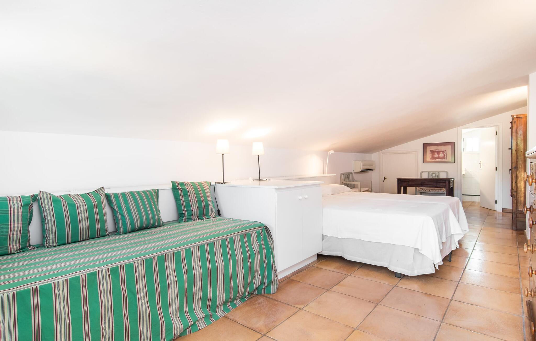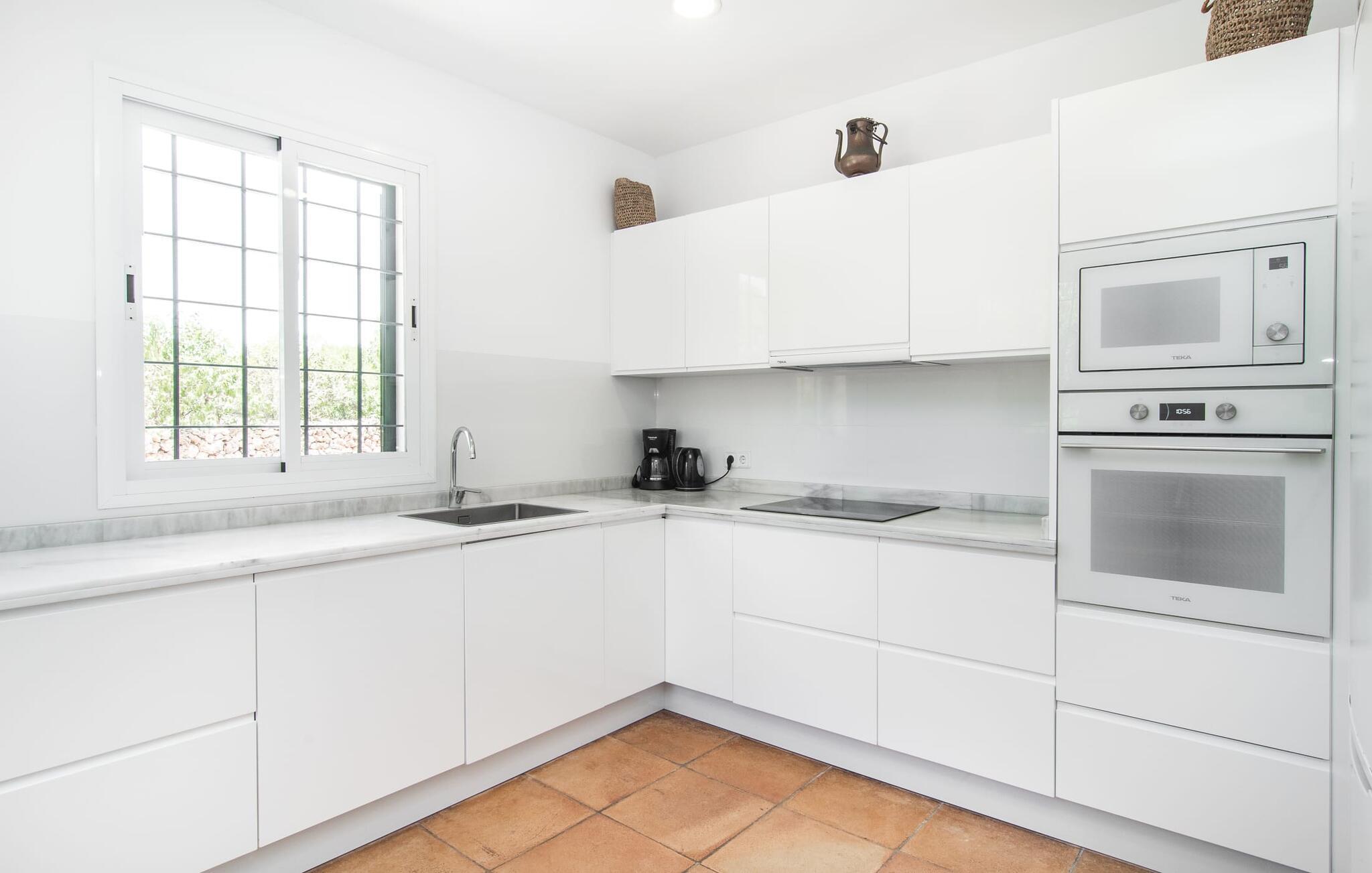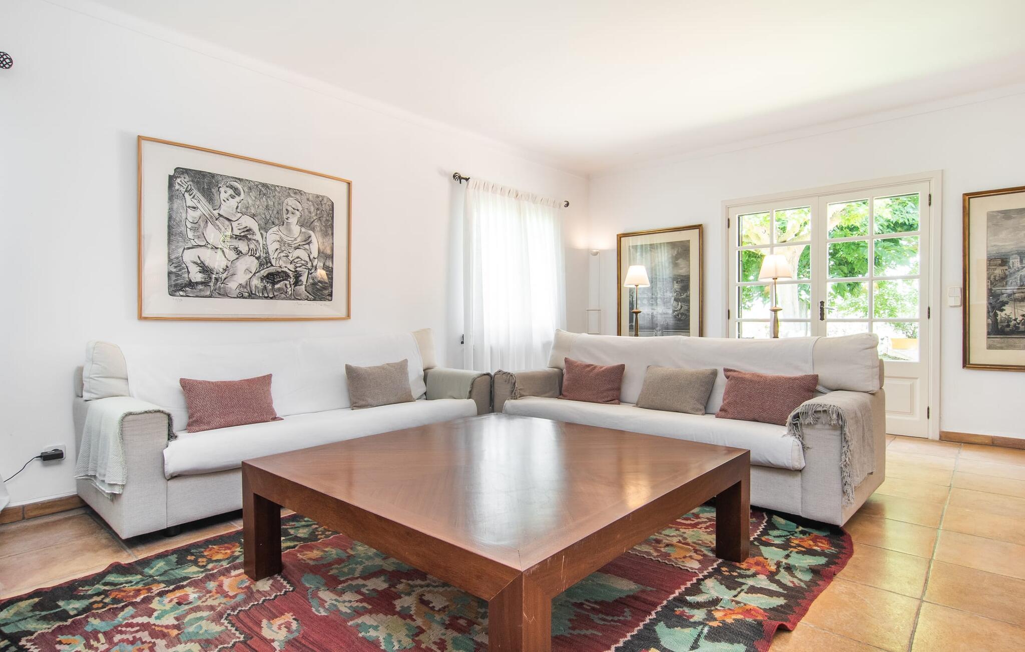 Innvendig finner du romslige, klassisk designede rom med møbler av høy kvalitet. Hovedoppholdsrommet ligger i første etasje. Her finner du en stor, lys stue med peis, et moderne, fullt utstyrt kjøkken, en spisestue og to doble soverom med eget bad. Det er også et koselig bibliotek, adskilt fra stuen med et fransk vindu, hvor du kan jobbe komfortabelt på hjemmekontoret hvis det er nødvendig. Ved siden av hovedhuset er det et annet vakkert oppholdsrom. Takket være brede glassdører kan den enkelt kobles til uteområdet. En utvendig trapp fører til det tredje soverommet med dobbeltseng, som også har eget bad. Alle tre soveområdene har for øvrig klimaanlegg. Oppvarmingen i hele huset sørger for en behagelig ferie også utenom sesongen.