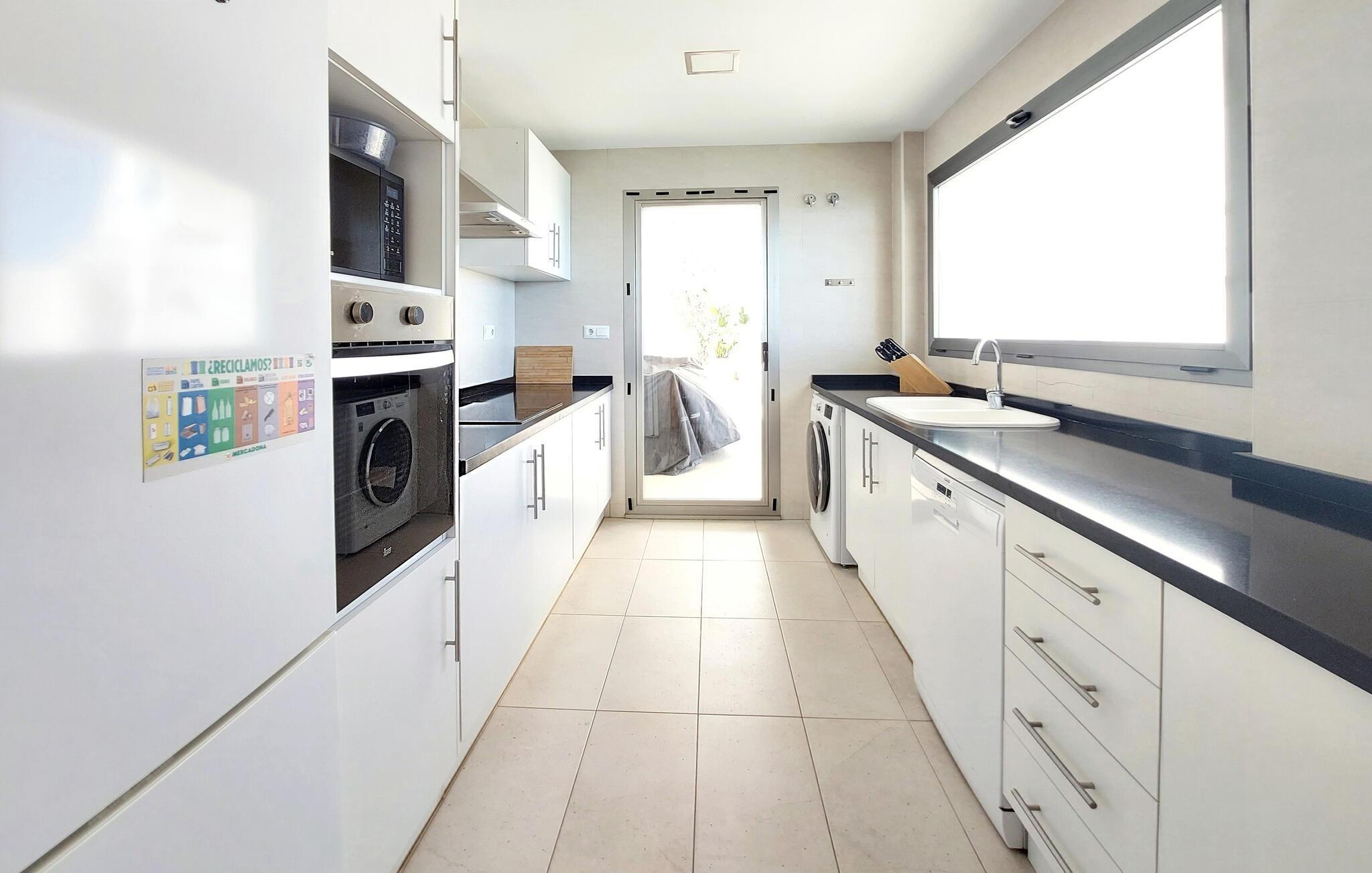 Utenfor venter en romslig terrasse med utekjøkken, hage og et fantastisk evighetsbasseng - det perfekte stedet for å nyte solen og middelhavsstilen.