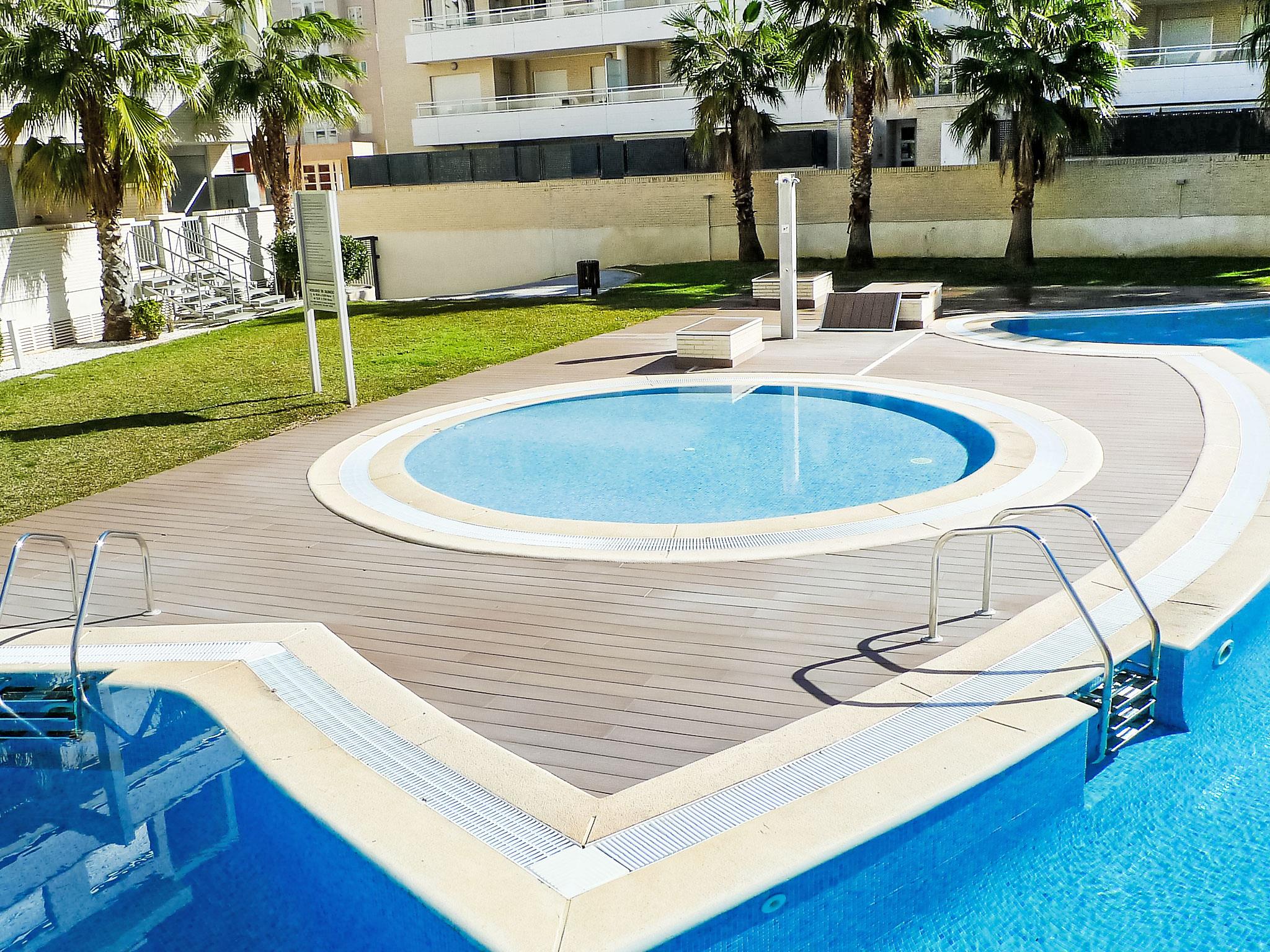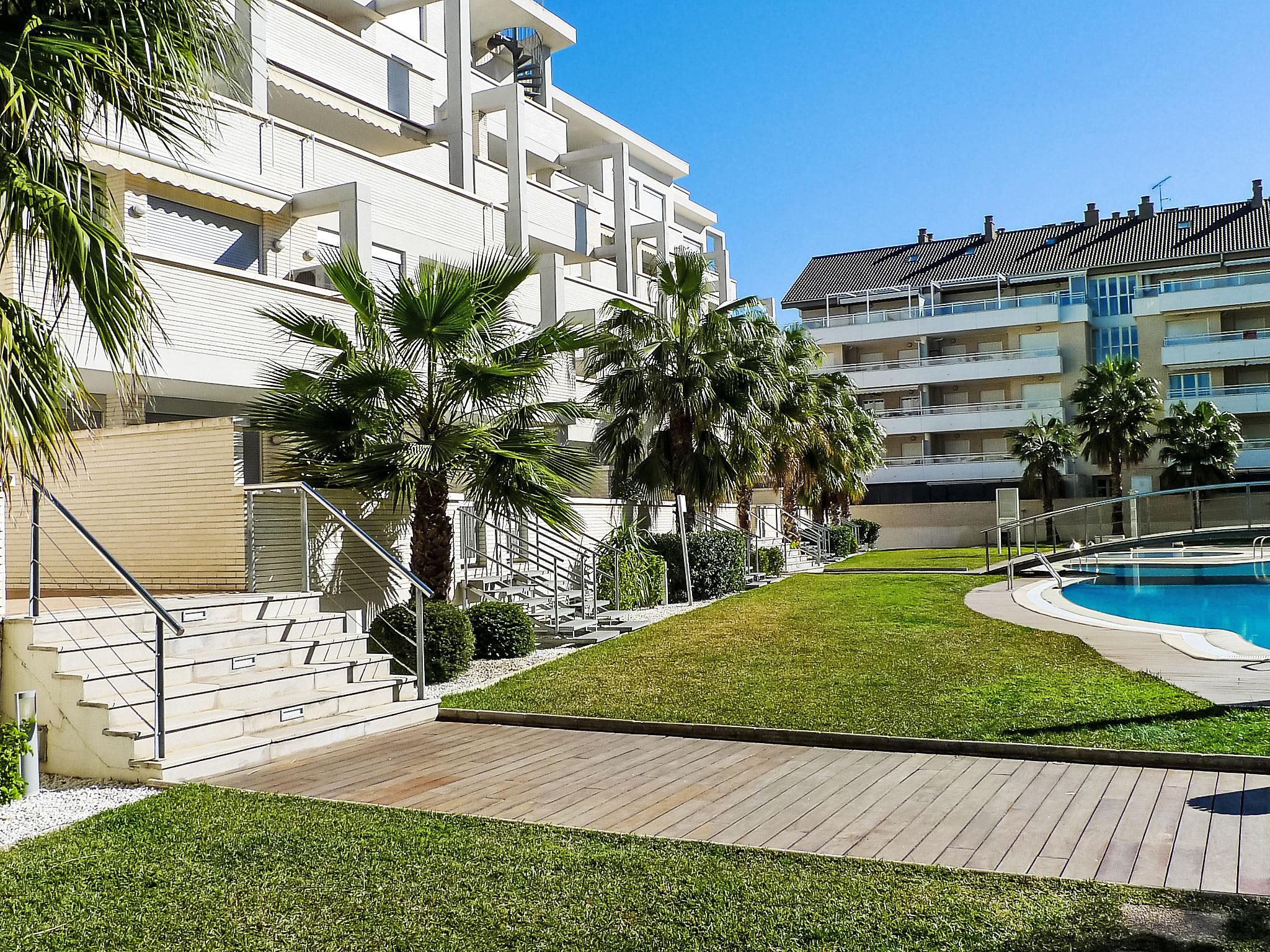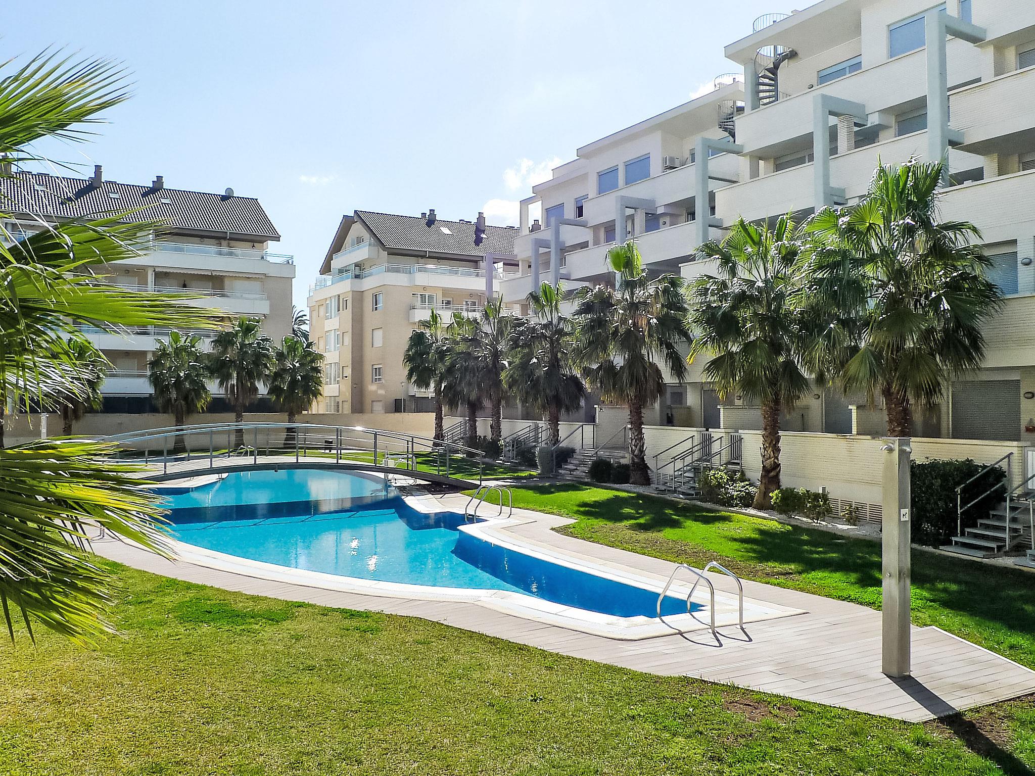 Large apartment block "Elegance", 4 storeys, built in 2006. On the outskirts, 700 m from the centre of Dénia, 500 m from the sea. For shared use: garden with lawn, swimming pool (40 x 12 m, depth 40 - 210 cm, seasonal availability: 01.Jan. - 31.Dec.) with internal staircase. Children's pool, outdoor shower. In the complex: sauna, fitness room, playroom, lift (for shared use). Stepped path (15 steps) to the house. Parking. Shop 1 km, supermarket 1 km, bar 400 m, bus stop 400 m, sandy beach 500 m. Sports harbour 2 km, golf course (18 hole) 8 km, tennis 500 m. The owner does not accept any youth groups.