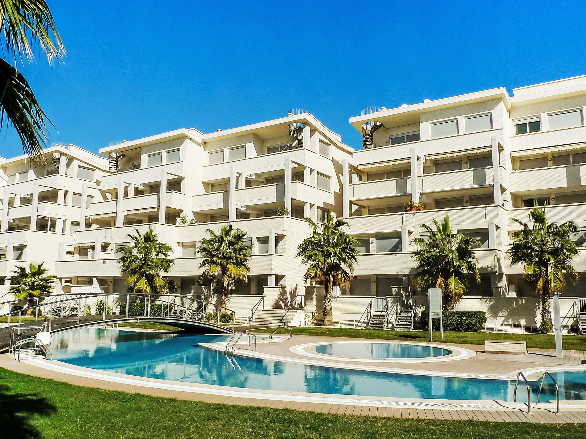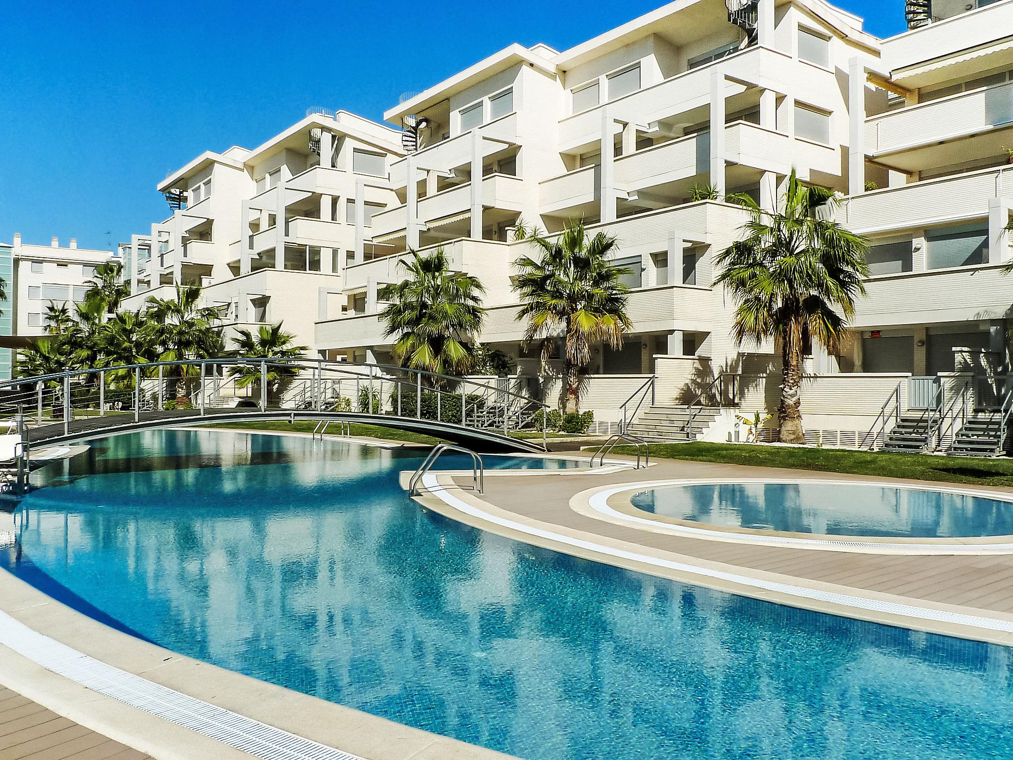 "Élegance", 3-room apartment 60 m2 on 1st floor. Living/dining room with digital TV, air conditioning and forced-air heating. Exit to the terrace. 1 room with 1 french bed (150 cm, length 200 cm), bath/WC, air conditioning and forced-air heating. 1 room with 2 beds (90 cm, length 190 cm), electric heater. Exit to the terrace. Kitchen (oven, dishwasher, microwave, freezer). Shower/WC. View of the swimming pool. Facilities: washing machine, children's high chair, baby cot. Internet (WiFi, free). Parking space n 255 (roofed). Maximum 1 pet/ dog allowed. Internet access possible in the residence. AT-458535-A // Reg. Nr.: ESFCTU00000304500077606400000000000000000AT-458535-A8