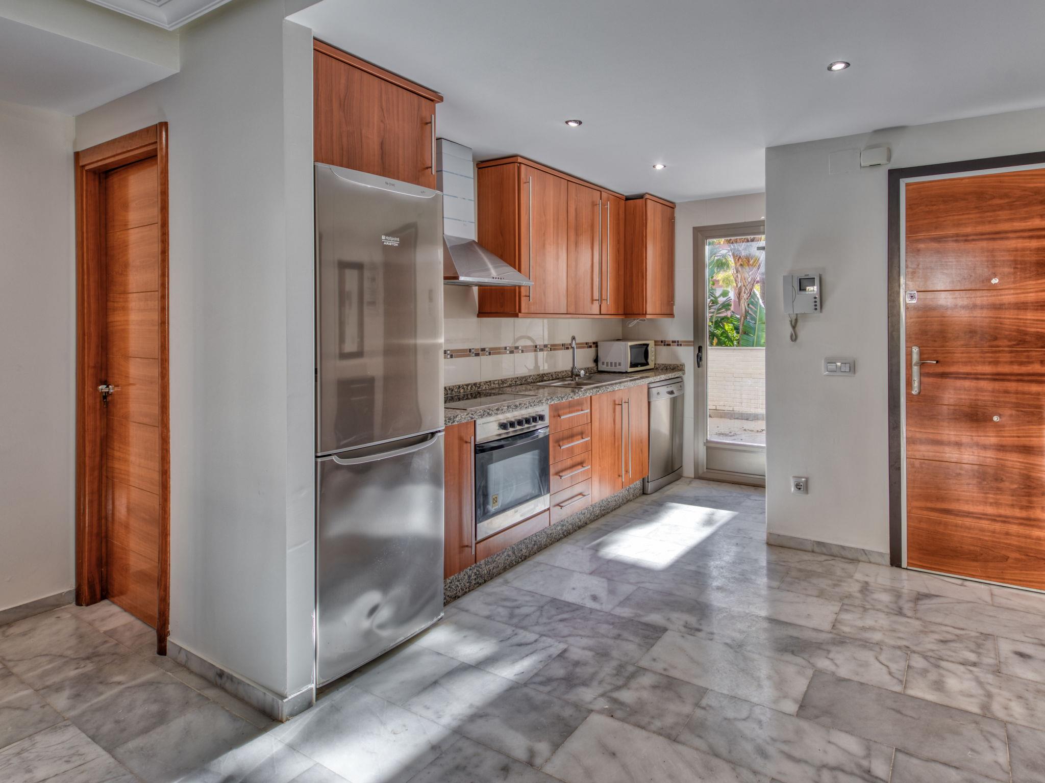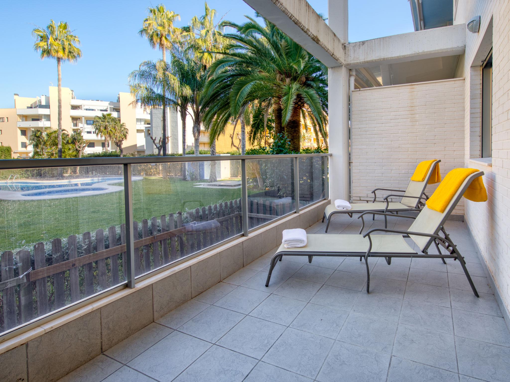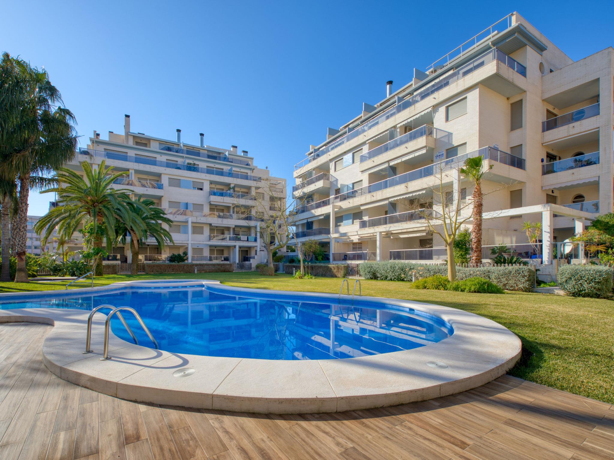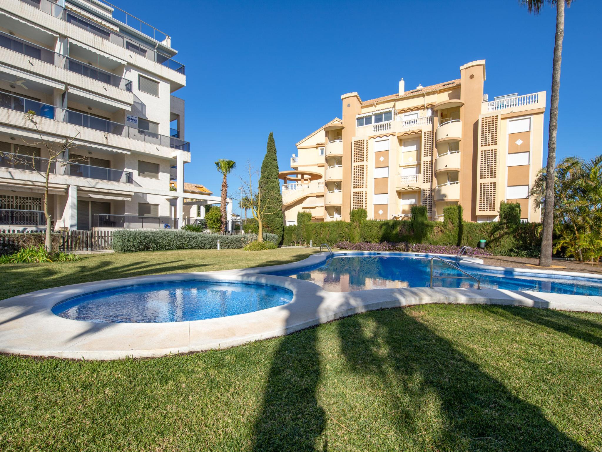 Very beautiful, cosy apartment block. In the resort 1.5 km from the centre of Dénia, 400 m from the sea, 400 m from the beach. For shared use: beautiful garden (fenced) with lawn and trees, swimming pool (seasonal availability: 01.Jan. - 31.Dec.). Outdoor shower, roofed, parking. Supermarket 550 m, restaurant, bar 170 m, bus stop 600 m, railway station 2 km, ferry 1.2 km, sandy beach 400 m. Sports harbour 1.5 km, marina 1.5 km, surf school 500 m, sailing school 600 m. The owner does not accept any youth groups.