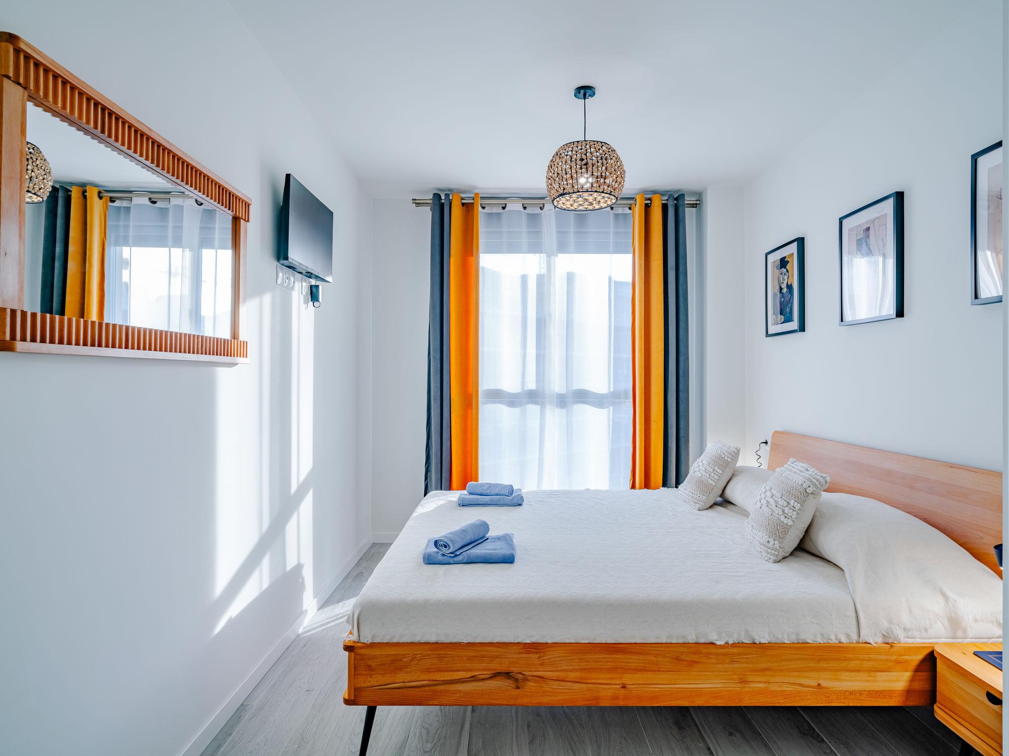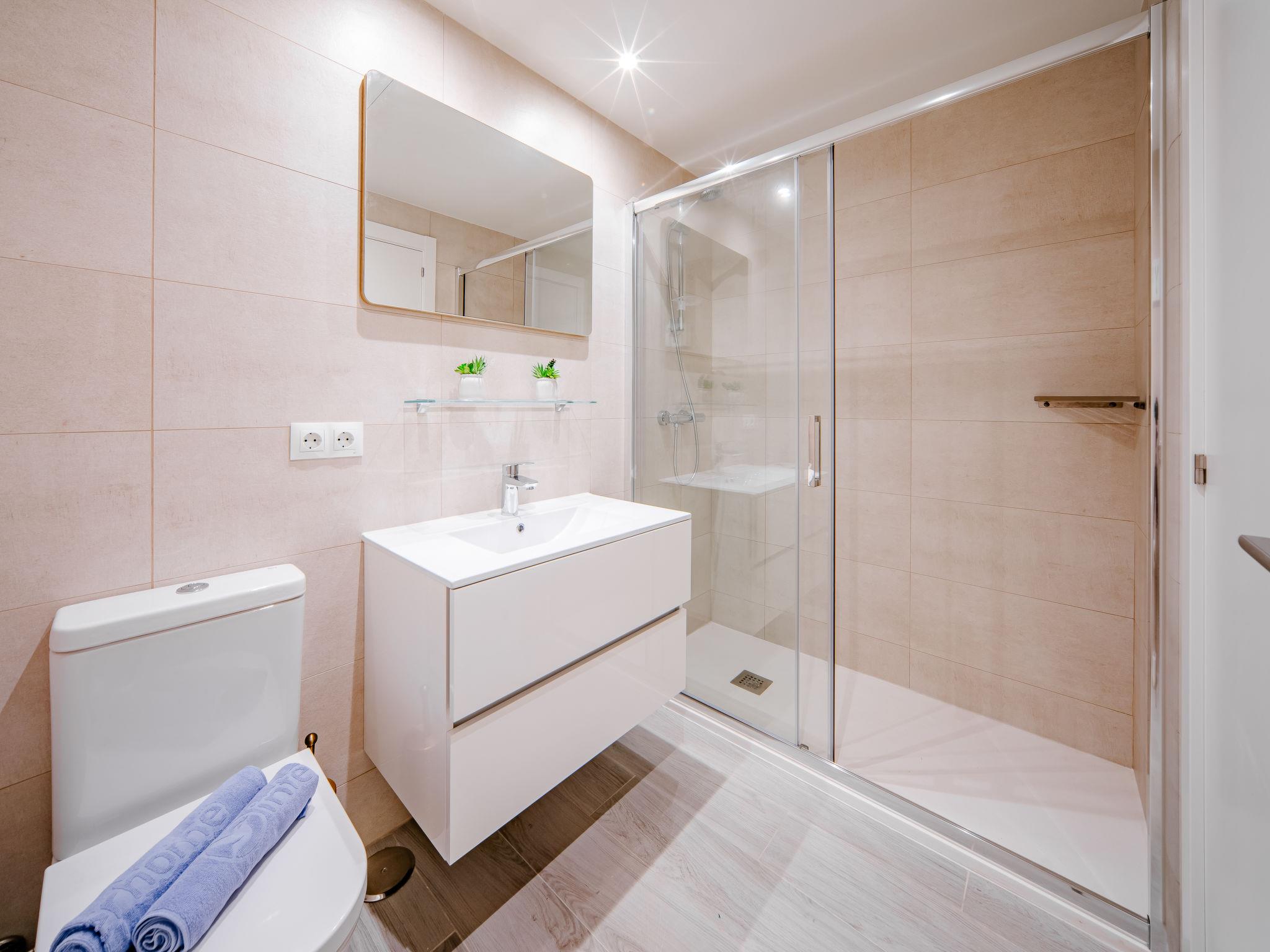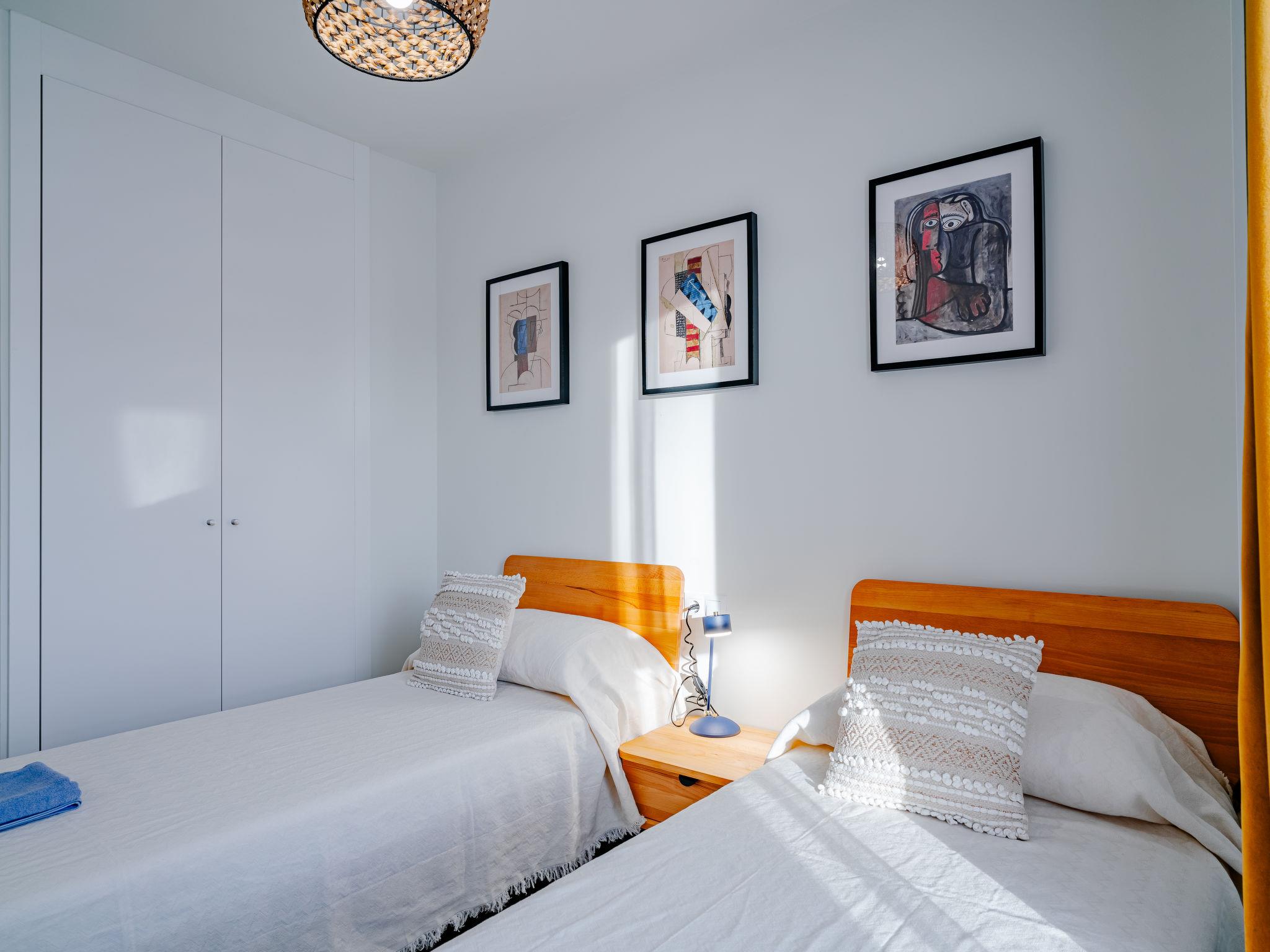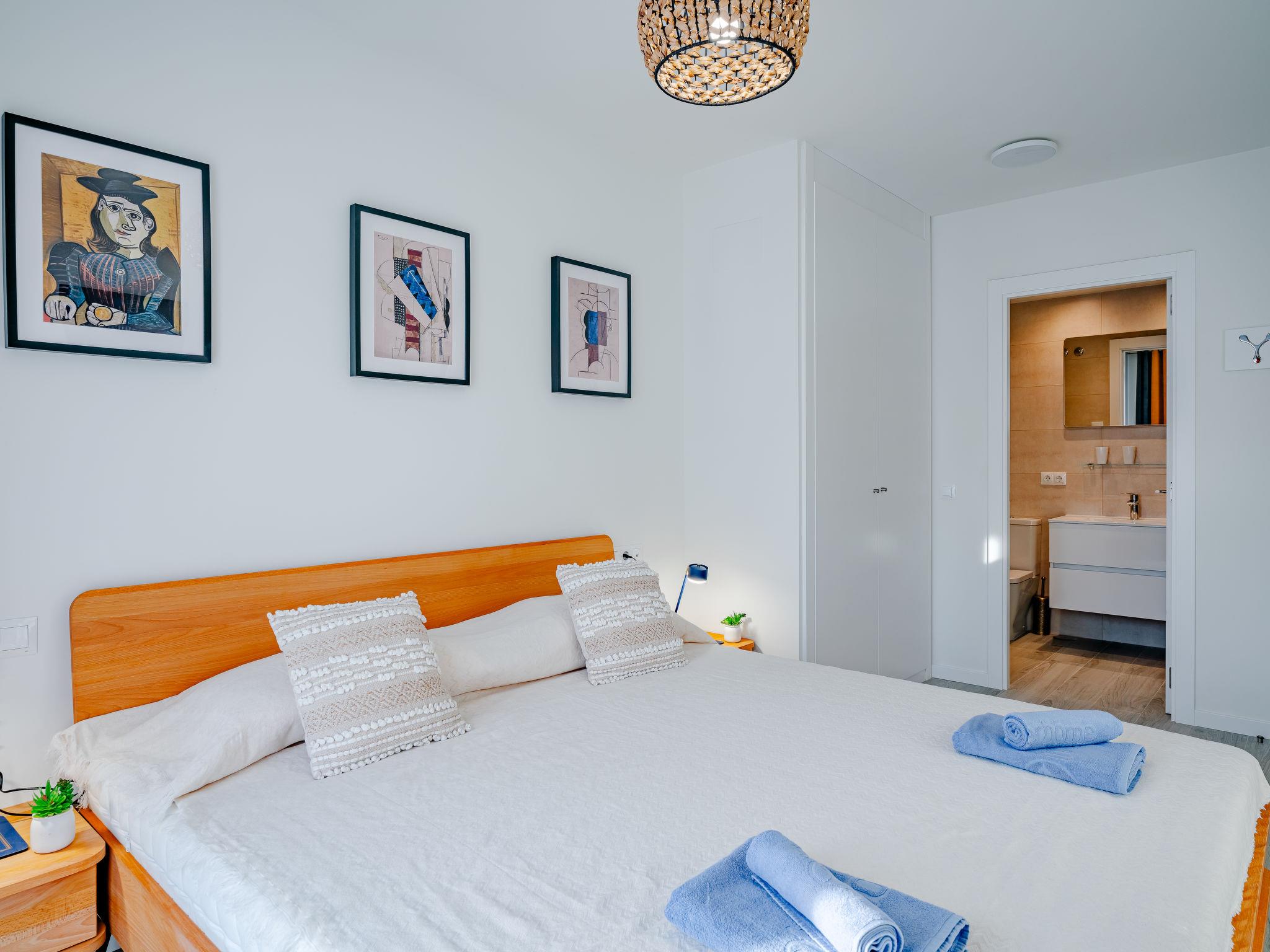 "Marina Real III Plus", 4-room apartment 83 m2 on 3 levels. Spacious, very modern and stylish furnishings: living/dining room with satellite TV, air conditioning and forced-air heating. Exit to the terrace. 1 room with 1 french bed (160 cm, length 200 cm), shower/WC, air conditioning and forced-air heating. 1 room with 2 beds (90 cm, length 200 cm), air conditioning and forced-air heating. Open kitchen (oven, dishwasher, 3 induction hot plates, toaster, kettle, microwave, freezer, electric coffee machine). Shower/WC. Large terrace. Sitting area. Very beautiful view of the mountains, the swimming pool and the garden. Facilities: washing machine, iron, baby cot, hair dryer. Internet (WiFi, free). Garage space n 32. VT-509004-A // Reg. Nr.: ESFCTU0000030550008514010000000000000CV-VUT0509004-A9
