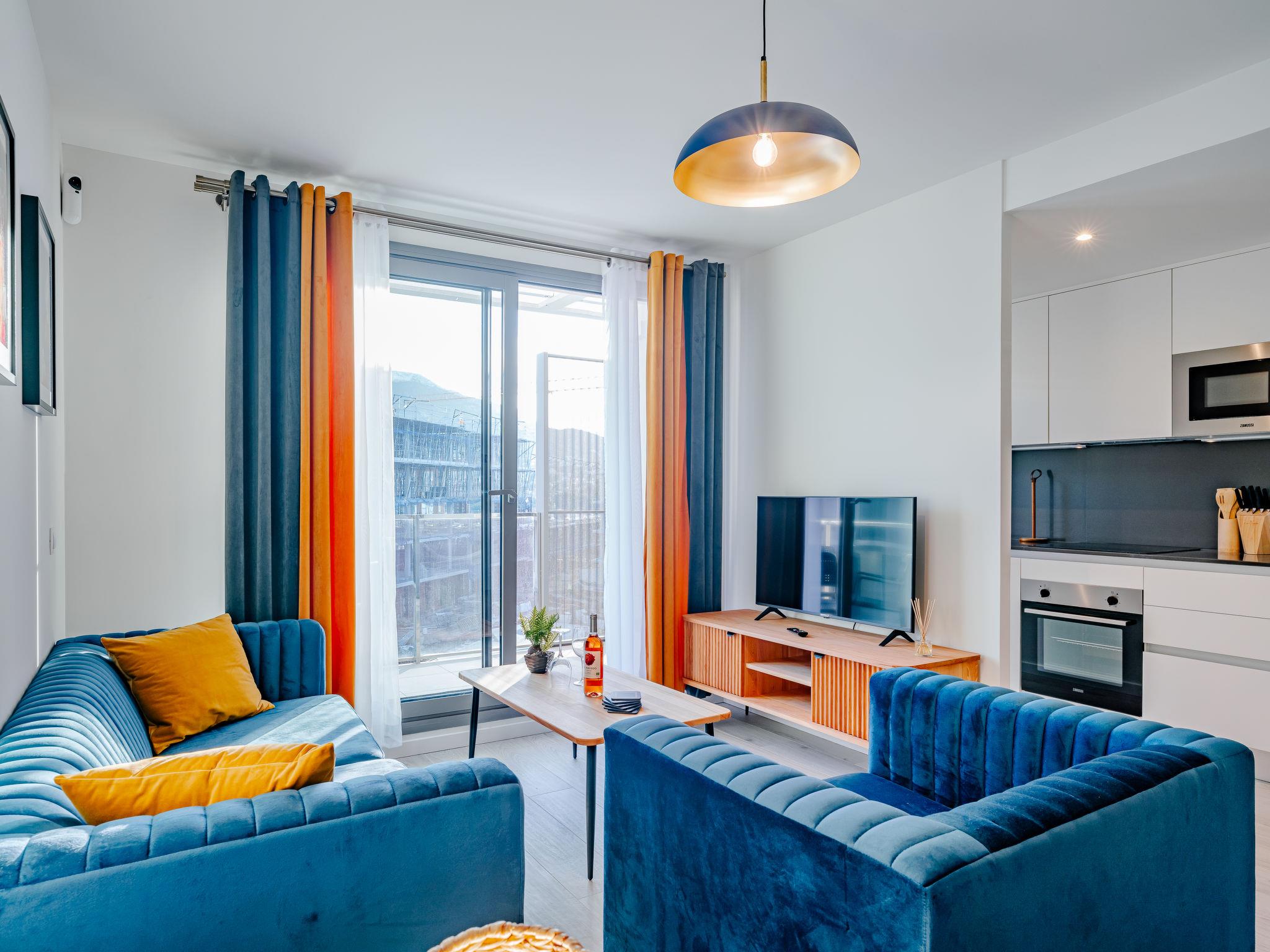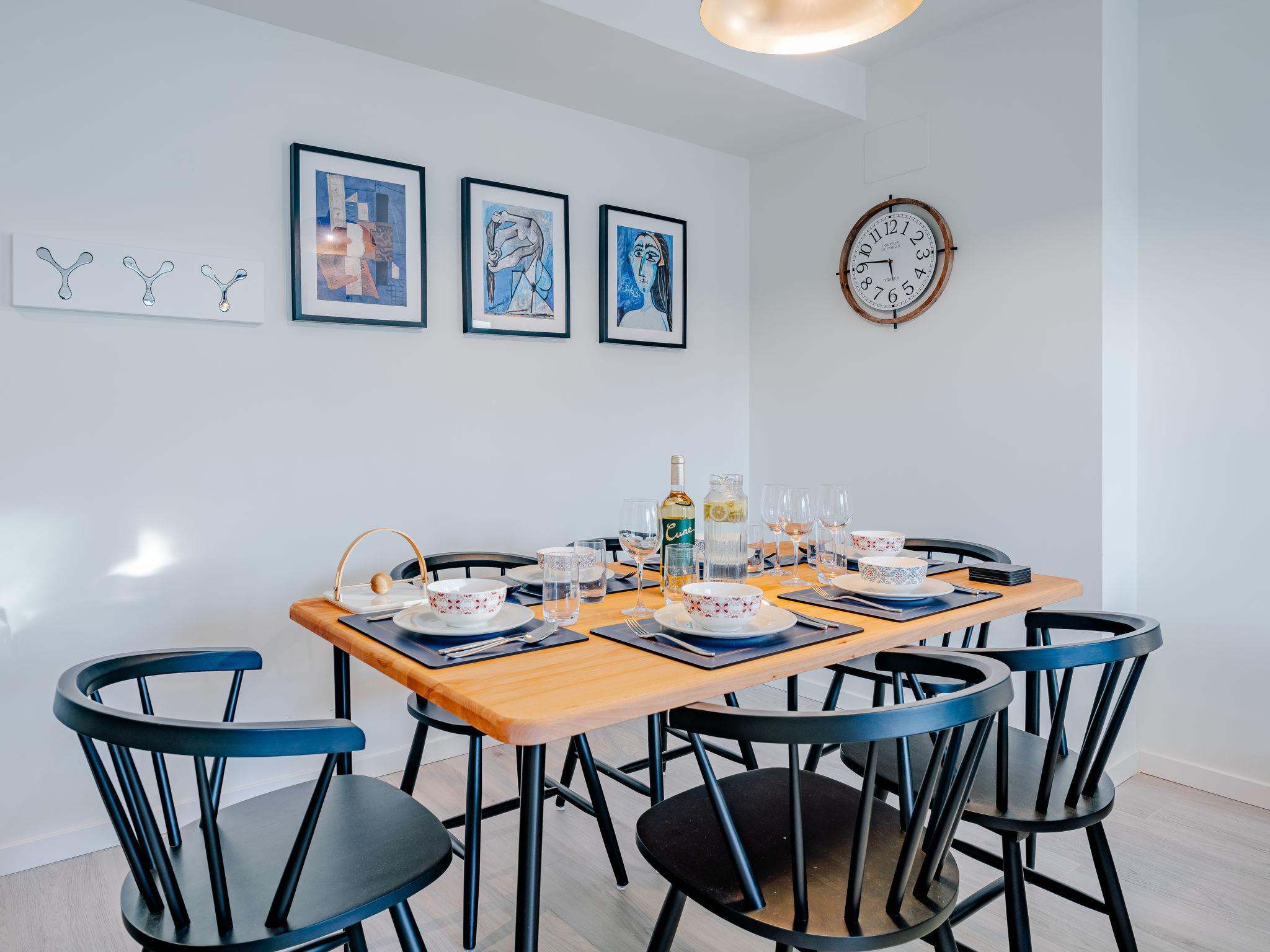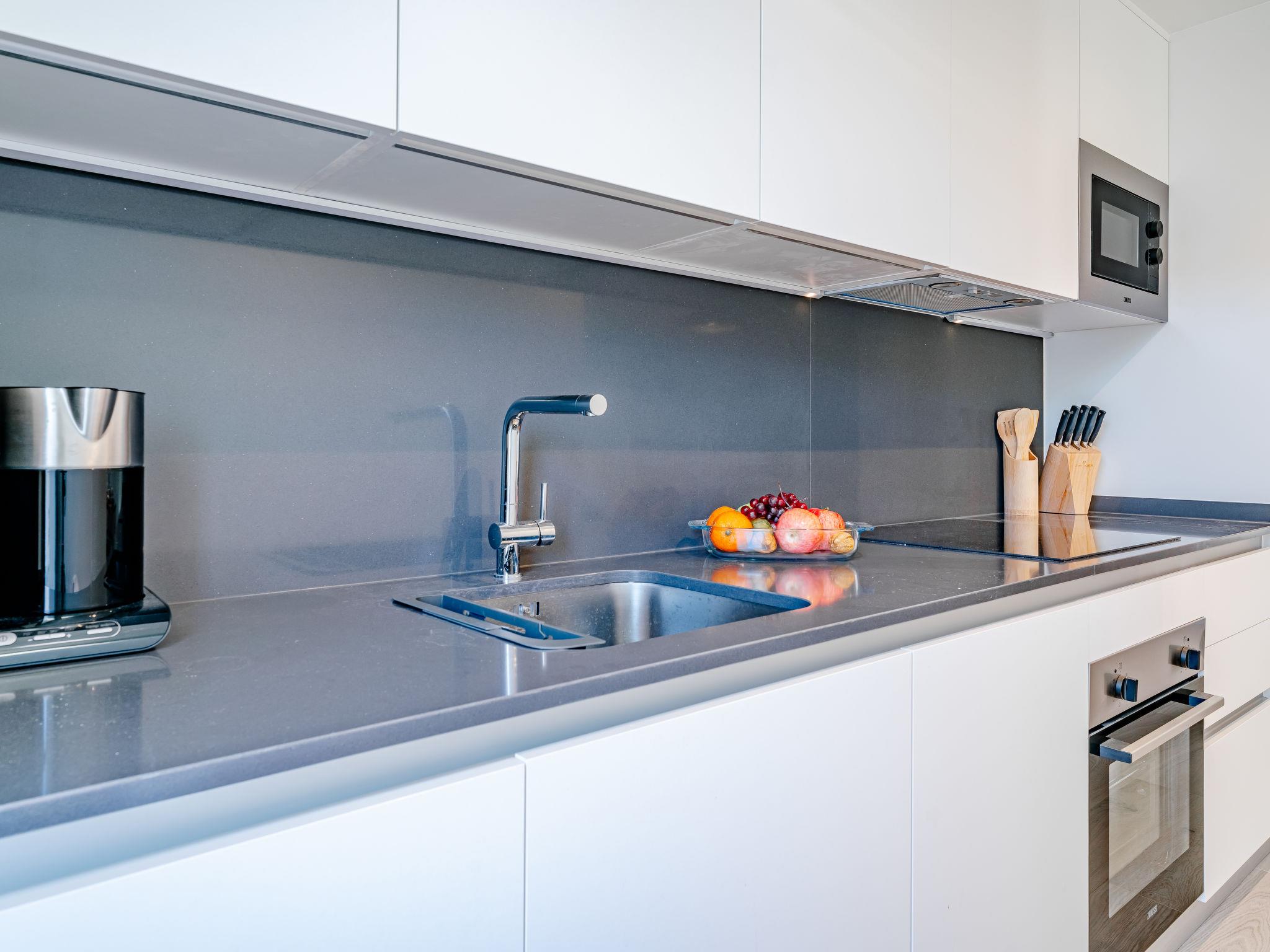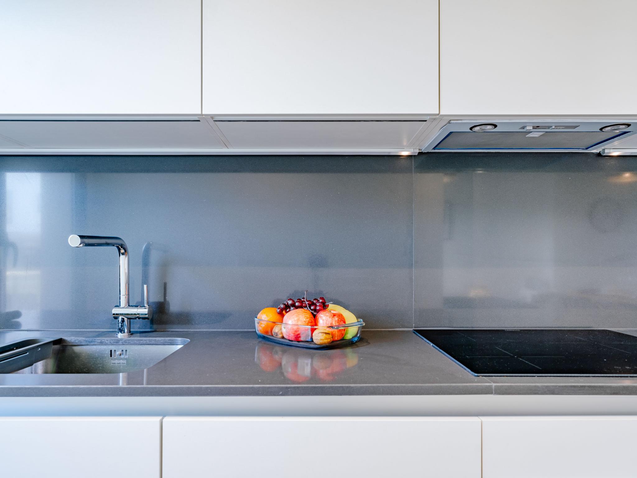 "Marina Real III Plus", 4-room apartment 83 m2 on 3 levels. Spacious, very modern and stylish furnishings: living/dining room with satellite TV, air conditioning and forced-air heating. Exit to the terrace. 1 room with 1 french bed (160 cm, length 200 cm), shower/WC, air conditioning and forced-air heating. 1 room with 2 beds (90 cm, length 200 cm), air conditioning and forced-air heating. Open kitchen (oven, dishwasher, 3 induction hot plates, toaster, kettle, microwave, freezer, electric coffee machine). Shower/WC. Large terrace. Sitting area. Very beautiful view of the mountains, the swimming pool and the garden. Facilities: washing machine, iron, baby cot, hair dryer. Internet (WiFi, free). Garage space n 32. VT-509004-A // Reg. Nr.: ESFCTU0000030550008514010000000000000CV-VUT0509004-A9