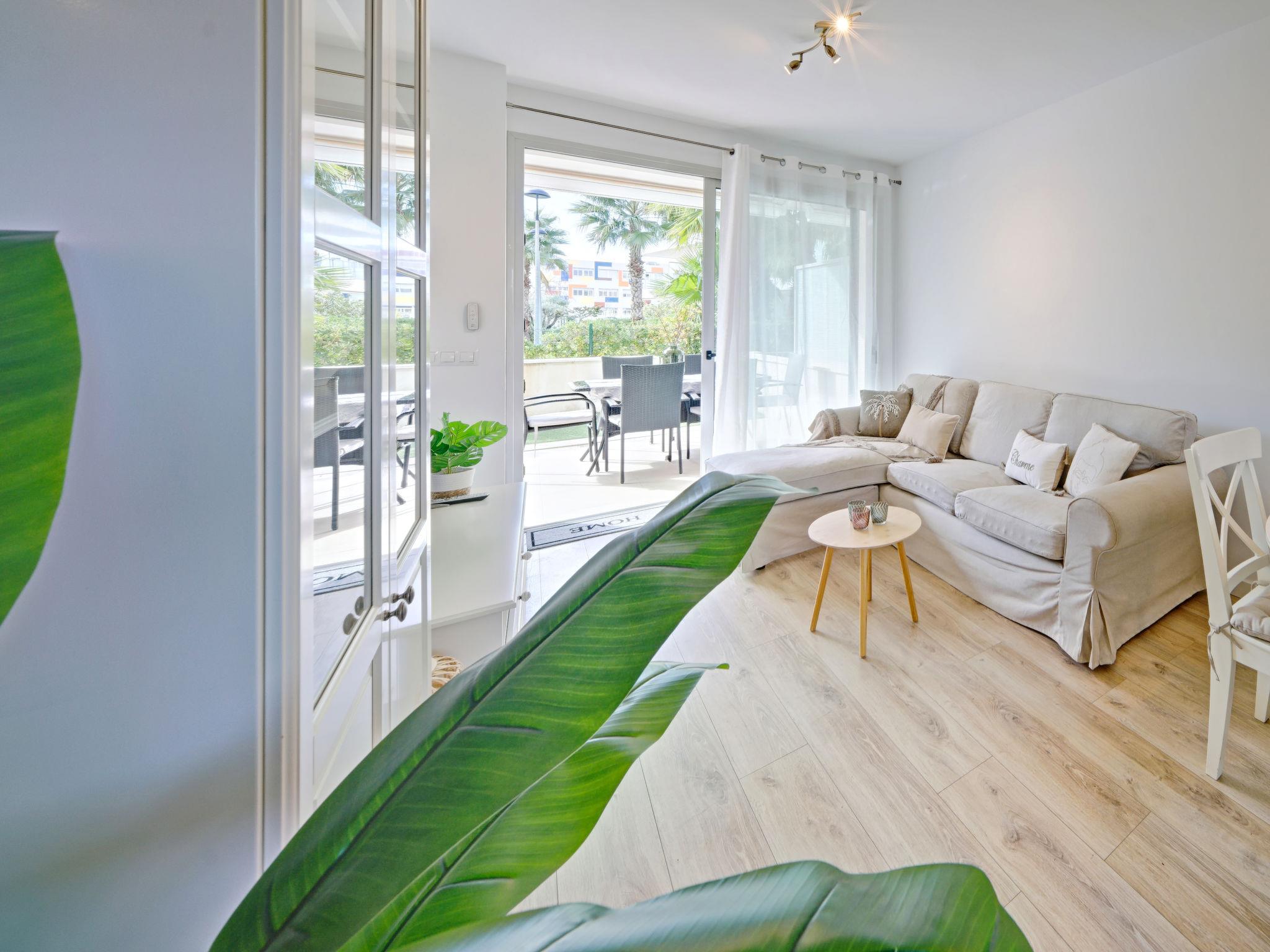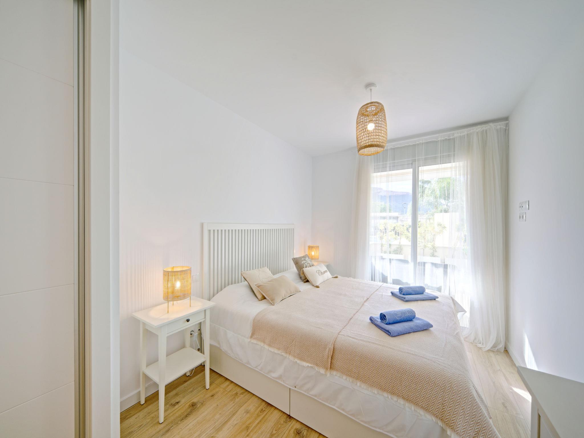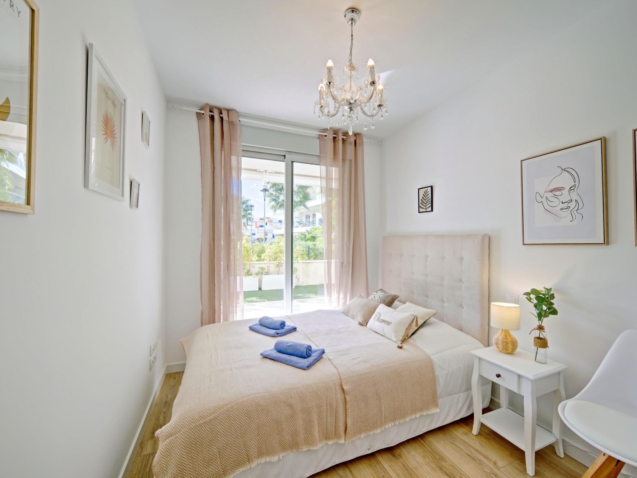 "Marina Real I", 3-room apartment 70 m2. Spacious and bright, very beautiful and stylish furnishings: living/dining room with digital TV, air conditioning and forced-air heating. Exit to the patio, to the swimming pool. 1 room with 1 french bed (160 cm, length 200 cm), shower/WC, air conditioning and forced-air heating. Exit to the terrace. 1 room with 1 french bed (140 cm, length 200 cm), air conditioning and forced-air heating. Exit to the terrace. Open kitchen (oven, dishwasher, 3 induction hot plates, toaster, kettle, microwave, freezer, electric coffee machine, Capsules for coffee machine (Senseo) extra). Shower/WC. Large terrace 40 m2. Terrace furniture, covered balcony. Very beautiful view of the mountains. Facilities: washing machine, dryer, iron, children's high chair, baby cot, hair dryer. Internet (WiFi, free). Garage space n 49. Please note: non-smokers only. CV-VUT0514959-A // Reg. Nr.: ESFCTU0000030550008251430000000000000CV-VUT0514959-A8