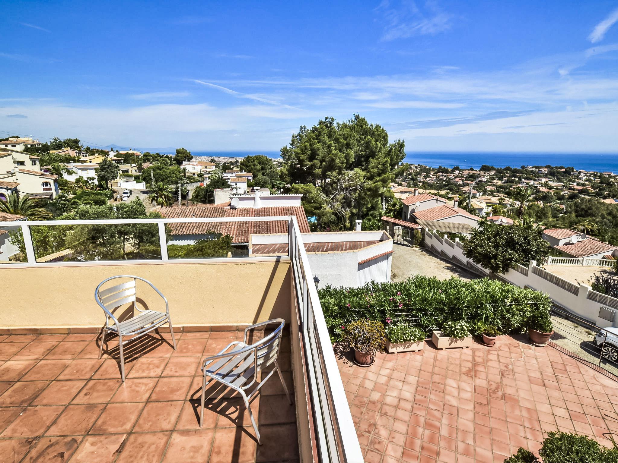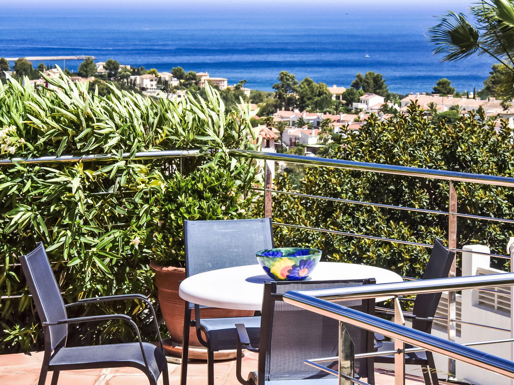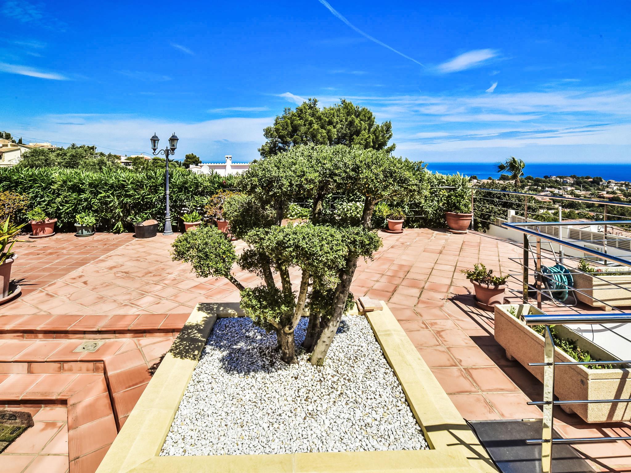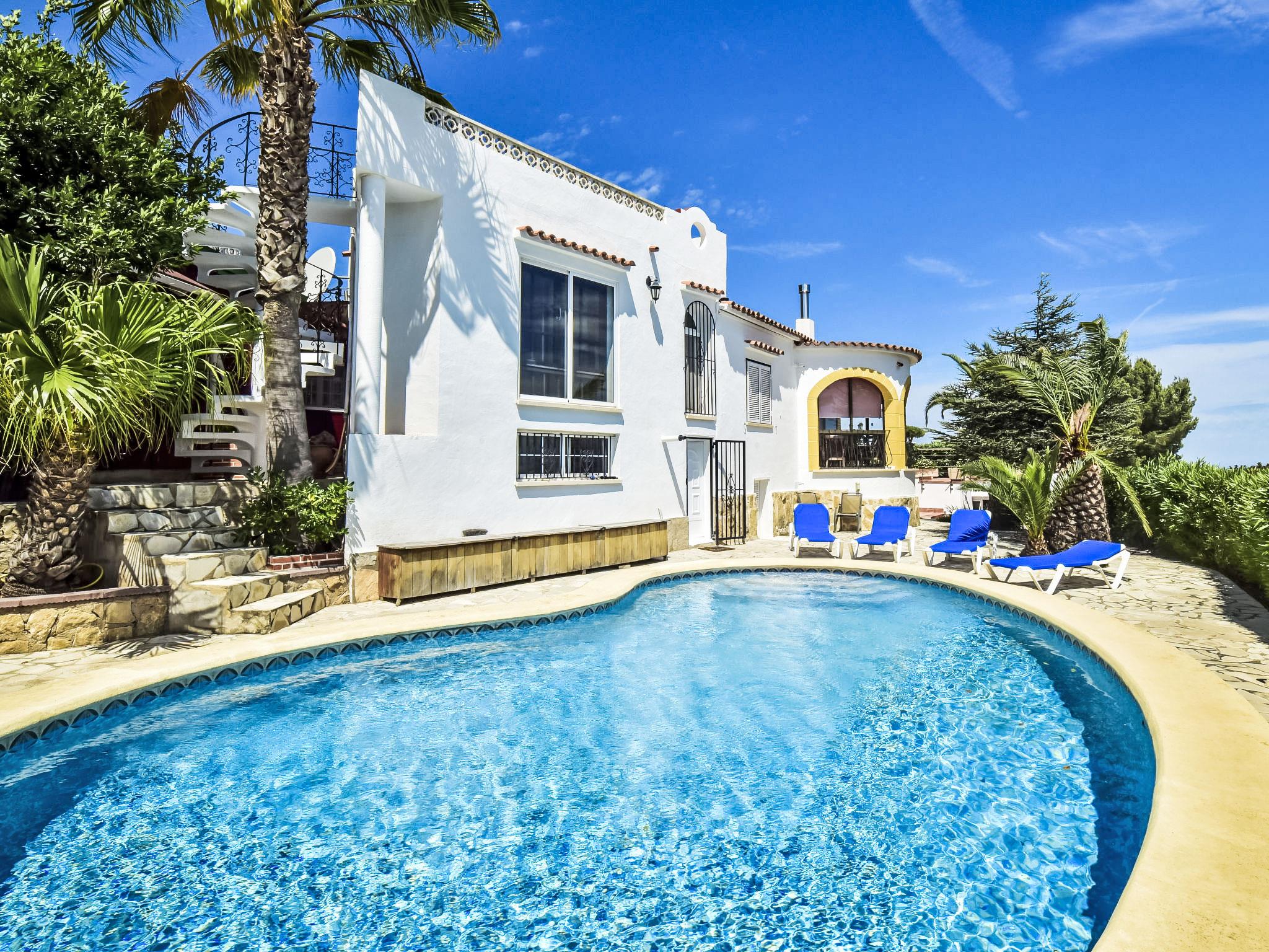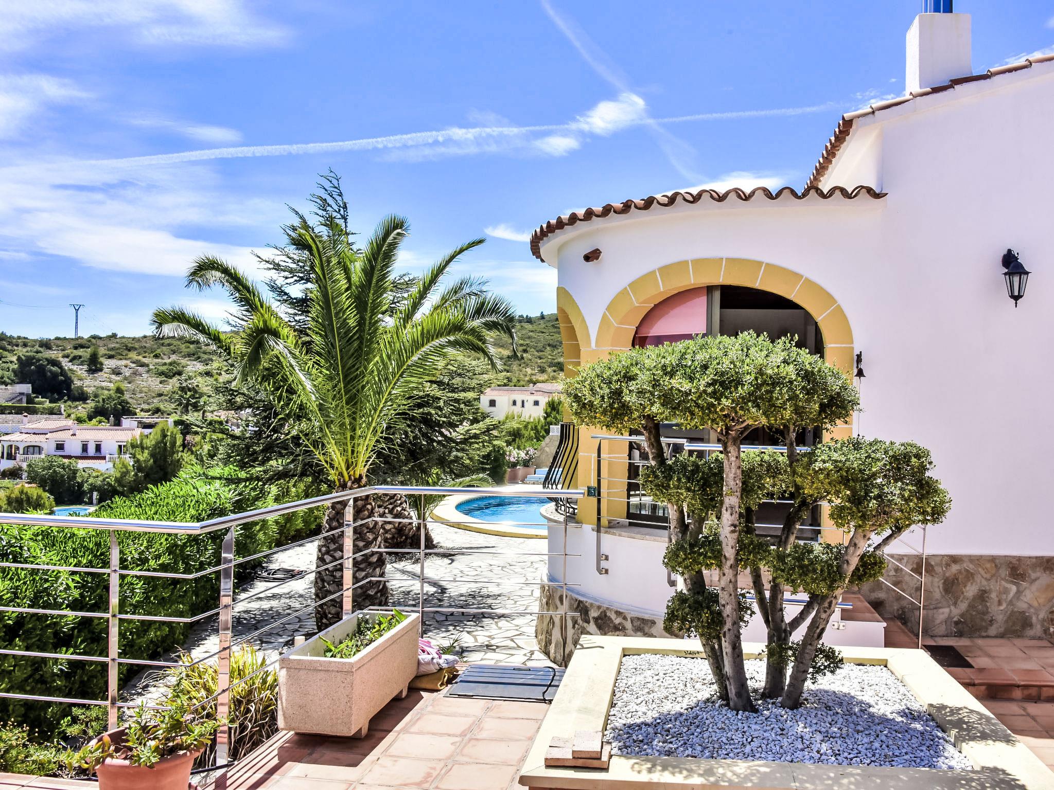 Bellavista: Beautiful, cosy house "Bellavista". In the resort 4.5 km from the centre of Dénia, 3 km from the sea, 3.9 km from the beach, in a cul-de-sac. Private: beautiful, well-kept garden with wildlife garden and trees, swimming pool kidney shaped (5 x 10 m, depth 1 - depth 180 cm, seasonal availability: 01.Jan. - 31.Dec.). Stepped path (17 steps) to the house. Parking, single garage. Supermarket 4 km, restaurant 2 km, bar 1.5 km, bus stop 4.5 km, railway station 4.5 km, ferry 4.5 km, sandy beach 4.5 km. Sports harbour 4.5 km, marina 4.5 km, surf school 4.5 km, sailing school 4.5 km. Please note: not suitable for small children. The owner does not accept any youth groups.