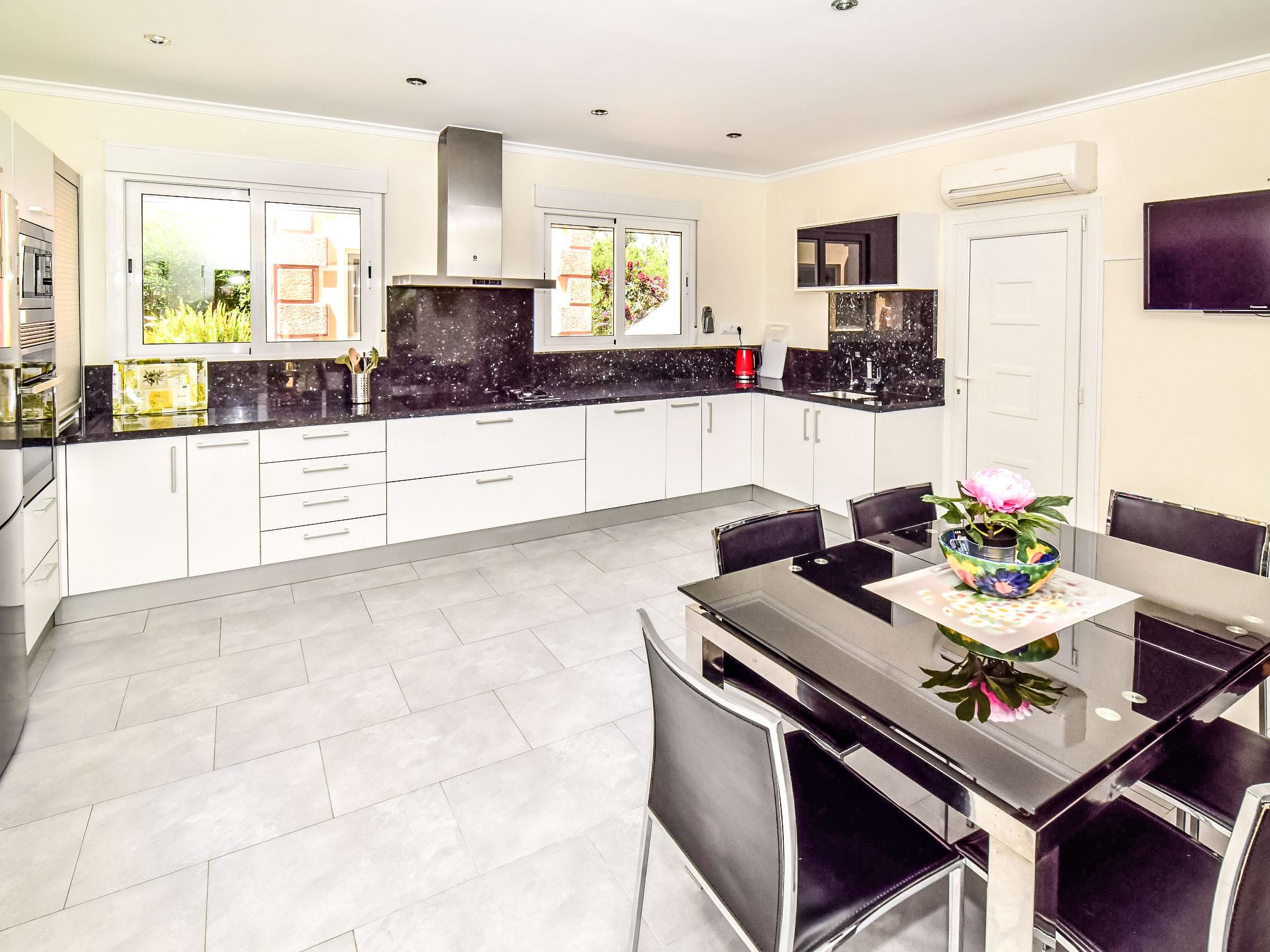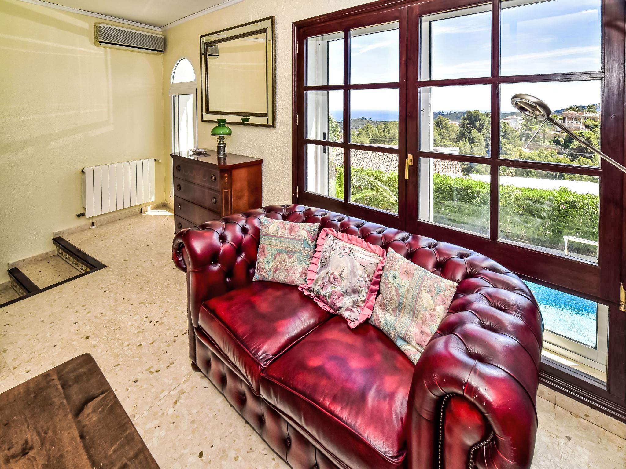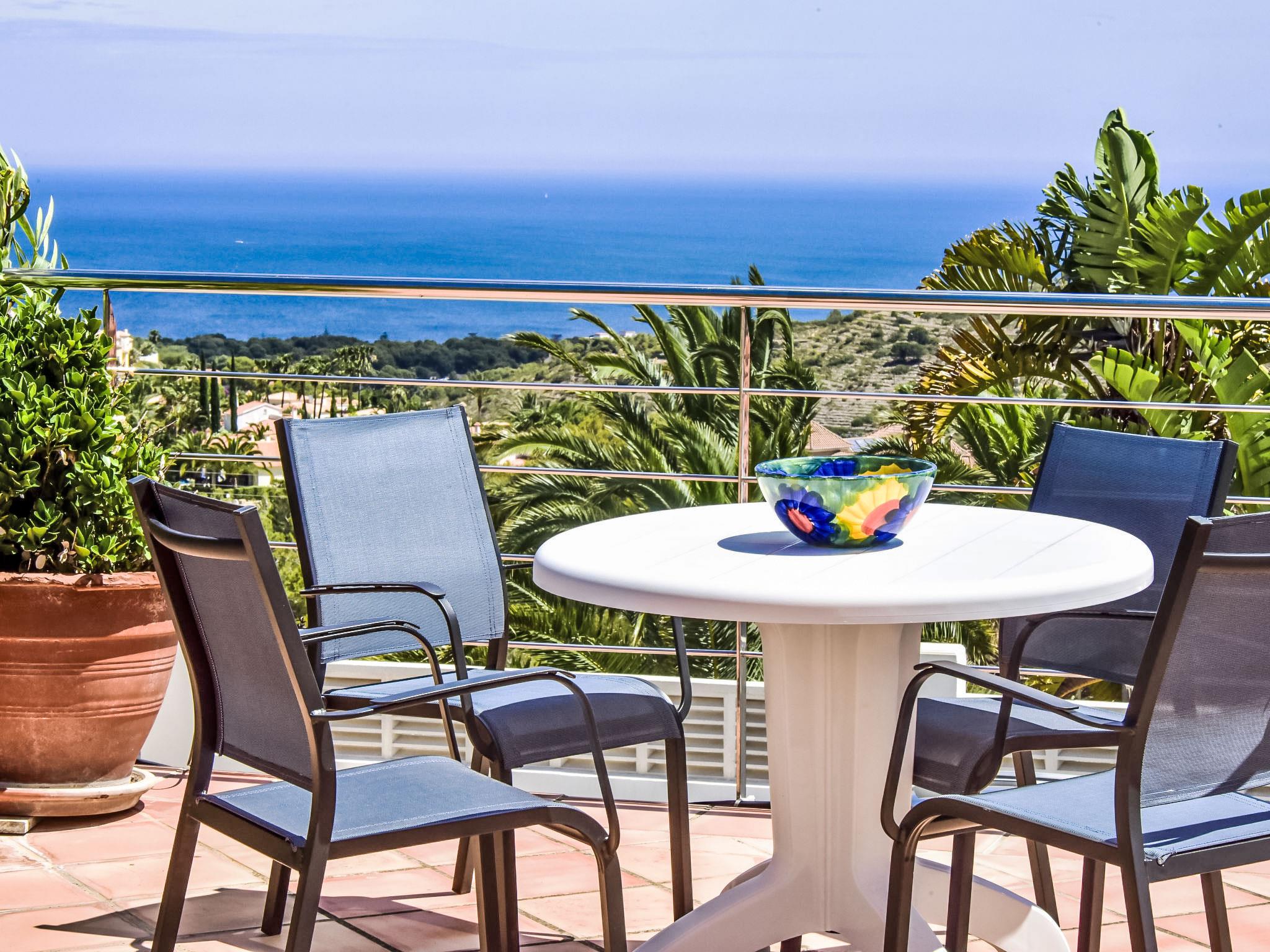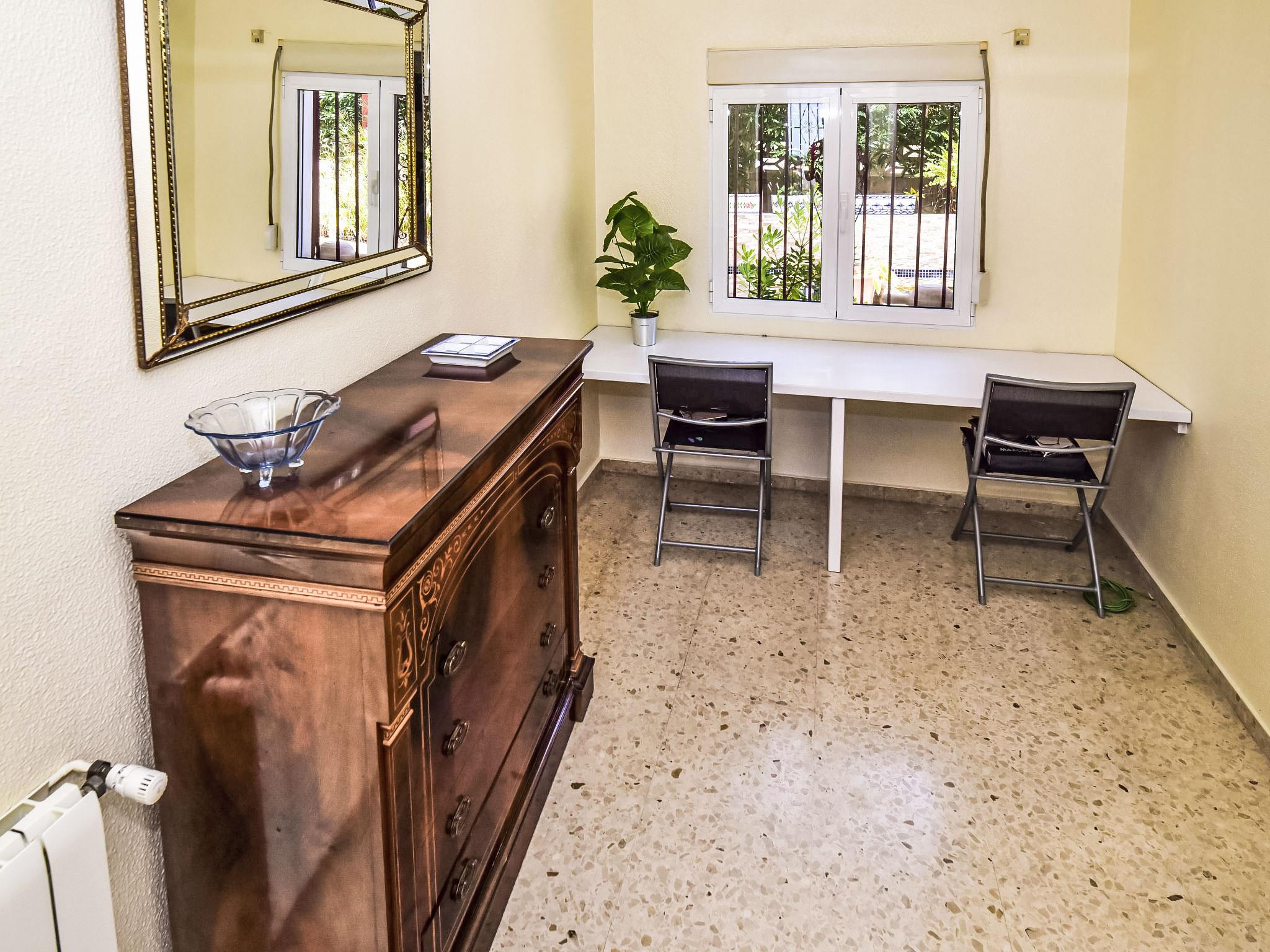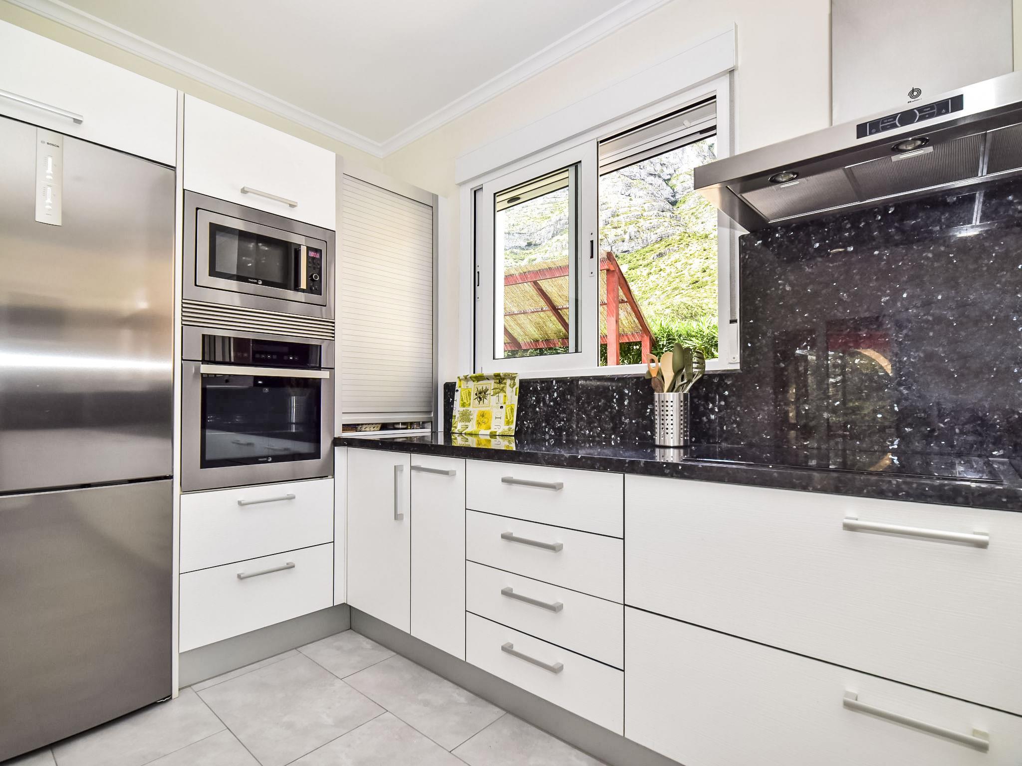 Bellavista: Beautiful, cosy house "Bellavista". In the resort 4.5 km from the centre of Dénia, 3 km from the sea, 3.9 km from the beach, in a cul-de-sac. Private: beautiful, well-kept garden with wildlife garden and trees, swimming pool kidney shaped (5 x 10 m, depth 1 - depth 180 cm, seasonal availability: 01.Jan. - 31.Dec.). Stepped path (17 steps) to the house. Parking, single garage. Supermarket 4 km, restaurant 2 km, bar 1.5 km, bus stop 4.5 km, railway station 4.5 km, ferry 4.5 km, sandy beach 4.5 km. Sports harbour 4.5 km, marina 4.5 km, surf school 4.5 km, sailing school 4.5 km. Please note: not suitable for small children. The owner does not accept any youth groups.