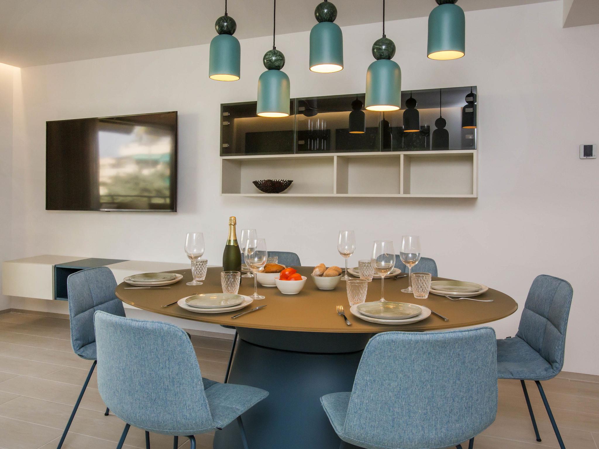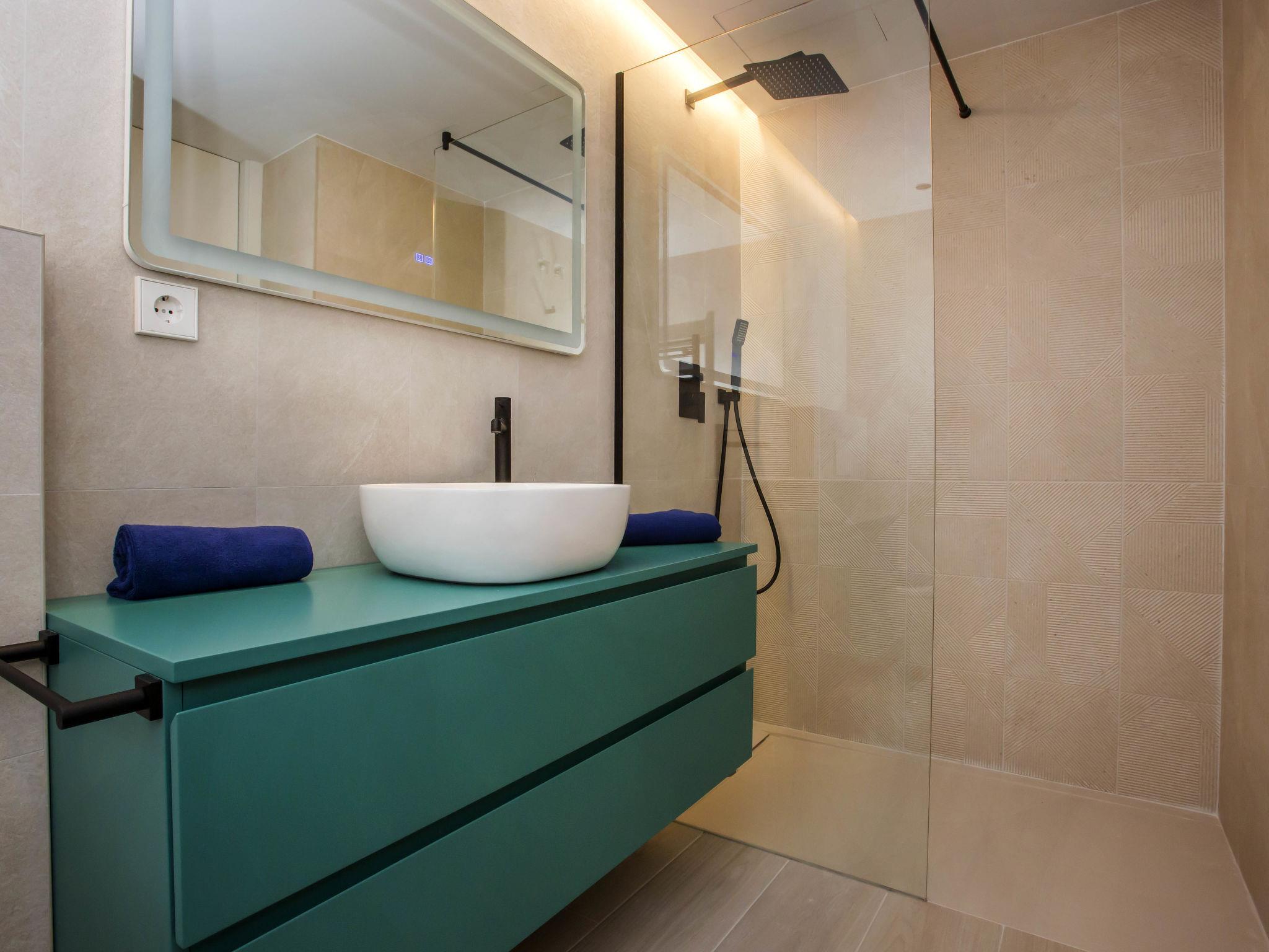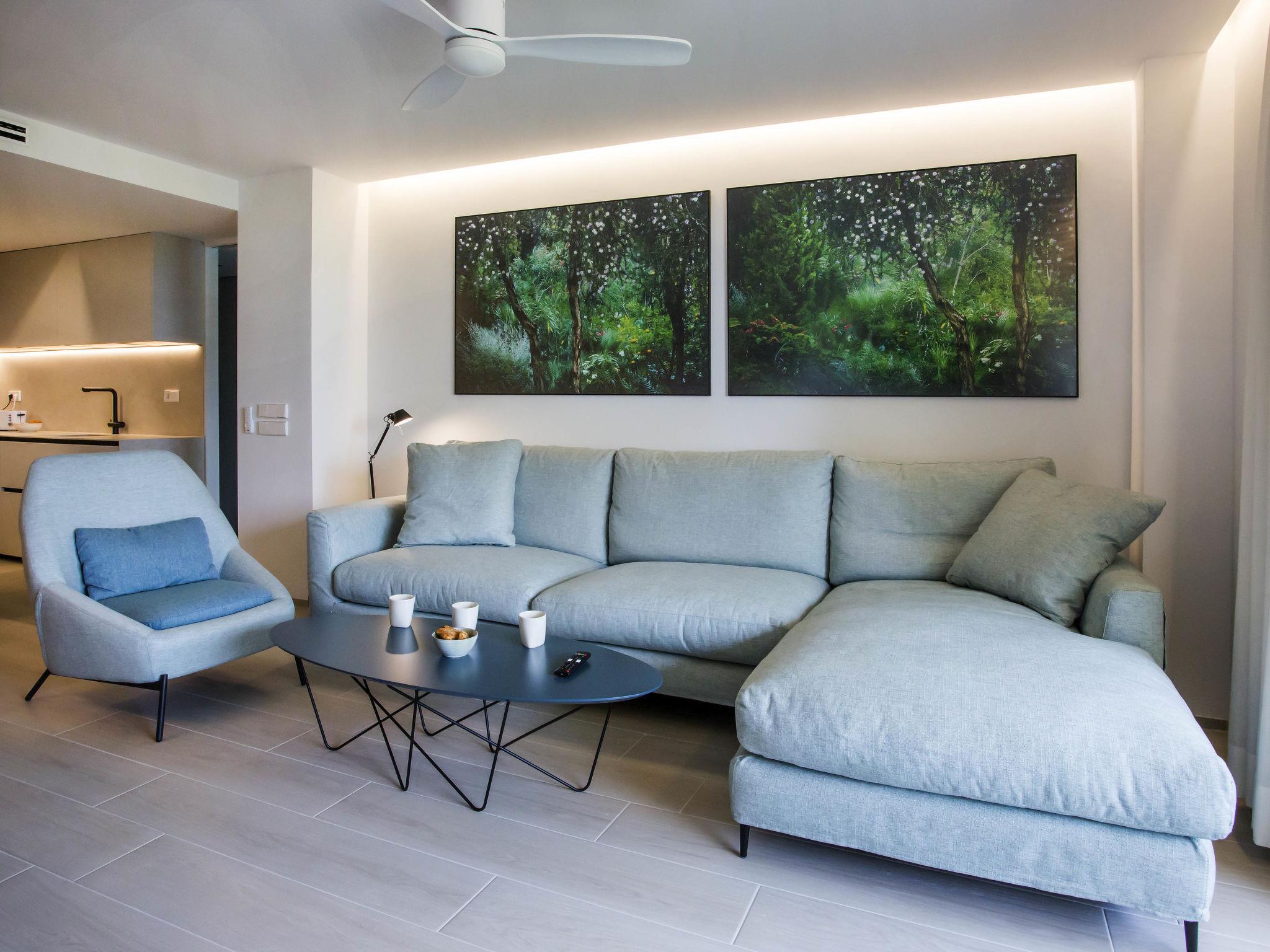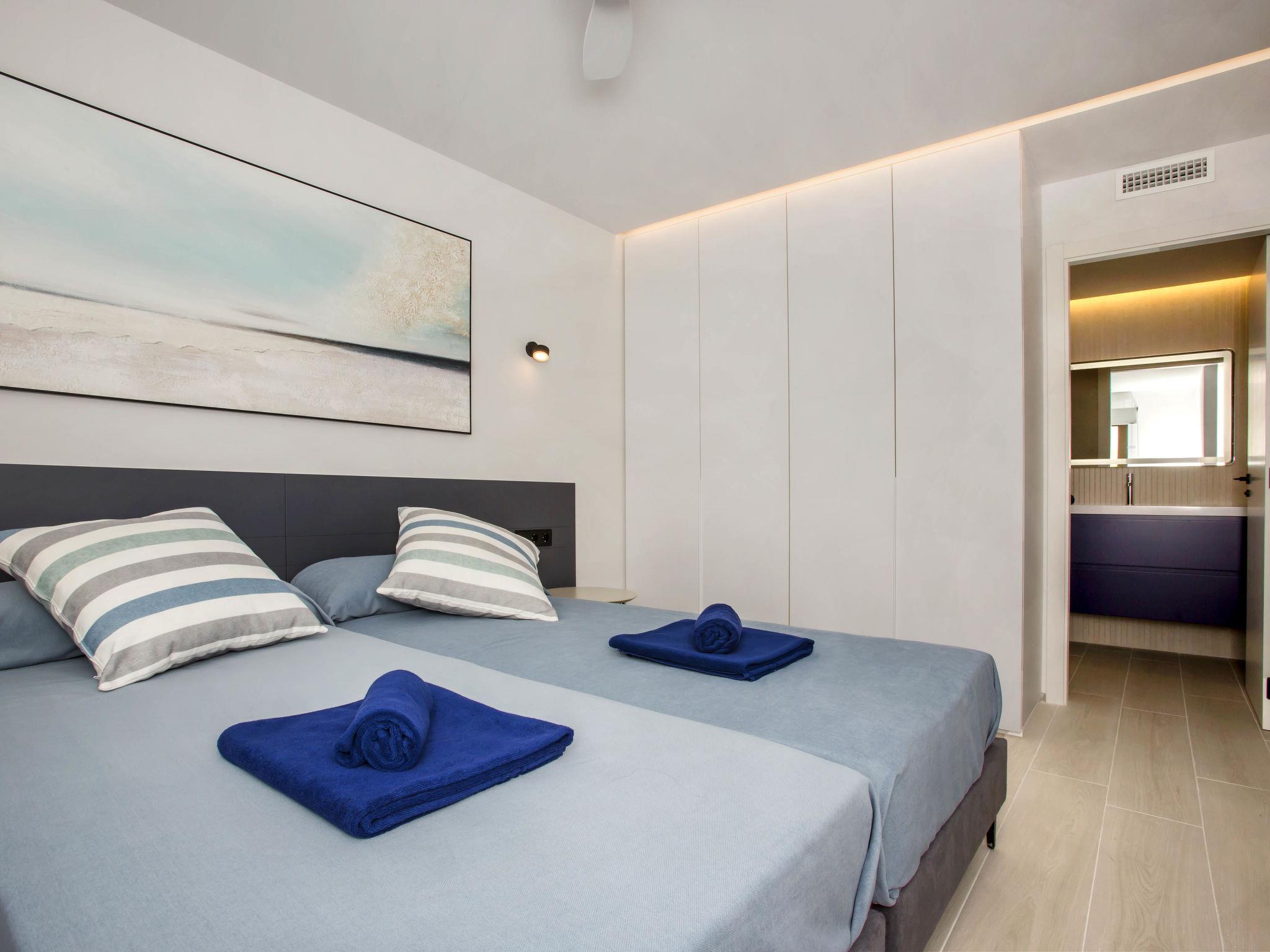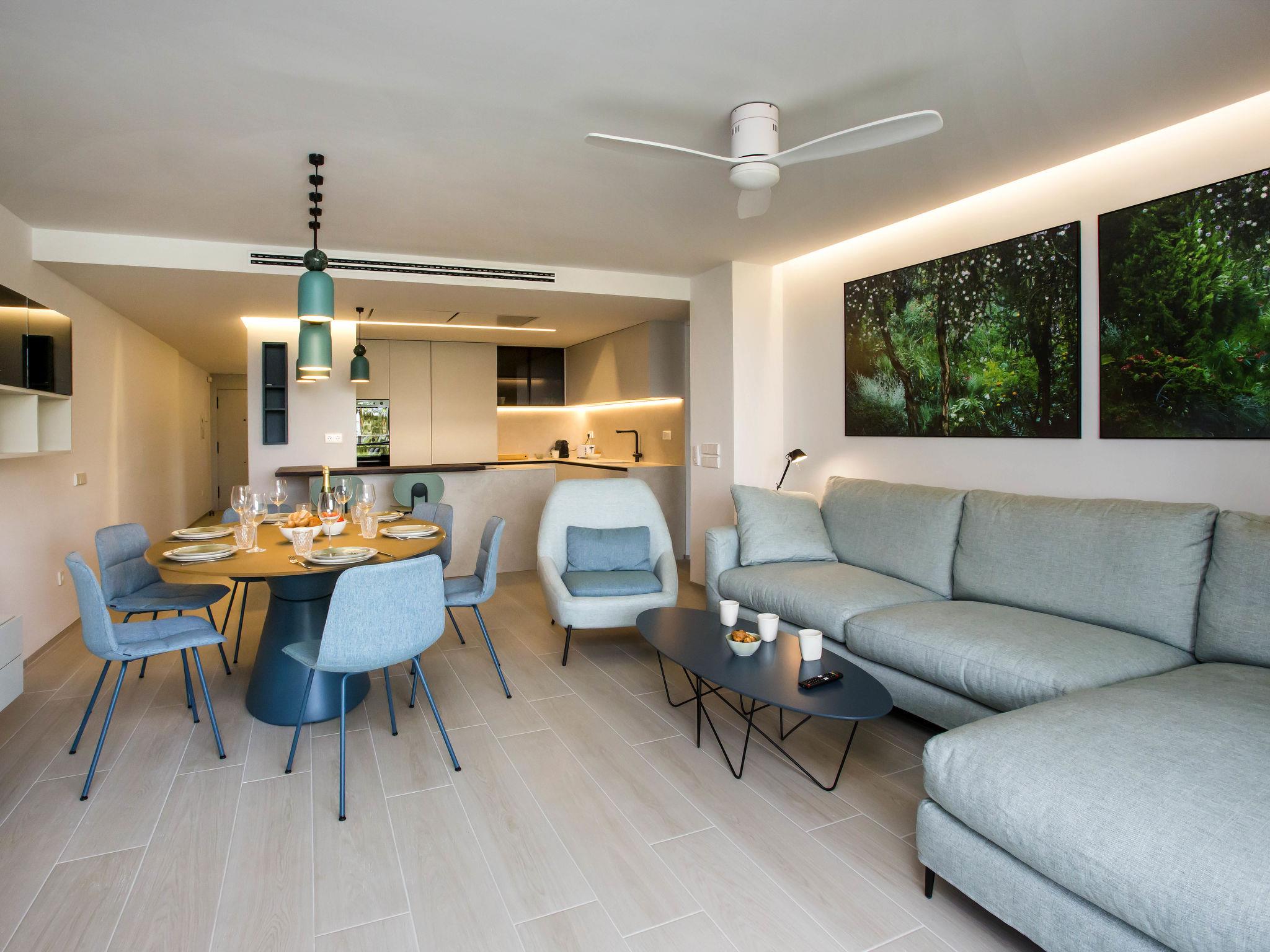 "Playa Grande", 4-room apartment 90 m2. Spacious and bright, fully renovated in 2023, very beautiful and stylish furnishings: living/dining room with digital TV, air conditioning and forced-air heating. Exit to the terrace. 1 room with 1 french bed (180 cm, length 200 cm), shower/WC, air conditioning and forced-air heating. 1 room with 1 french bed (2 x 90 cm, length 200 cm), air conditioning and forced-air heating. Exit to the terrace. 1 room with 2 beds (90 cm, length 200 cm), air conditioning and forced-air heating. Open kitchen (oven, dishwasher, 4 ceramic glass hob hotplates, toaster, kettle, microwave, freezer, electric coffee machine). Shower/WC, double hand-basin. Large terrace 15 m2, north facing position. Terrace furniture, deck chairs. Marvellous view of the sea, the swimming pool and the garden. Facilities: washing machine, iron, children's high chair, baby cot, hair dryer. Internet (WiFi, free). Parking (2 cars). Please note: non-smokers only. CV-VUT0503044A // Reg. Nr.: ESFCTU00000304500030123500000000000000CV-VUT0503044A0