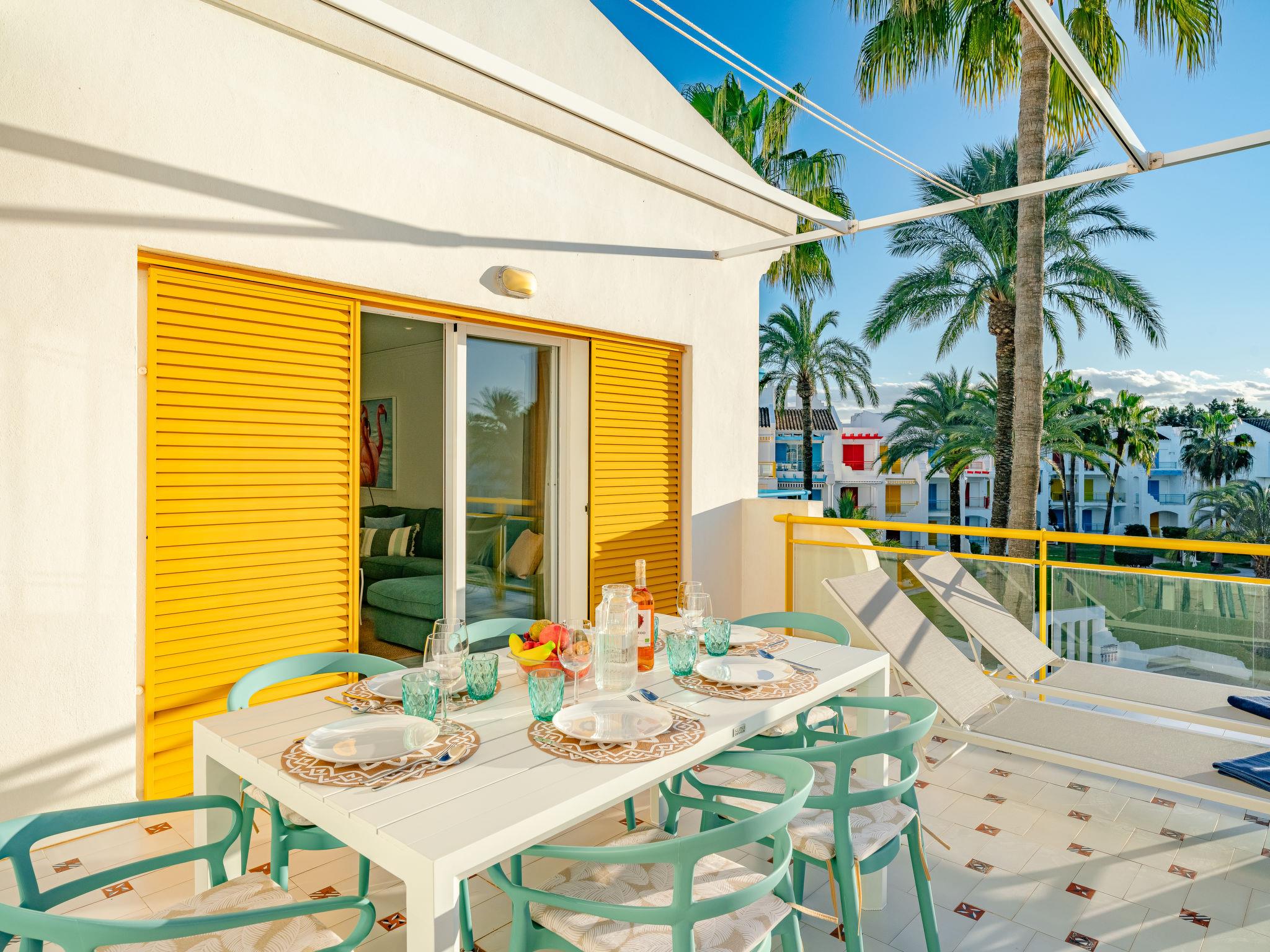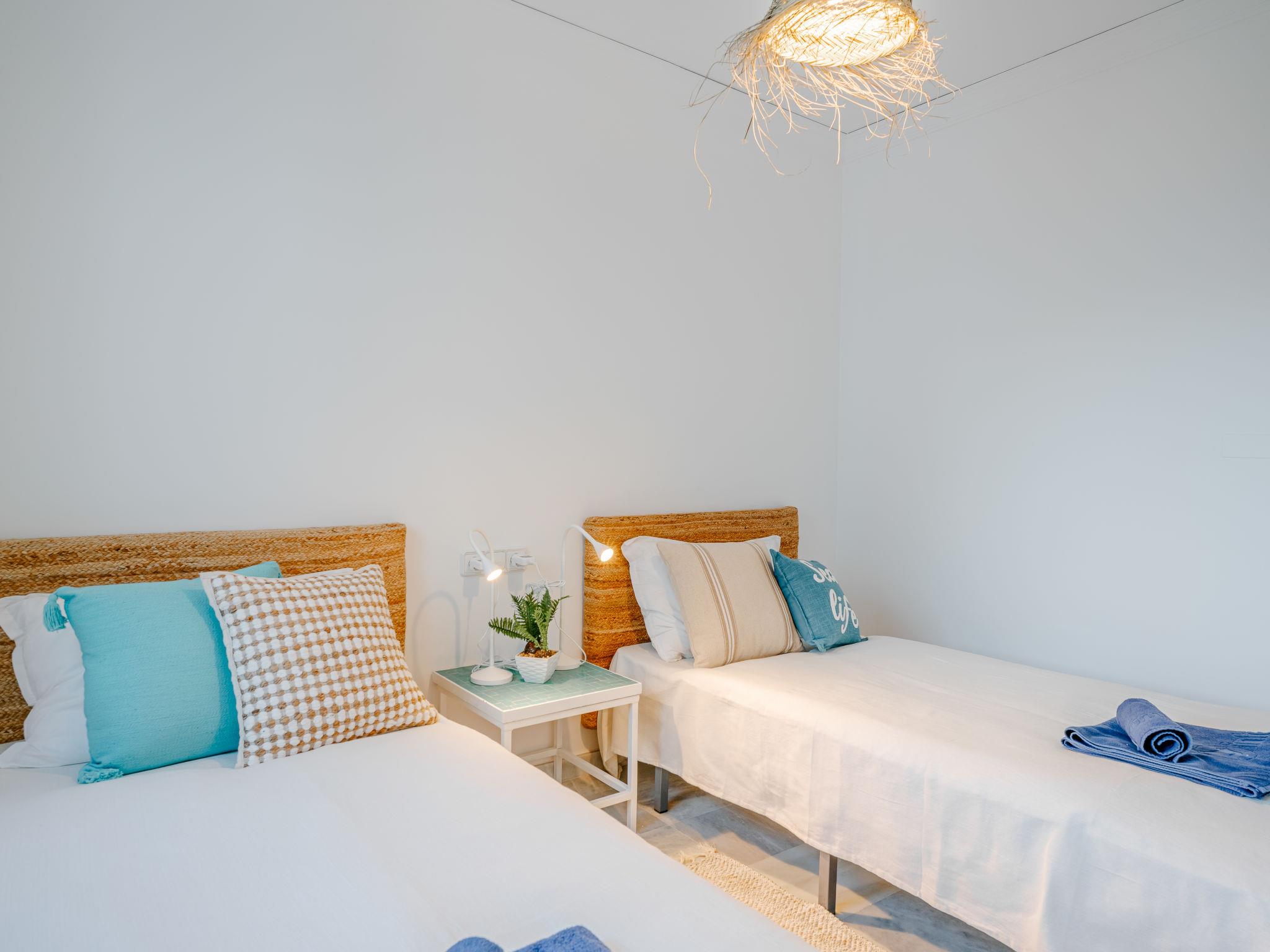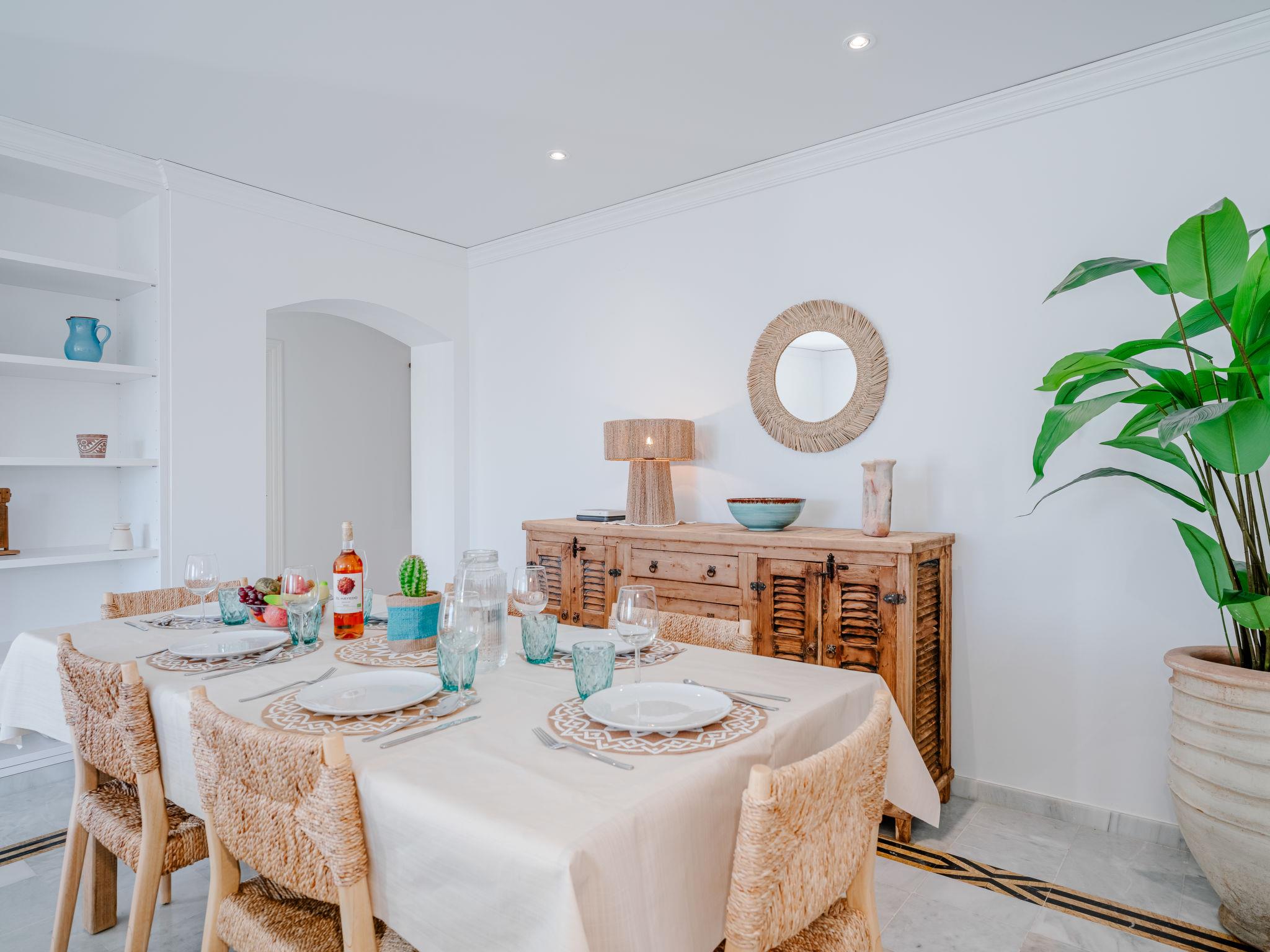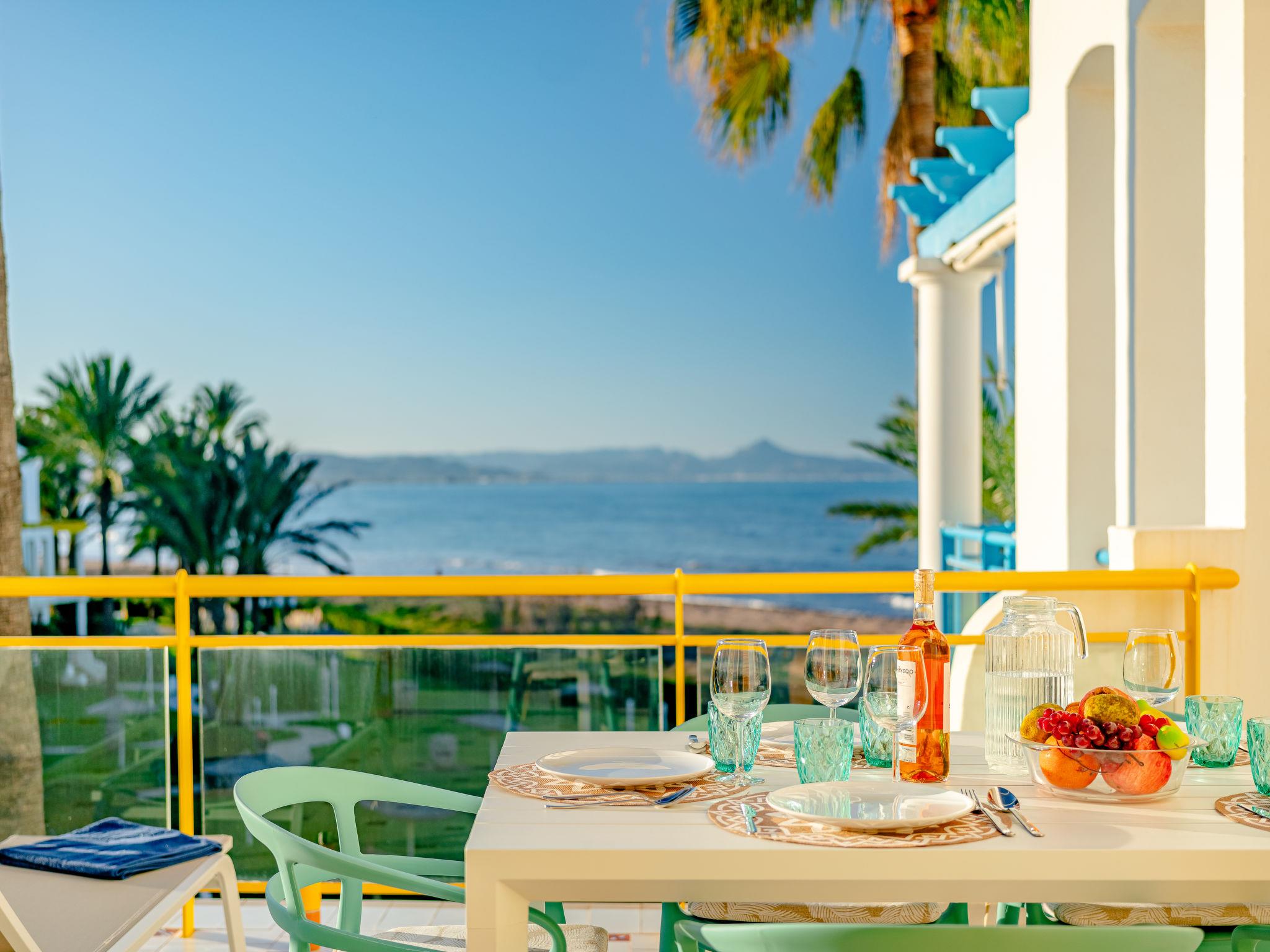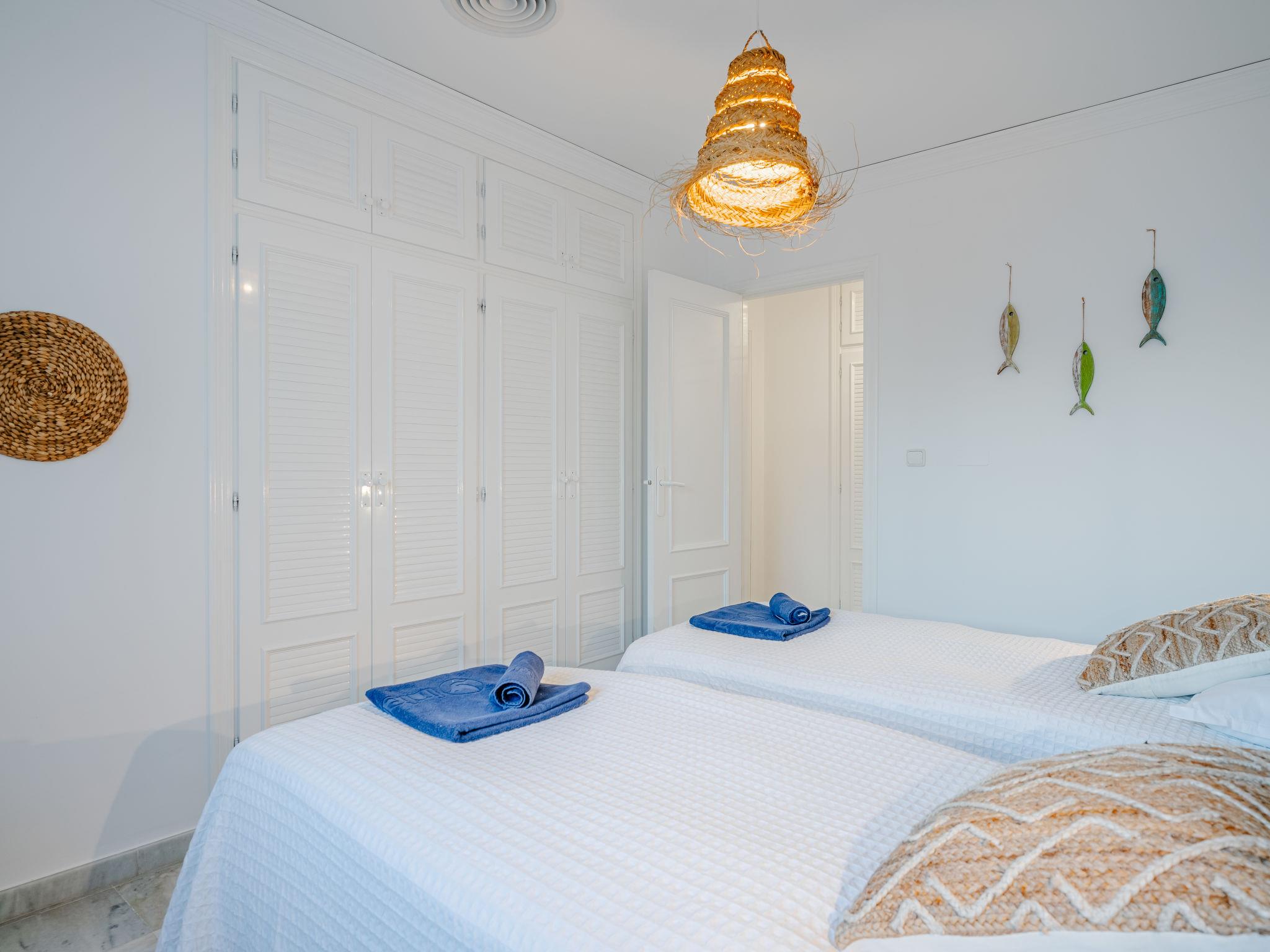 "L'Alberca Plus", 3-room apartment 120 m2 on 2nd floor. Spacious and bright, very beautiful and stylish furnishings: living/dining room with digital TV, air conditioning and forced-air heating. Exit to the terrace. 1 room with 1 french bed (180 cm, length 200 cm), shower/bidet/WC, air conditioning, fan and forced-air heating. Exit to the terrace. 1 room with 2 beds (90 cm, length 190 cm), air conditioning and forced-air heating. 1 room with 2 beds (90 cm, length 190 cm), air conditioning and forced-air heating. Kitchen (oven, dishwasher, 4 ceramic glass hob hotplates, toaster, kettle, microwave, freezer, electric coffee machine). Shower/bidet/WC. Large terrace, east facing position, small terrace. Marvellous view of the sea, the swimming pool and the garden. Facilities: washing machine, iron, children's high chair, baby cot, hair dryer. Internet (WiFi, free). Please note: non-smokers only. VT-484904-A // Reg. Nr.: ESFCTU00000304500043021800000000000000000VT-484904-A2