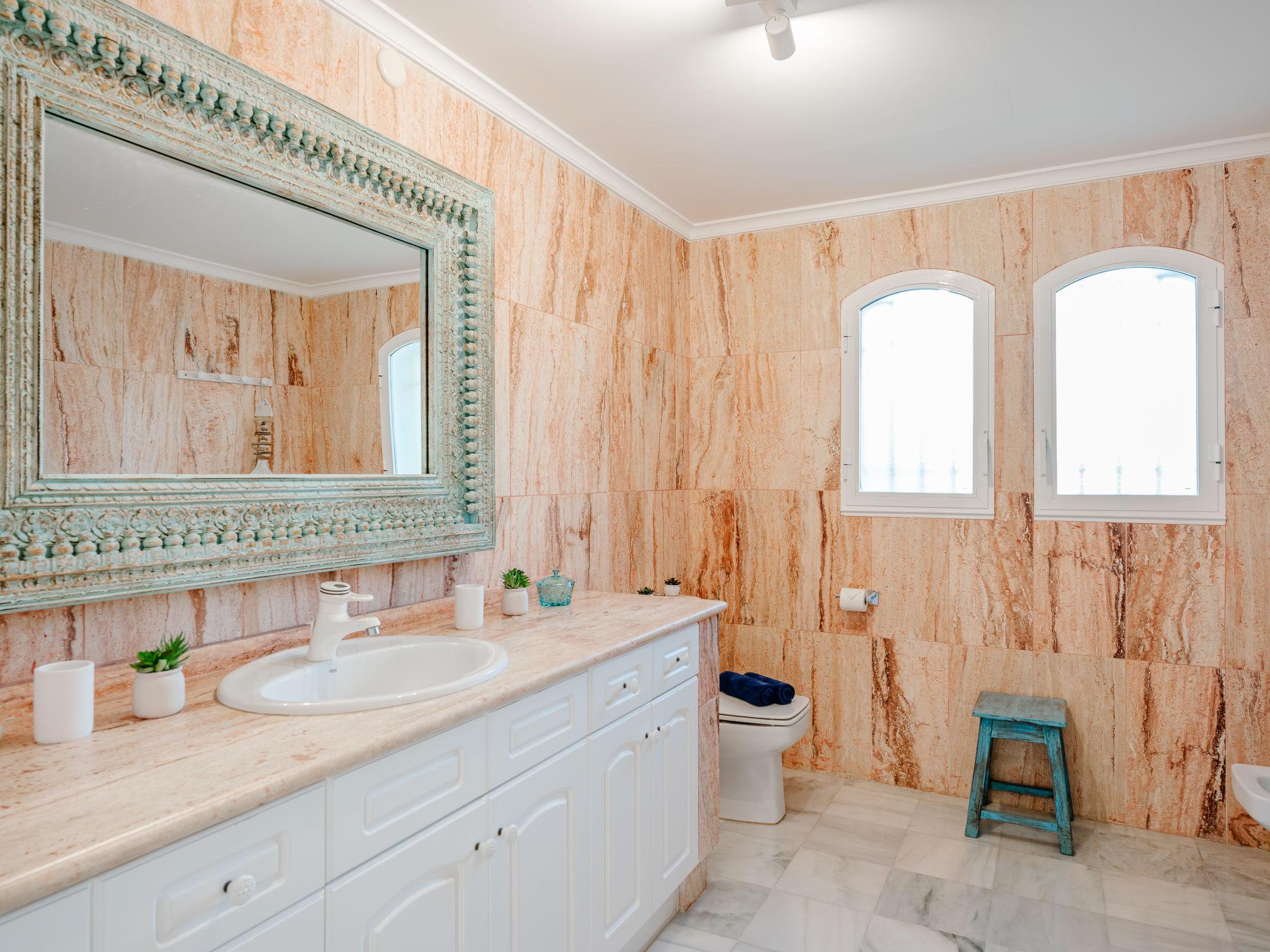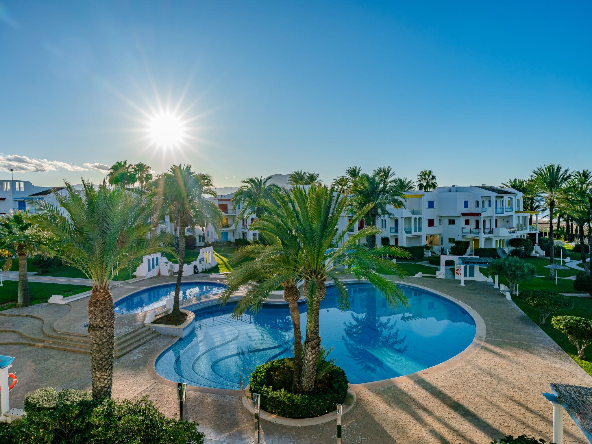 Very large, very beautiful, very comfortable apartment block "L'Alberca". Outside the resort, 6 km from the centre of Dénia, in a quiet, sunny position, 20 m from the sea, direct access to the beach. For shared use: beautiful, well-kept garden (fenced) with lawn and plants, swimming pool (20 x 20 m, depth 80 - 210 cm, seasonal availability: 01.Jan. - 31.Dec.) with internal staircase. Unconventional pool shape. Children's pool, outdoor shower, public parking on the road. Supermarket, restaurant, bar, café 250 m, bus stop 20 m, sandy beach "Els Molins" 20 m. Golf course (18 hole) 8 km, sailing school 50 m. Nearby attractions: Kunz Cycling Holidays 500 m. Please note: no lift. The owner does not accept any youth groups.