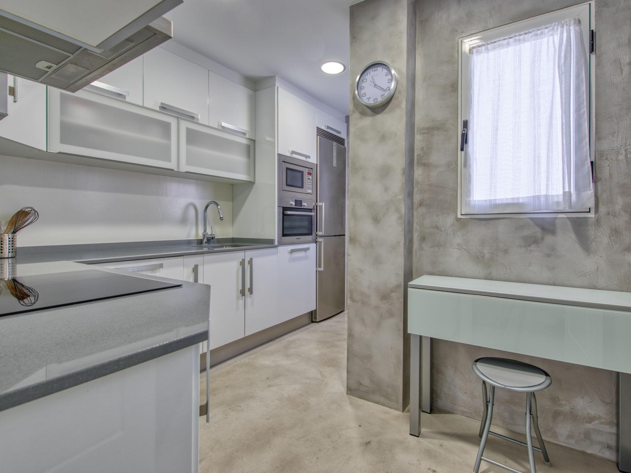 "La Senia", 4-room apartment 90 m2. Spacious and bright, very beautiful and stylish furnishings: living/dining room with satellite TV, air conditioning and forced-air heating. Exit to the terrace. 1 room with 1 french bed (180 cm, length 200 cm), bath/bidet/WC, air conditioning and forced-air heating. 1 room with 2 beds (90 cm, length 190 cm), fan. 1 room with 1 x 2 bunk beds (80 cm, length 190 cm), air conditioning and forced-air heating. Kitchen (oven, dishwasher, 3 induction hot plates, toaster, kettle, microwave, freezer, electric coffee machine). Shower/WC. Terrace 20 m2. Terrace furniture. Very beautiful view of the sea. Facilities: washing machine, iron, mosquito net, children's high chair, baby cot for up to 2 year olds, hair dryer. Internet (WiFi, free). Parking space n 22. VT-474009-A // Reg. Nr.: ESFCTU00000304500044651600000000000000000VT-474009-A5