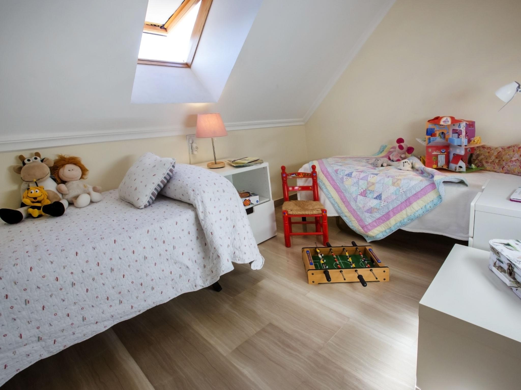 "Atico Estrella del mar", 4-room penthouse 90 m2 on 2 levels. Spacious and bright, very beautiful and stylish furnishings: living/dining room with digital TV, air conditioning and forced-air heating. Exit to the terrace. 1 room with 2 beds (90 cm, length 190 cm), air conditioning, fan and forced-air heating. Kitchen (oven, dishwasher, 4 ceramic glass hob hotplates, microwave, freezer, electric coffee machine). Shower/WC. Upper floor: 1 room with 1 french bed (150 cm, length 190 cm), bath/bidet/WC, air conditioning, fan and forced-air heating. Exit to the terrace. 1 room with 2 beds (90 cm, length 190 cm), shower/WC, air conditioning and forced-air heating. Large terrace terrace. Terrace furniture. Marvellous view of the sea, the mountains, the swimming pool and the garden. Facilities: washing machine, iron, children's high chair, baby cot, hair dryer. Internet (WiFi, free). Garage space n 27. Please note: maximum 1 pet/ dog allowed. TV only ES. R000000001