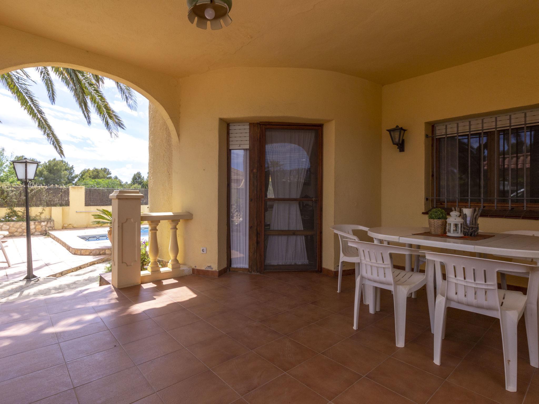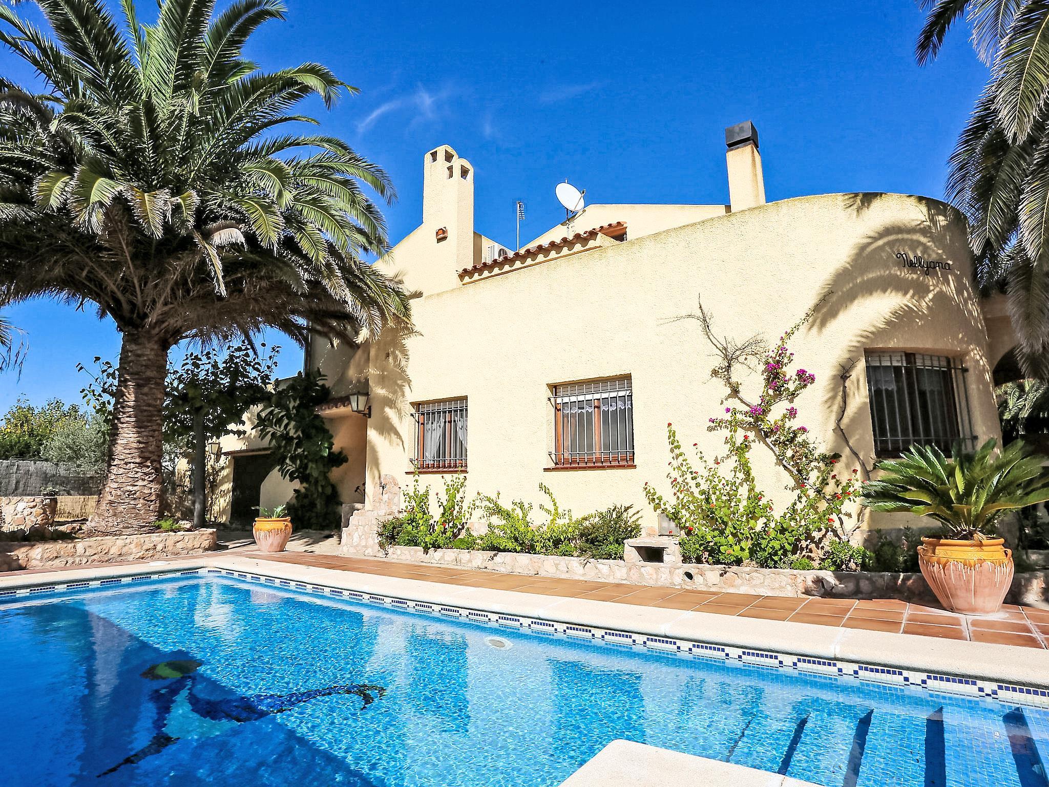 "Nellyana", 4-room house 120 m2, on the ground floor. Comfortable and cosy furnishings: living/dining room with open-hearth fireplace and satellite TV. 2 rooms, each room with 2 beds. 2 rooms, each room with 1 french bed. Open kitchen (4 hot plates, oven, toaster, microwave) with dining table. Bath/WC, shower/WC. Air-conditioning, forced-air heating. Terrace 20 m2. Terrace furniture, barbecue, deck chairs. View of the swimming pool. Facilities: washing machine, safe. Internet (WiFi, free). Parking (fenced 2 cars). Suitable for families. Maximum 2 pets/ dogs allowed. HUTTE001090 // Reg. Nr.: ESFCTU0000430190003614430000000000000000HUTTE-0010901