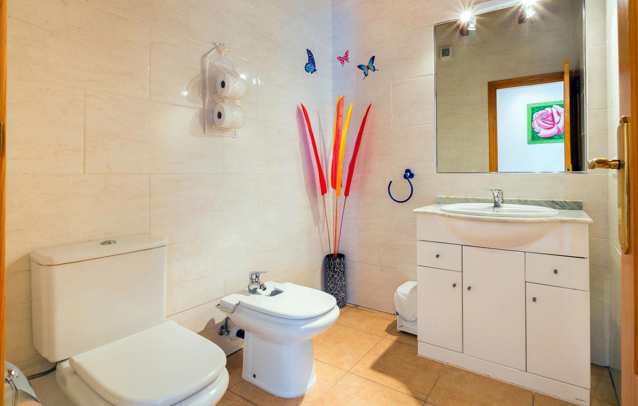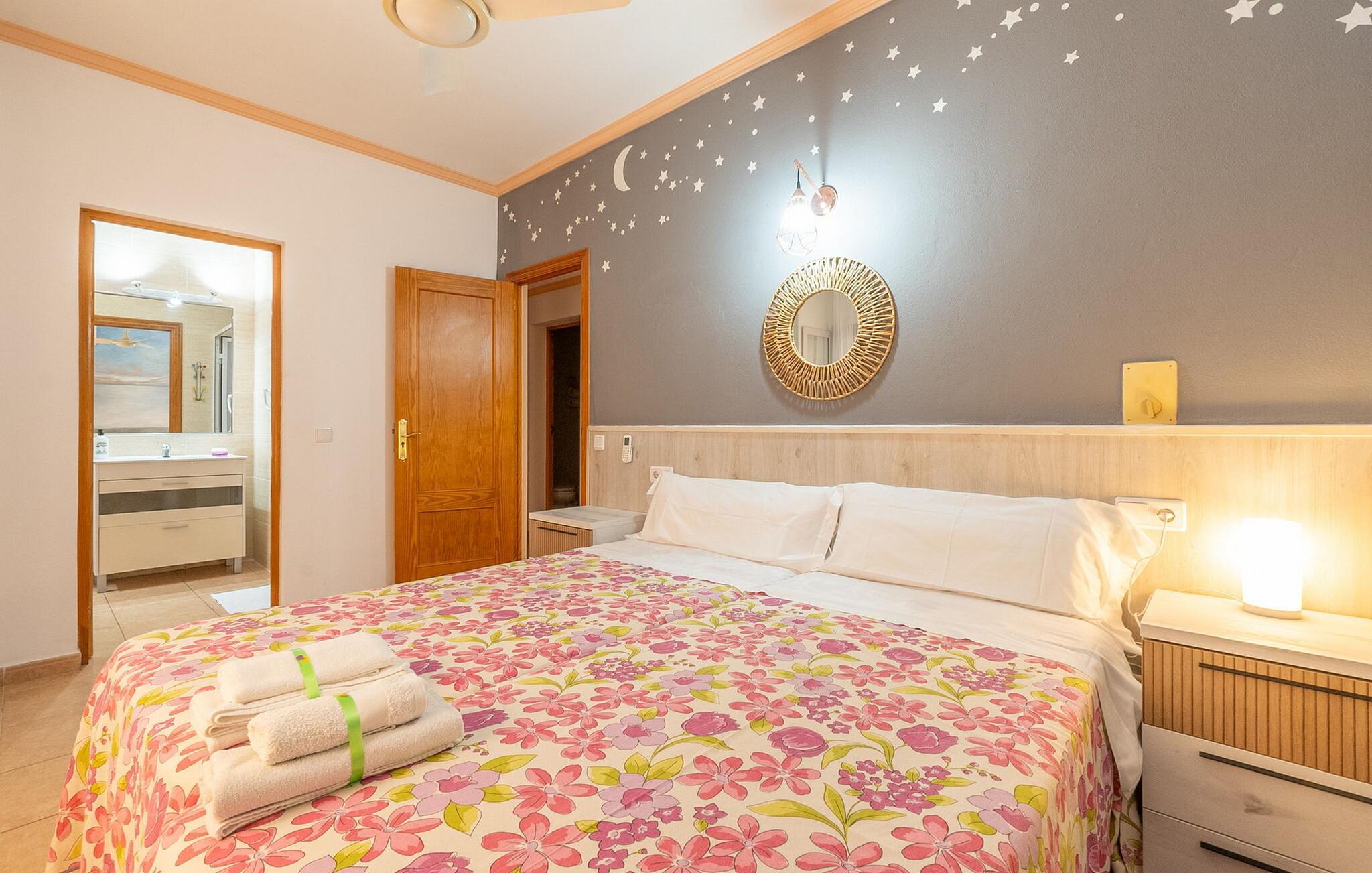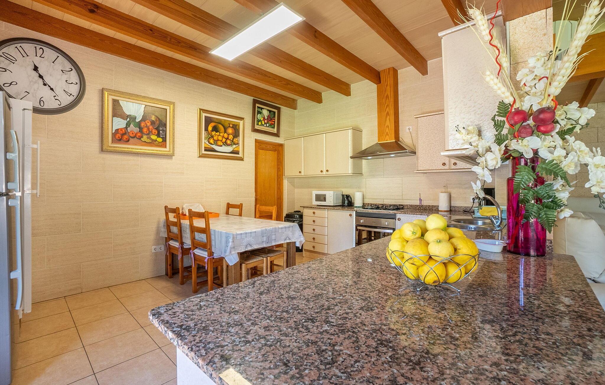 Villa El Bosque Candy med flatt tak ligger i helt magiske omgivelser på en stor tomt som strekker seg over 67 000 m² nesten så langt øyet kan se. Den enorme hagen gir barna god plass til å løpe rundt og leke på den frodige, grønne plenen, og har også plass til et volleyballnett, en basketballkurv og et bordtennisbord. Den er omgitt av store palmer, bambusgress, sypresser og 100 oliventrær. Dette betyr fullstendig tilbaketrukkethet og en herlig nærhet til naturen. Og fullstendig fred og ro, som du kan nyte både i hagen og i huset. Den store tomten egner seg spesielt godt for reiser med en stor gruppe. Bassenget ligger innbakt i plenen. Og komfortable solsenger venter på deg på den omkringliggende terrassen i naturstein. Men det beste stedet å sitte er nok likevel loungeområdet under en pergola i karibisk stil ved siden av bassenget. Her kan du slappe av, spille et brettspill eller bare prate i en avslappet atmosfære. Bak en dør med persienner skjuler det seg et svært praktisk bad med dusj og toalett, som bare er tilgjengelig fra hagen. På den andre siden av bassenget finner du en innebygd mursteinsgrill. Trappen som går langs husets ytterfasade, fører opp til den enorme takterrassen med panoramautsikt over det milde landskapet - rett og slett fantastisk! Den tilstøtende verandaen har et stort bord av høy kvalitet og komfortable stoler. Verandaen er spesielt godt beskyttet mot vær og vind og ligger rett ved siden av et fransk vindu, og det er det perfekte stedet å nyte alle måltidene dine, som raskt blir servert så nær huset.
